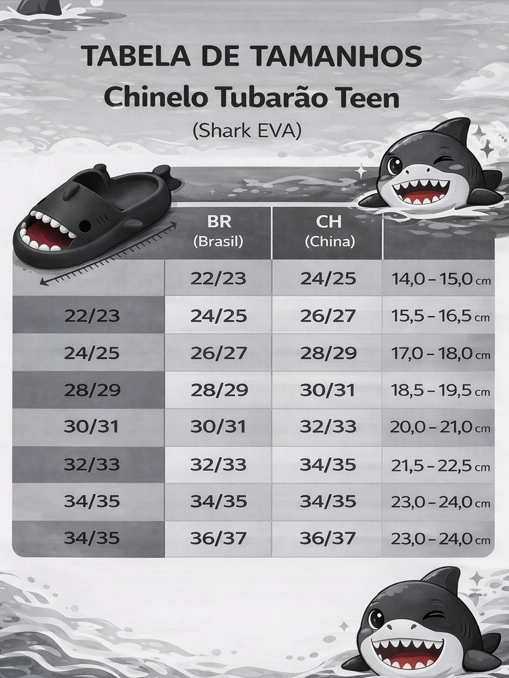 Chinelo Tubarão Teen Preto – Leve e Confortável - TB1