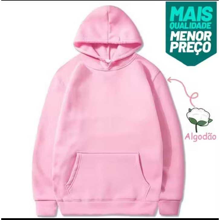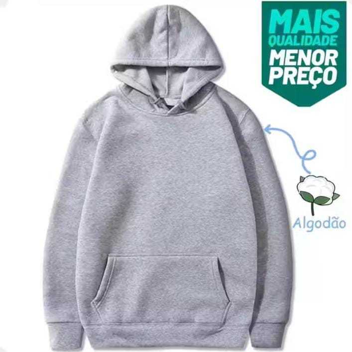 Moletom Canguru Unissex Algodão Liso Sem Estampa Direto da Fabrica