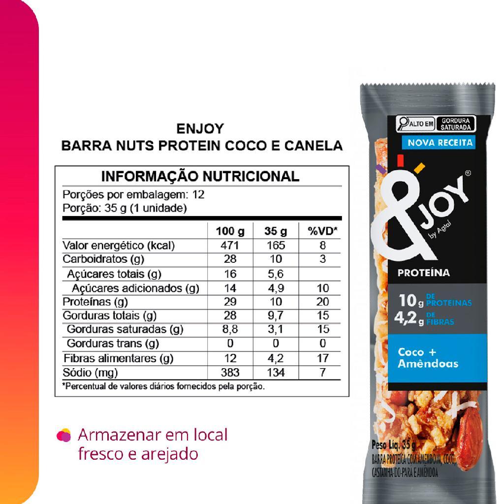 Barra de nuts ejoy com proteína coco e amêndoa 35g caixa 12 un snack saudável