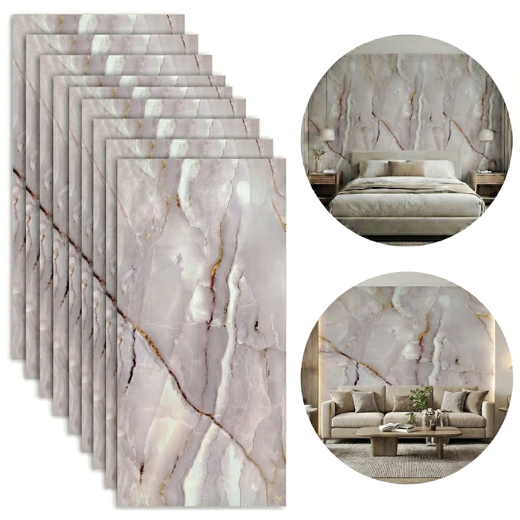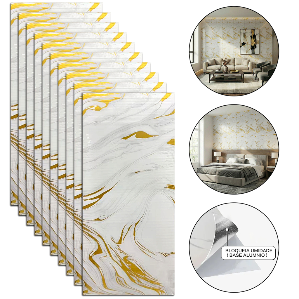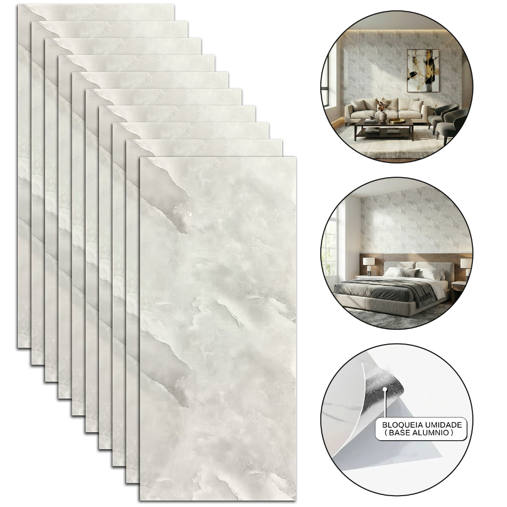 Kit 10 Placas 3D Adesivas Mármore Relevo Parede Impermeável 30x60cm