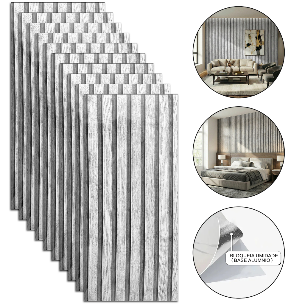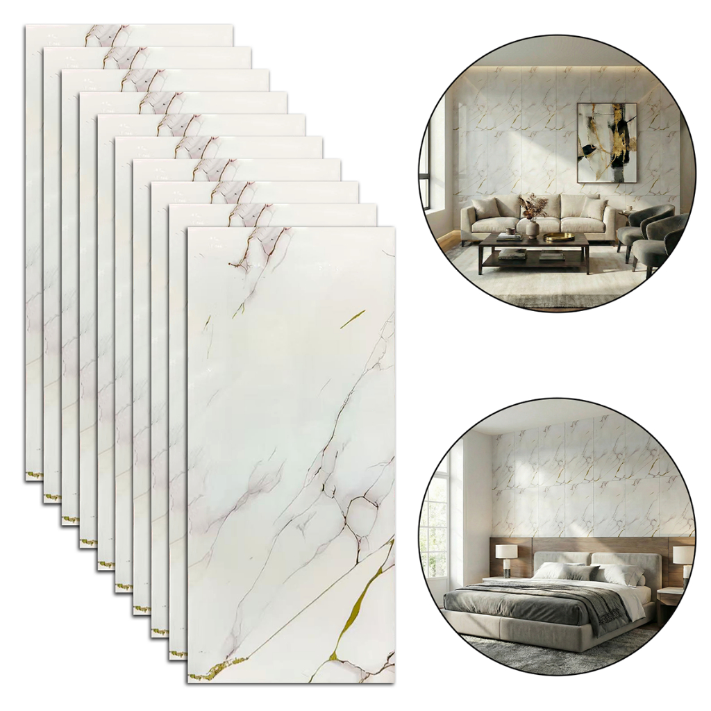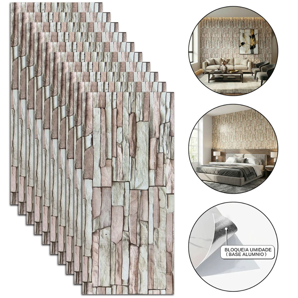 Kit 10 Placas 3D Adesivas Mármore Relevo Parede Impermeável 30x60cm