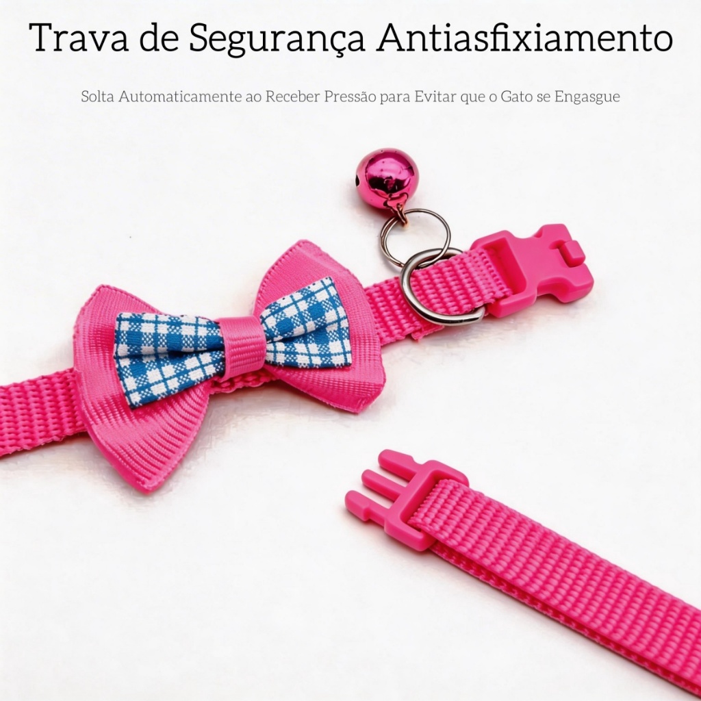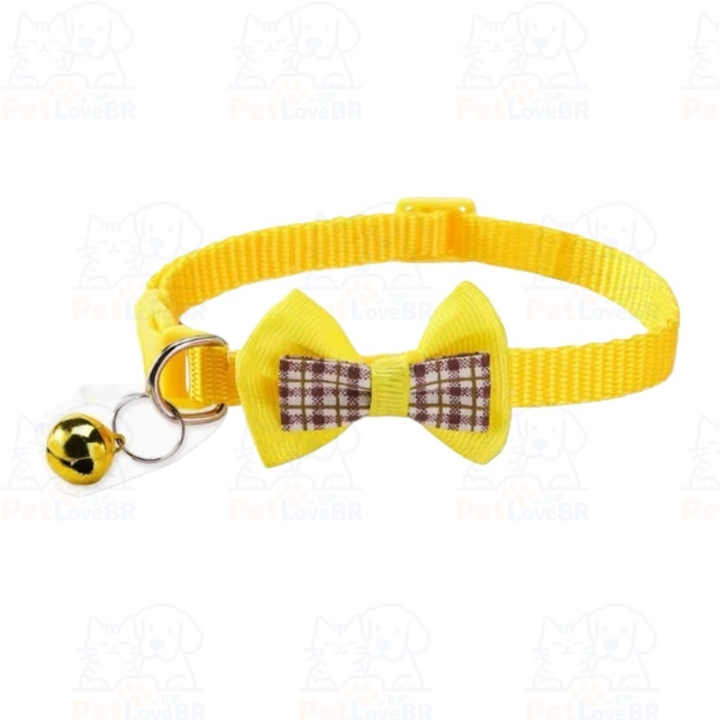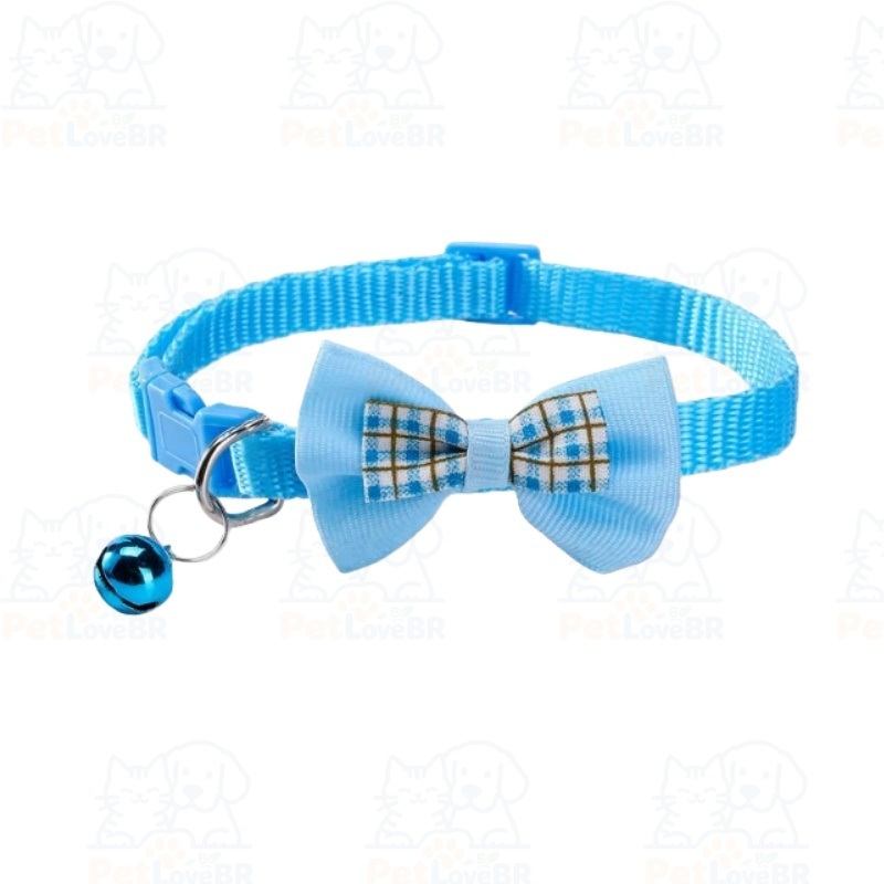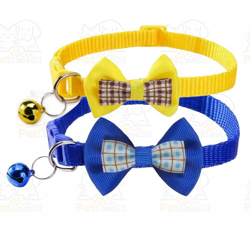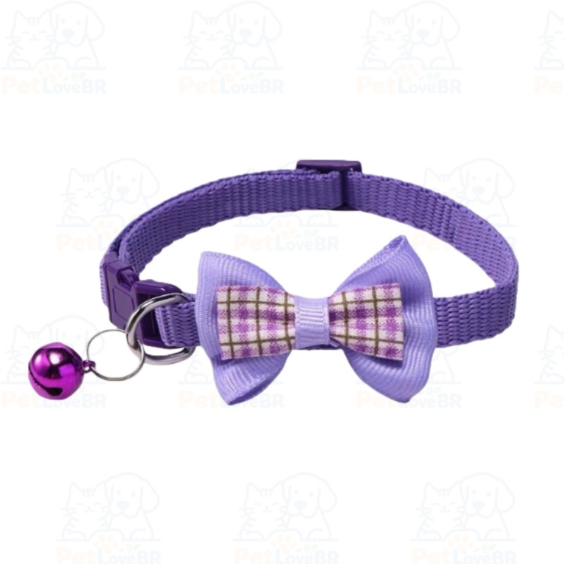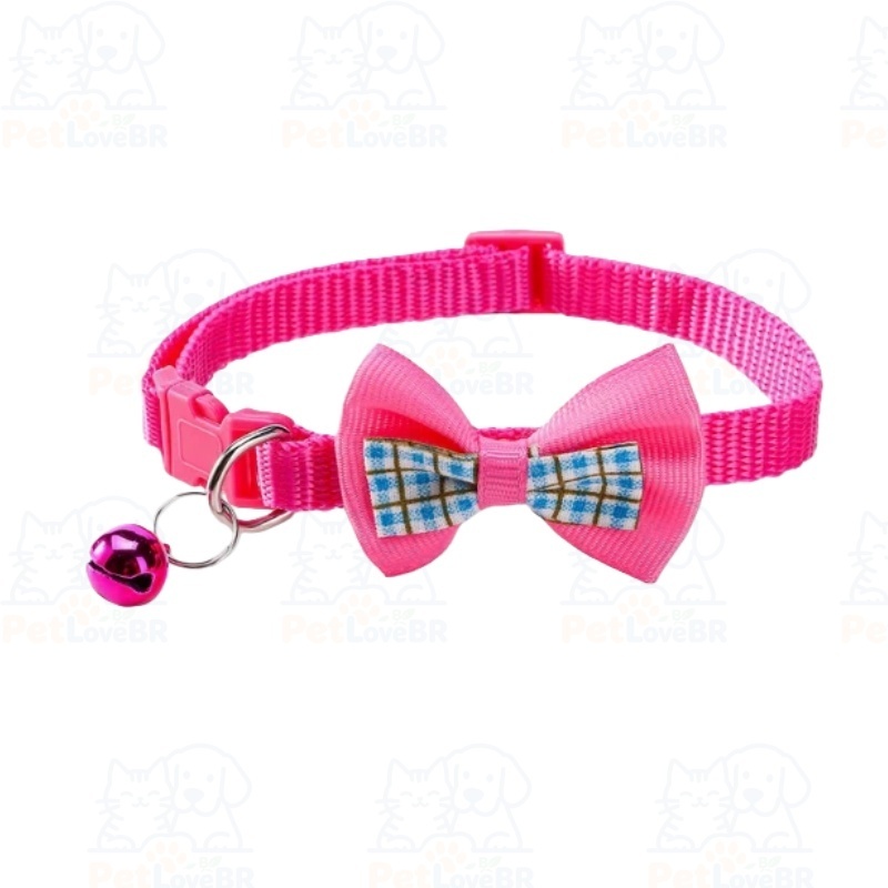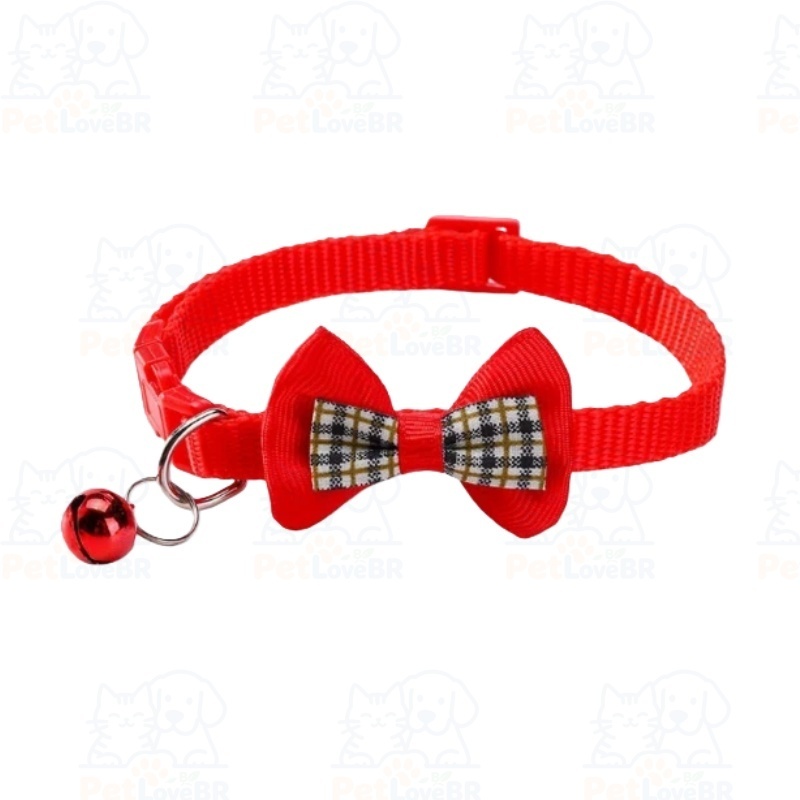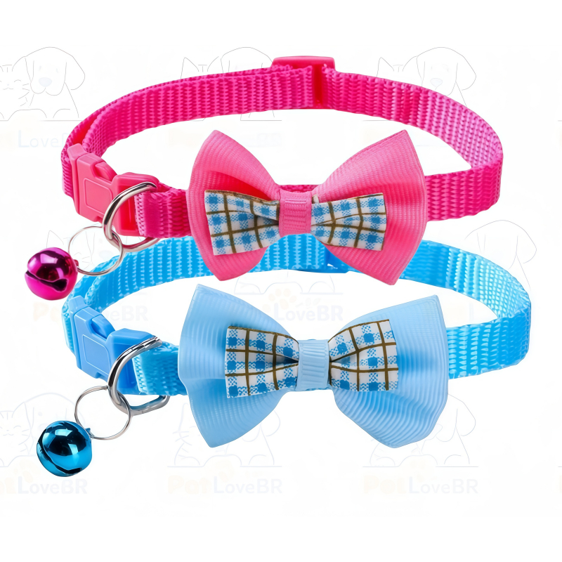 Coleira Ajustável para Gatos com Laço Quadriculado e Pingente – Nylon para Porte Pequeno e Médio | Pronta entrega