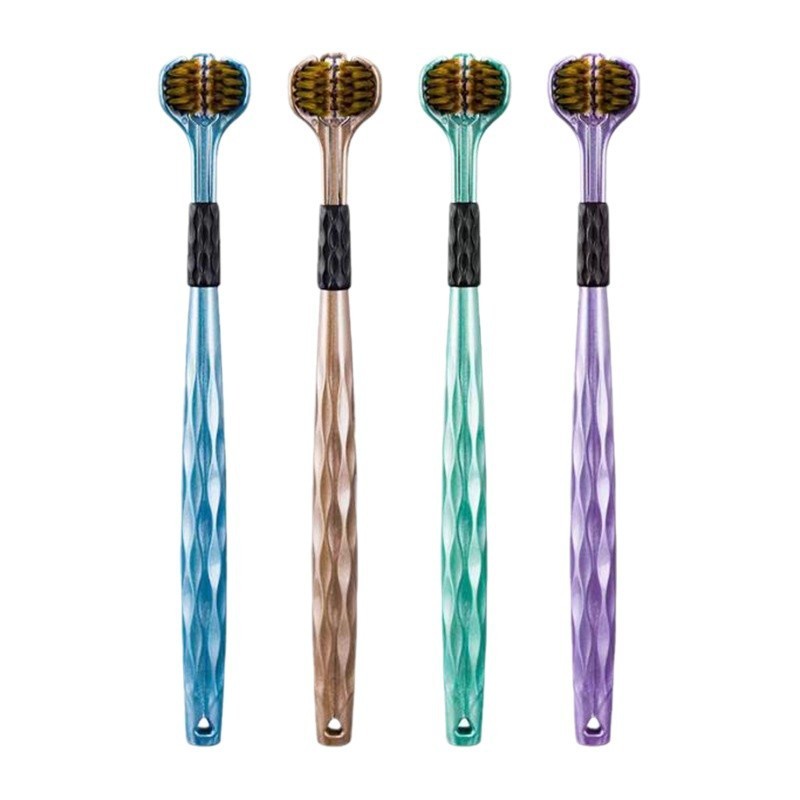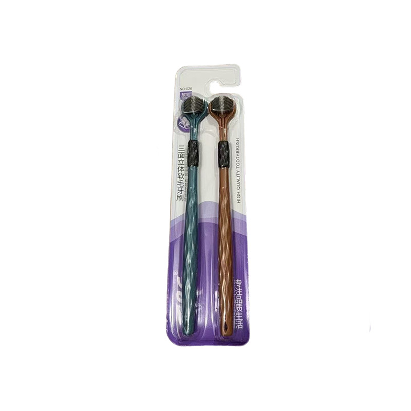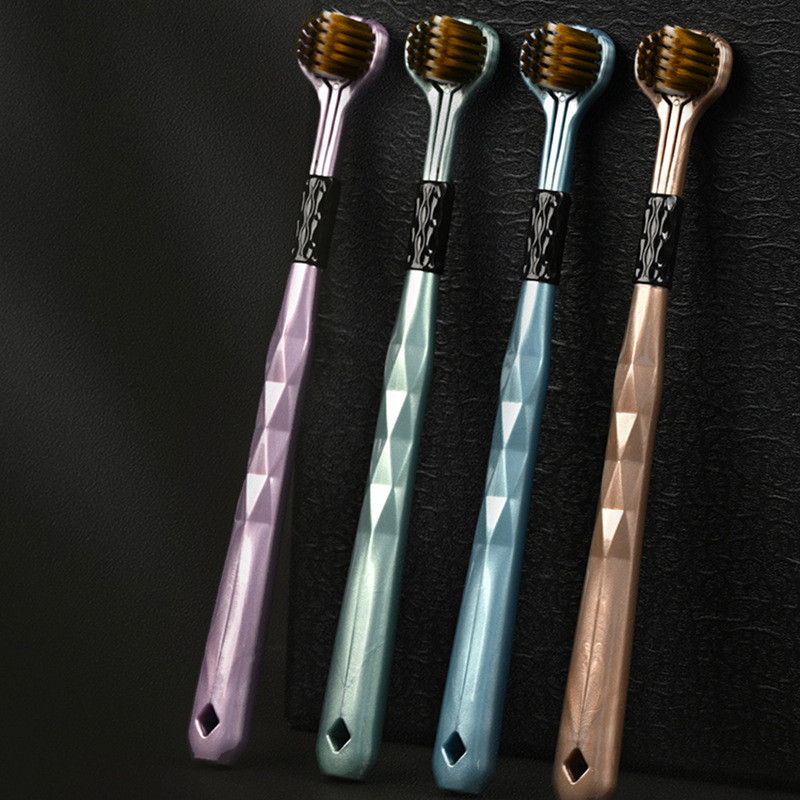 Kit2Escova De Dentes De Três Lados De 360 Graus Macaron Adulto Cerdas Macias Cabeças Duras Saburra De Língua Cuidado
