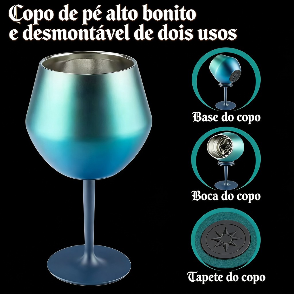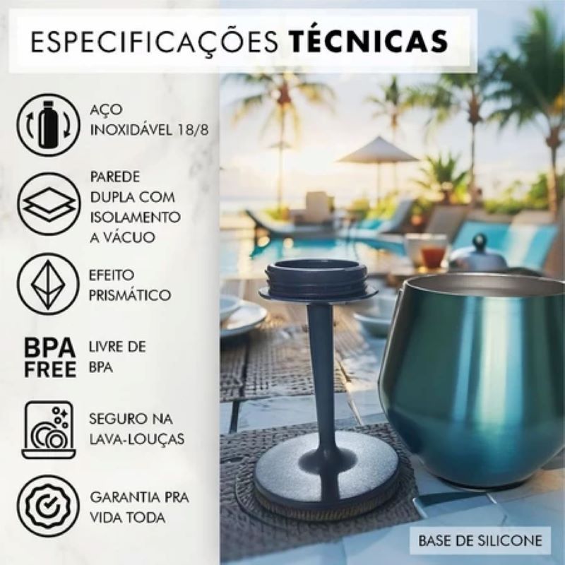 Taça Copo Térmico Aço Inox 2 Em 1 410 ml | Haste Removível, Parede Dupla e Isolamento