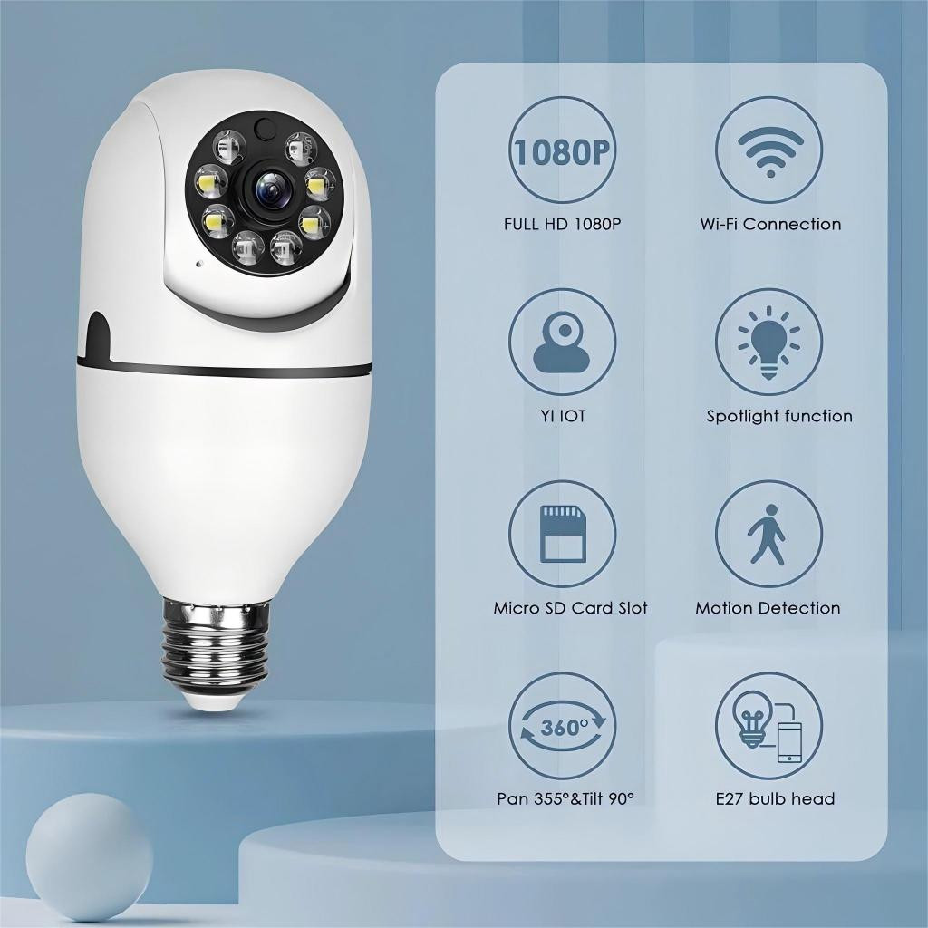 Câmera wifi ip sem fio giratória 360 com encaixe lampada bocal rosca ptz full HD visão noturna segurança+MICROSD 16GB