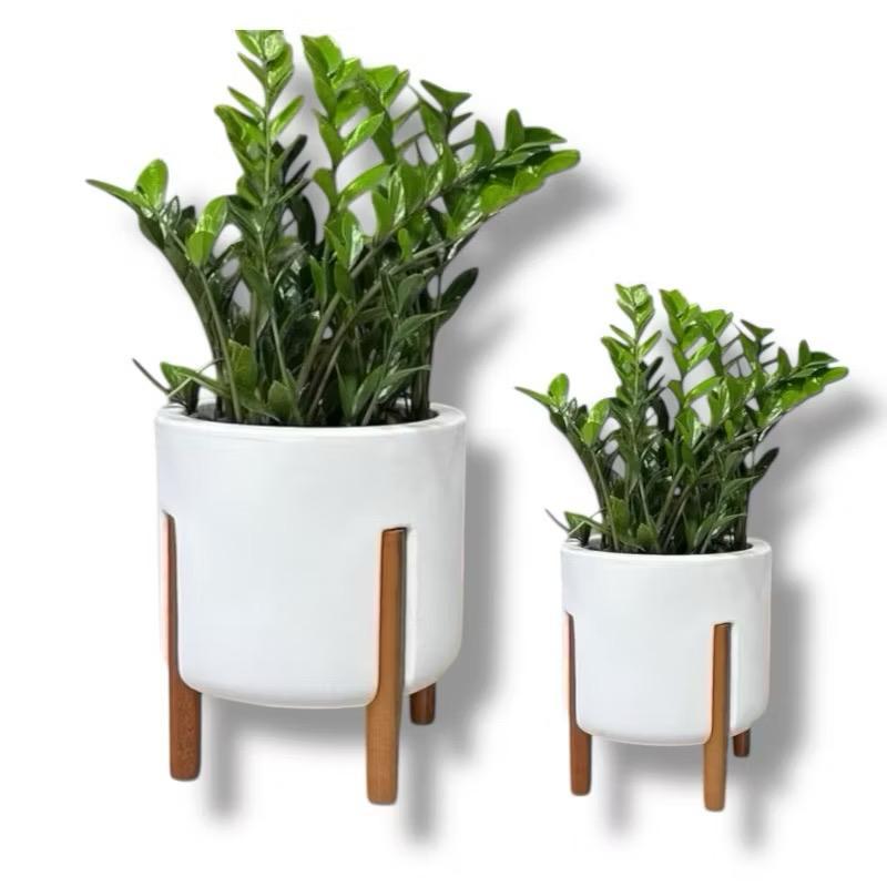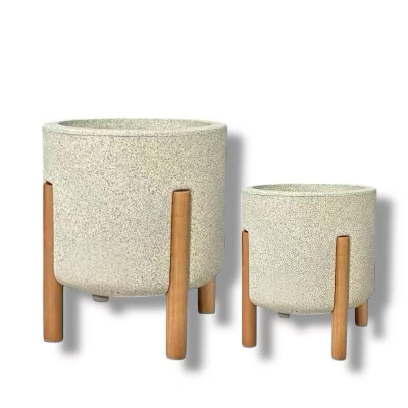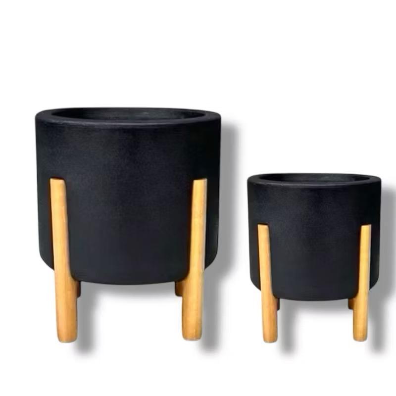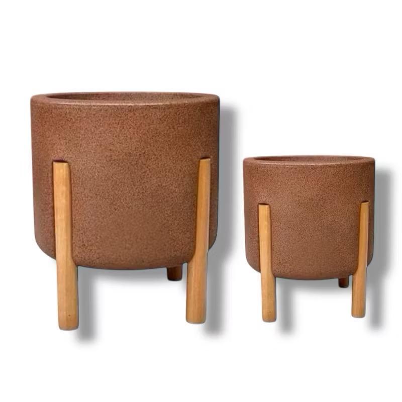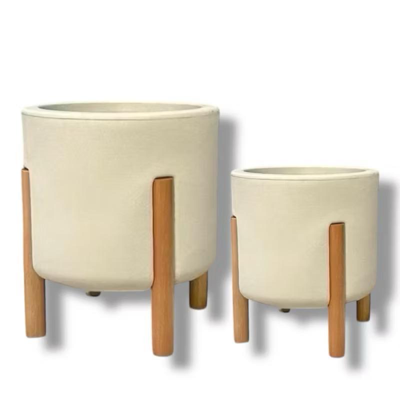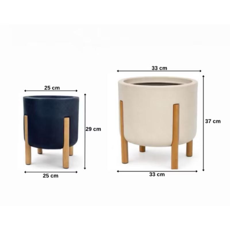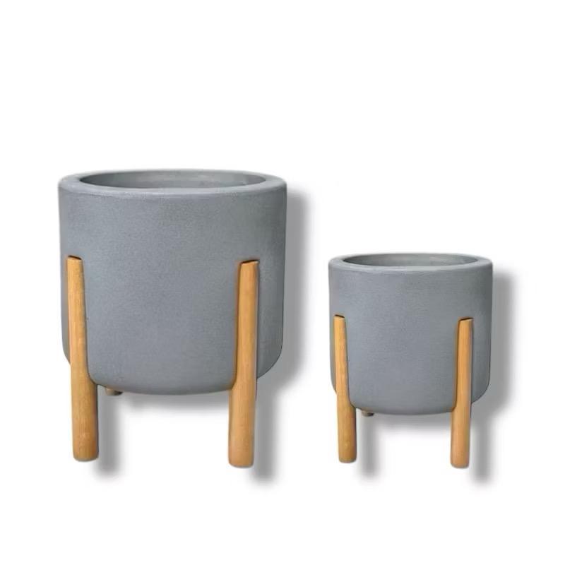 Kit 2 Vasos De Planta Nordico P & M (29e37CM) Cilíndrico com pé em Madeira Design Moderno