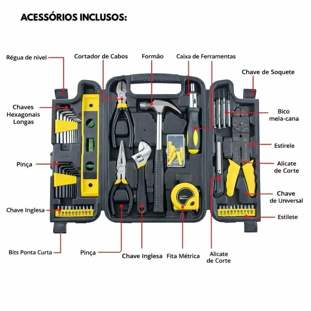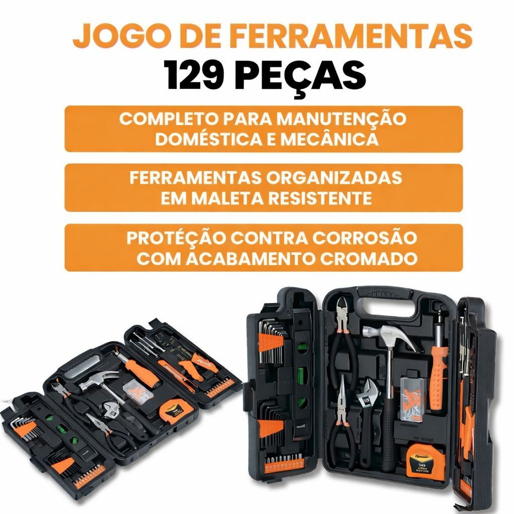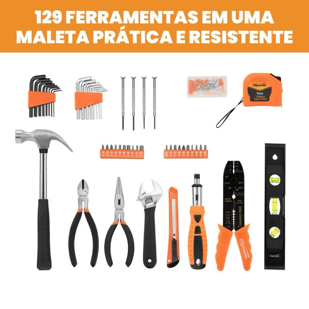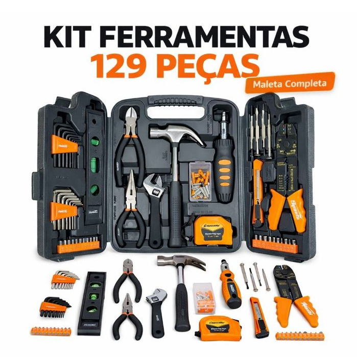 Kit Ferramentas 129 Peças com Maleta Completa Profissional para Casa e Reparos