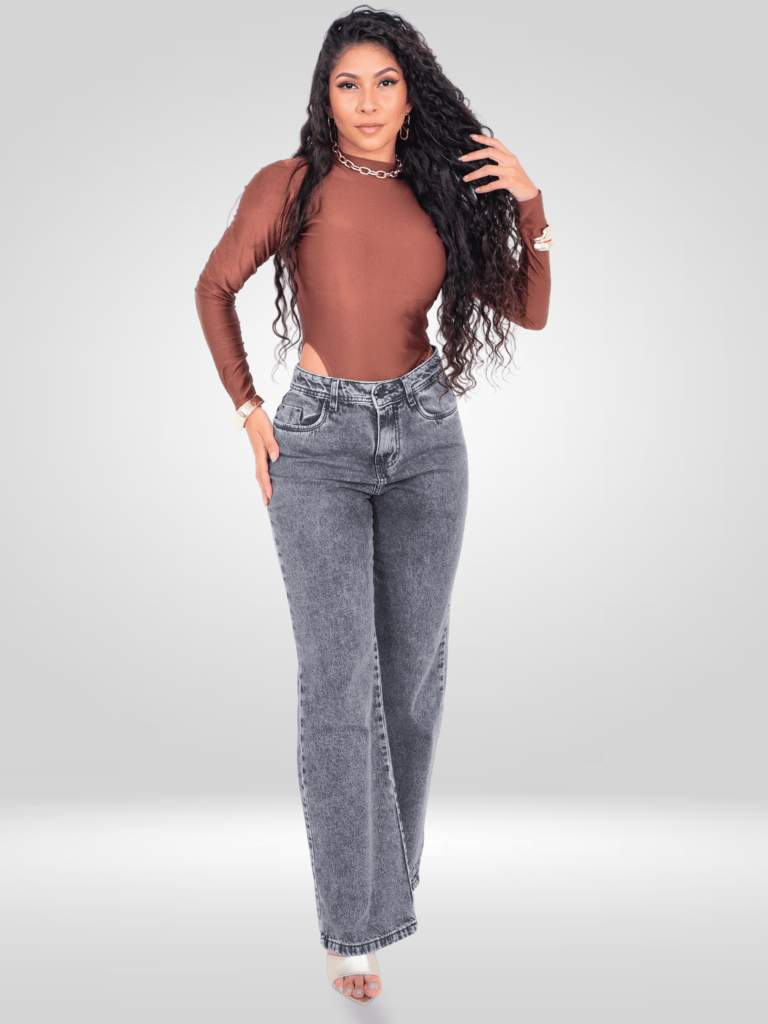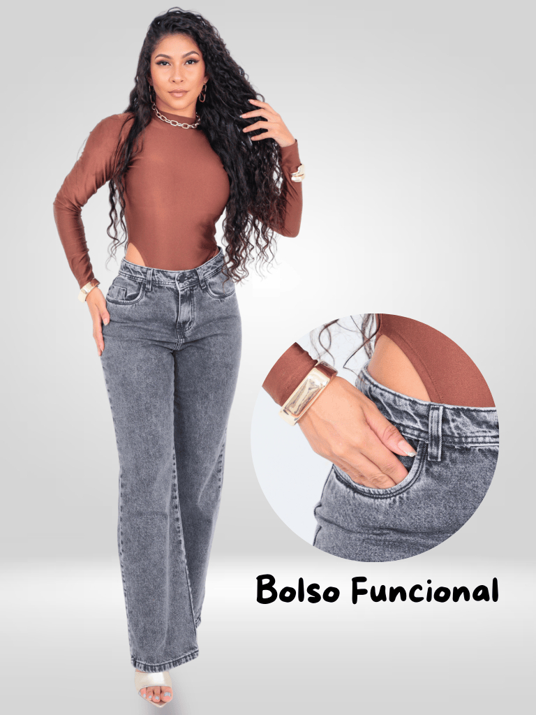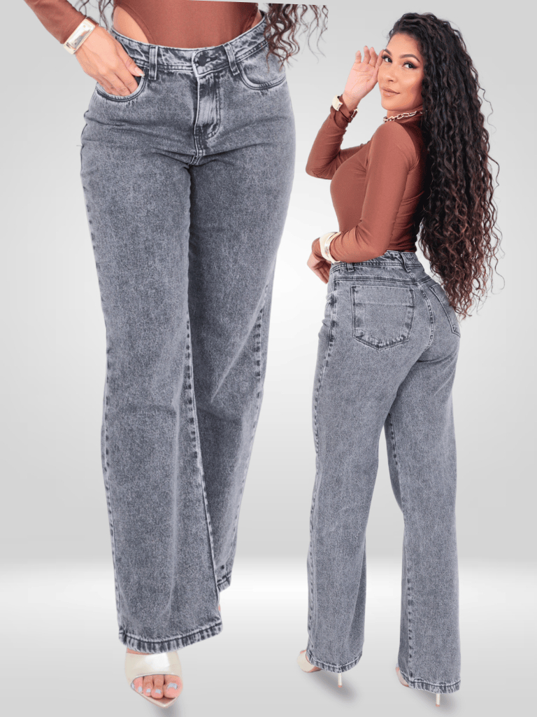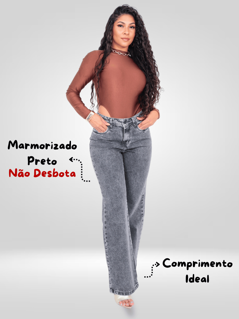 Calça Wide Leg Cargo e Lisa Marmorizada Preta Feminina Cintura Alta