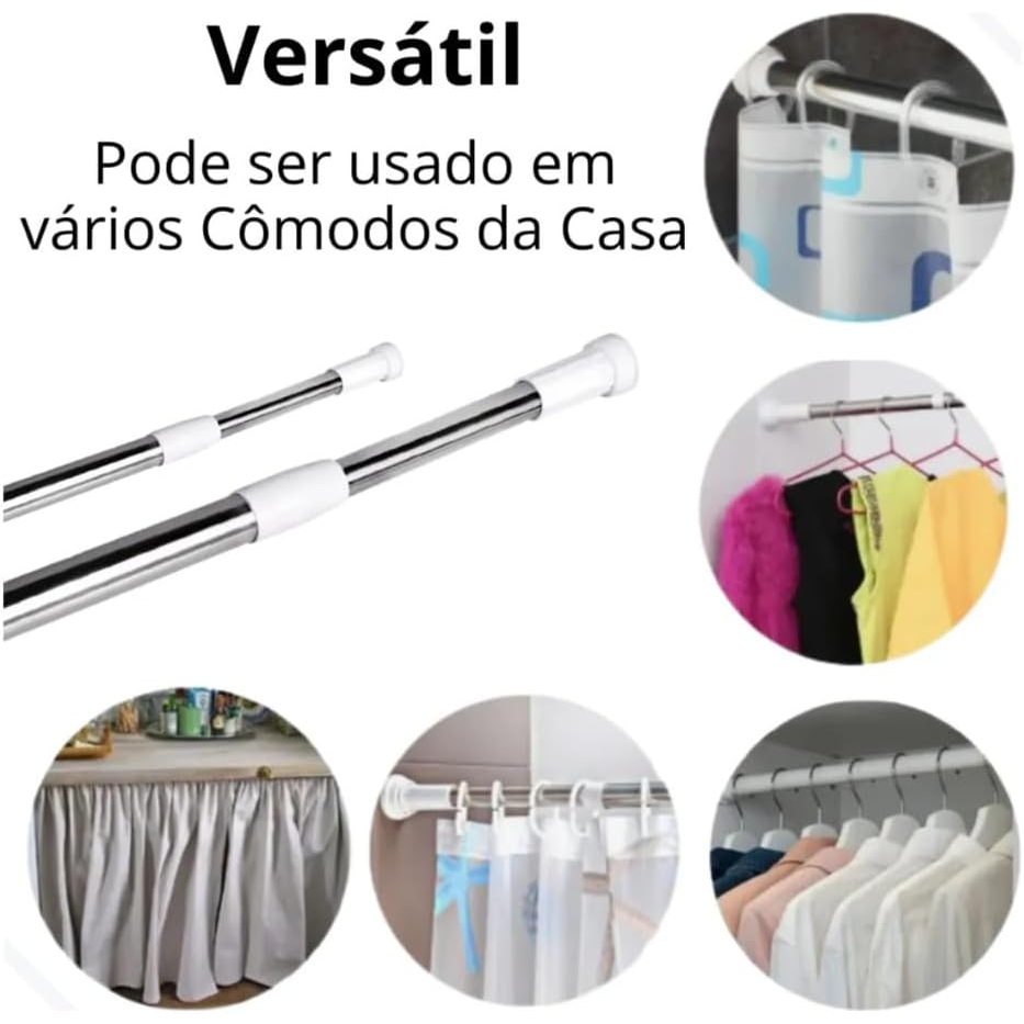 Varão Extensível Grande Maior para Porta Cortina de Box e Banheiro