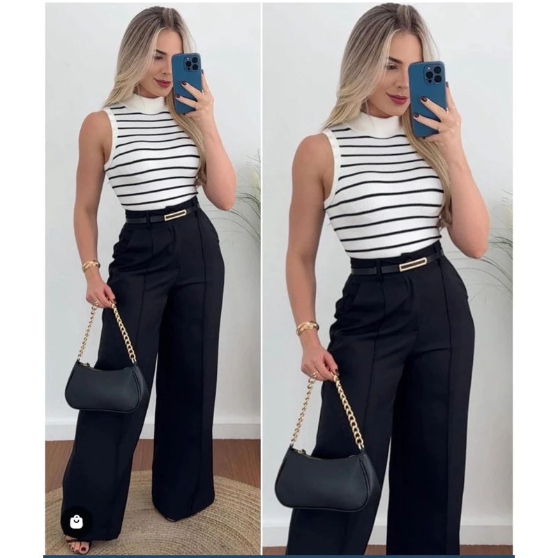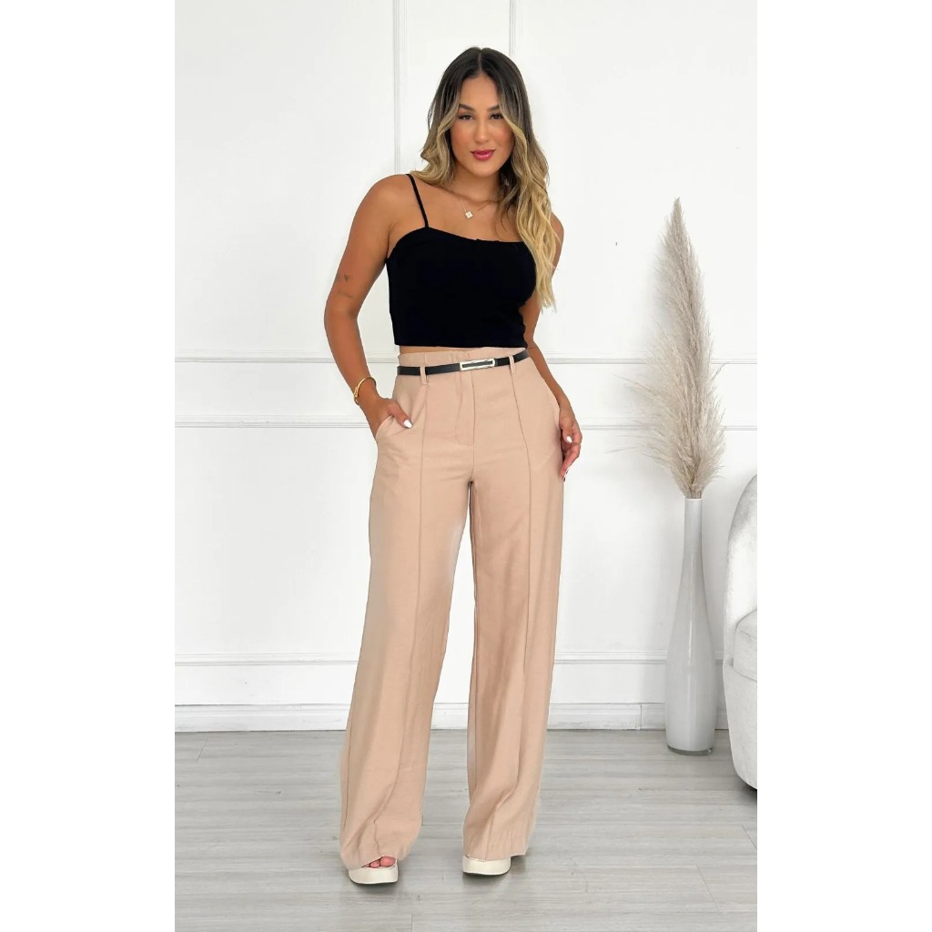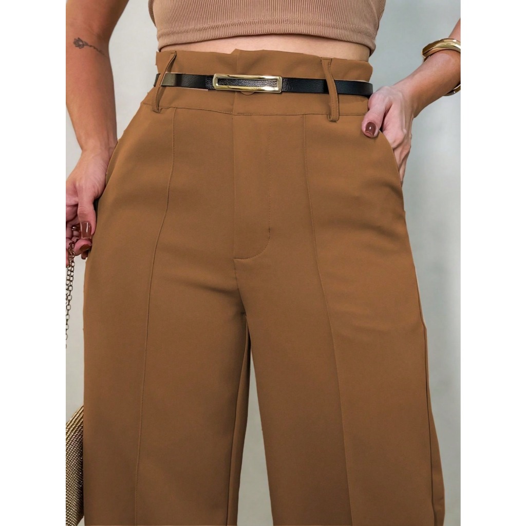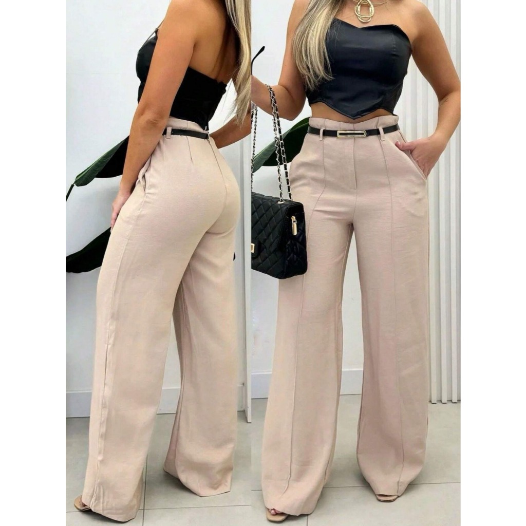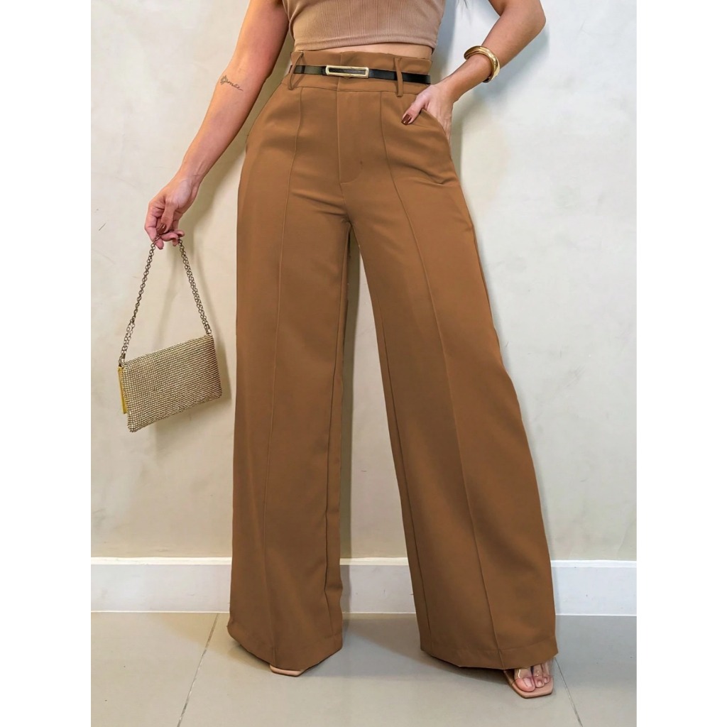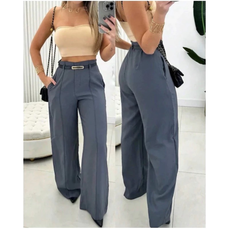 Calça Social Feminina Modelo Pantalona Alfaiataria Com Cinto Lançamento Moda Luxo Blogueira Elegante
