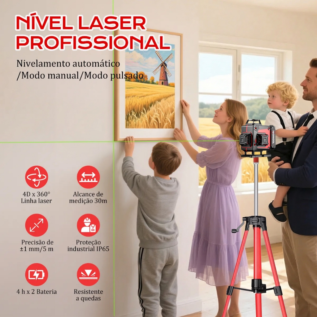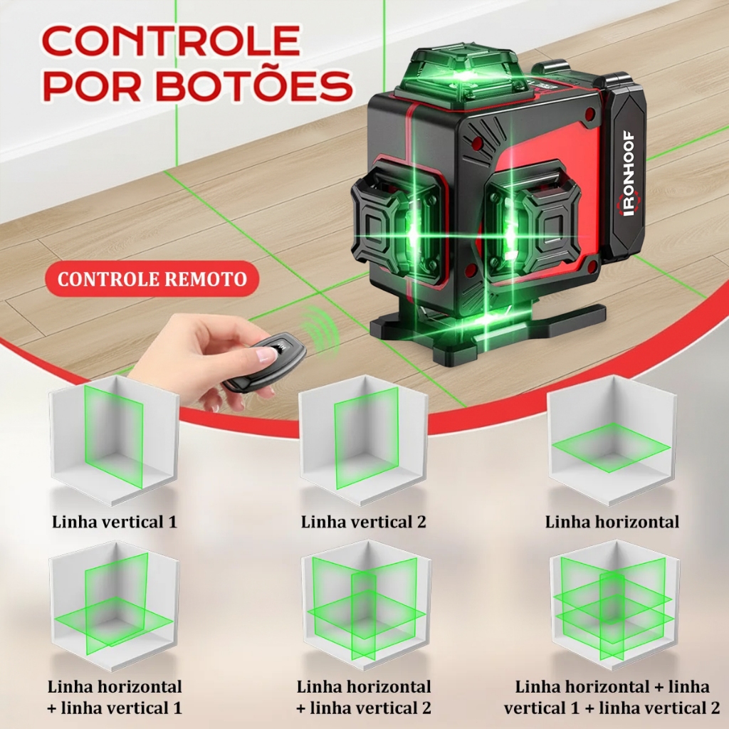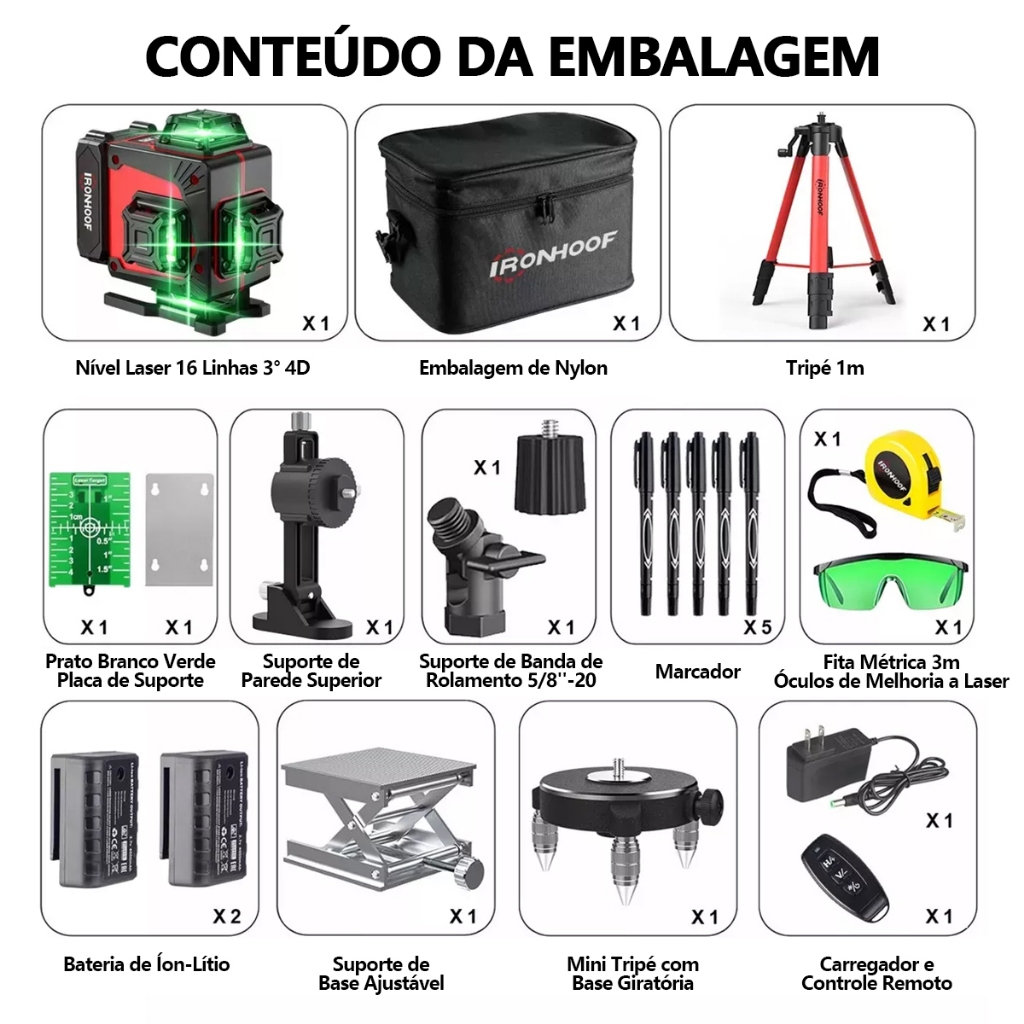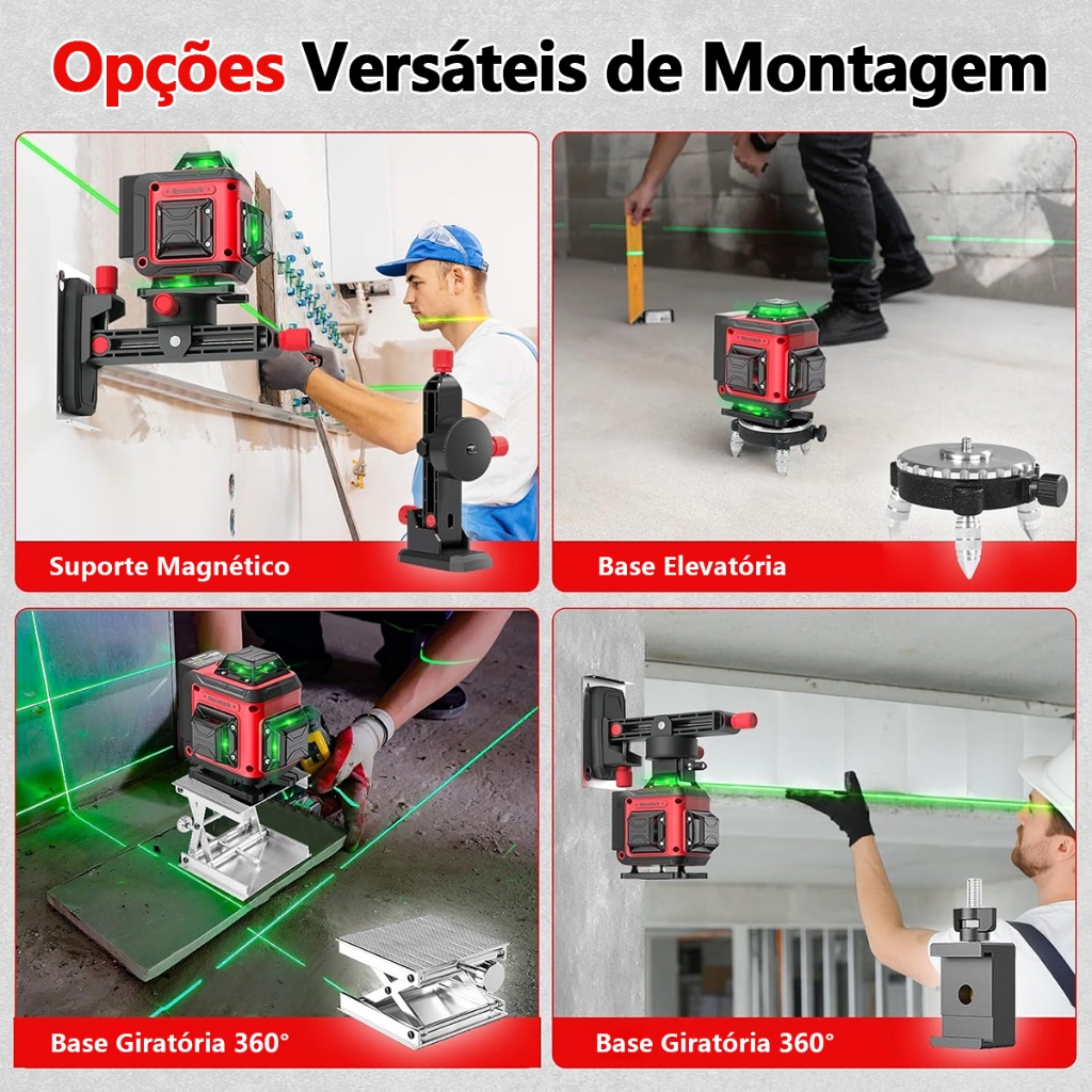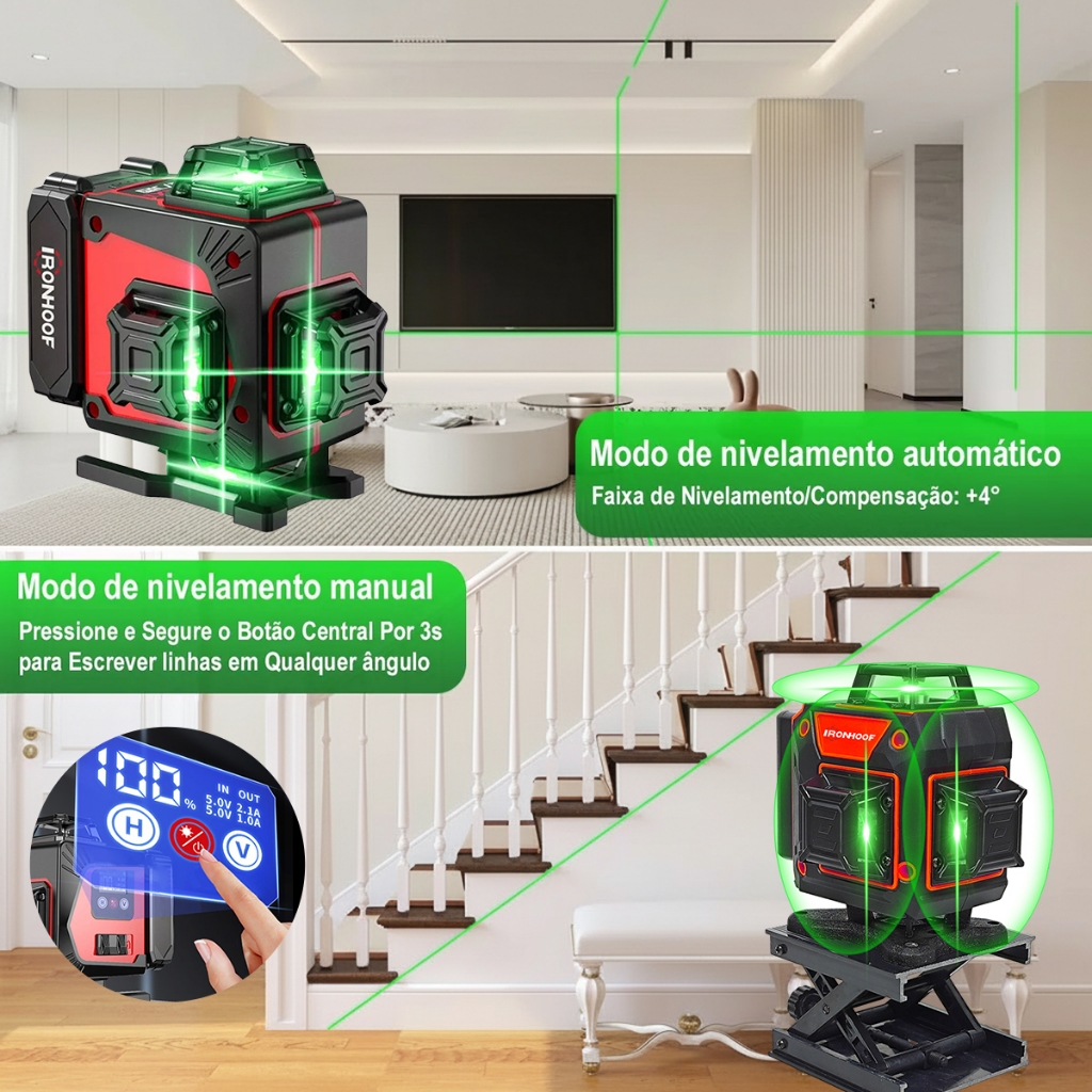 16 Linhas Nivel A Laser com Tripé Profissional Verde 360° Recarregável