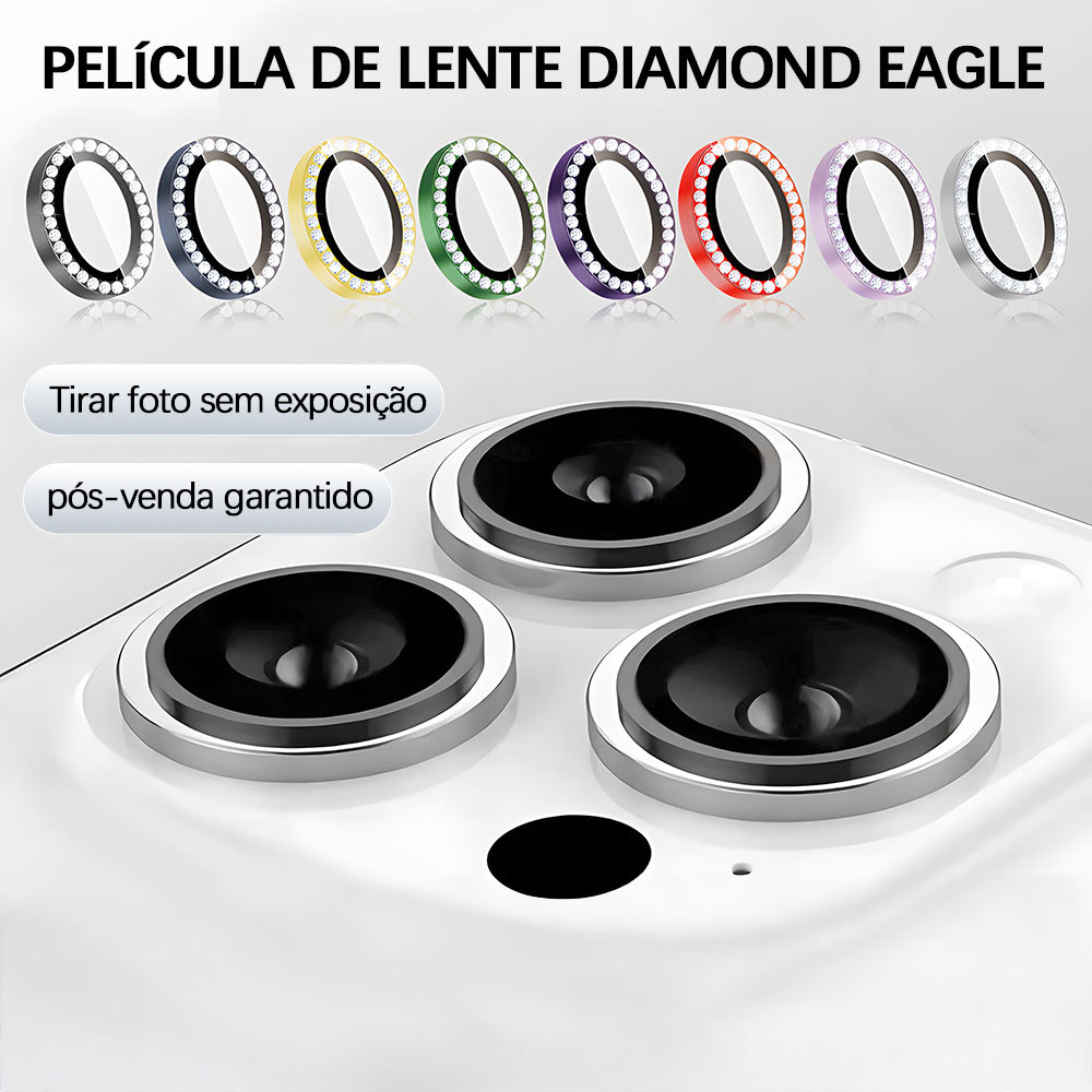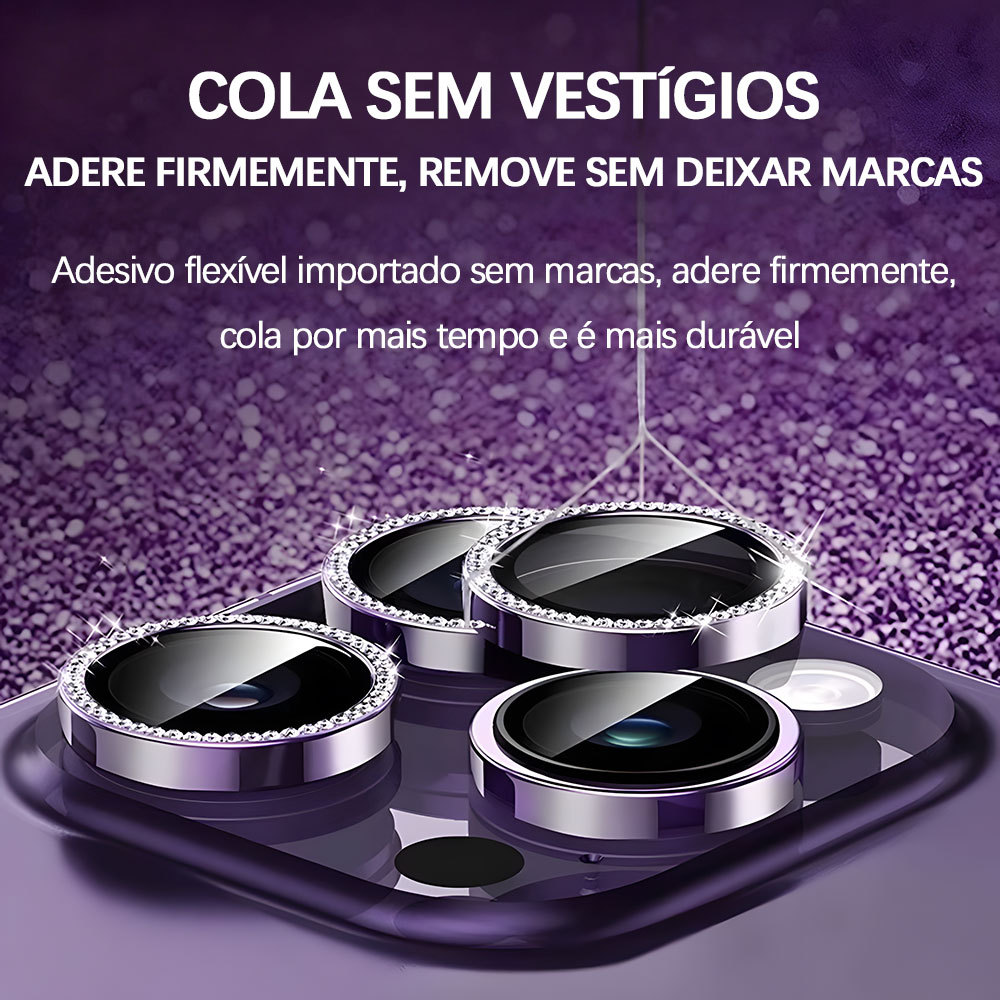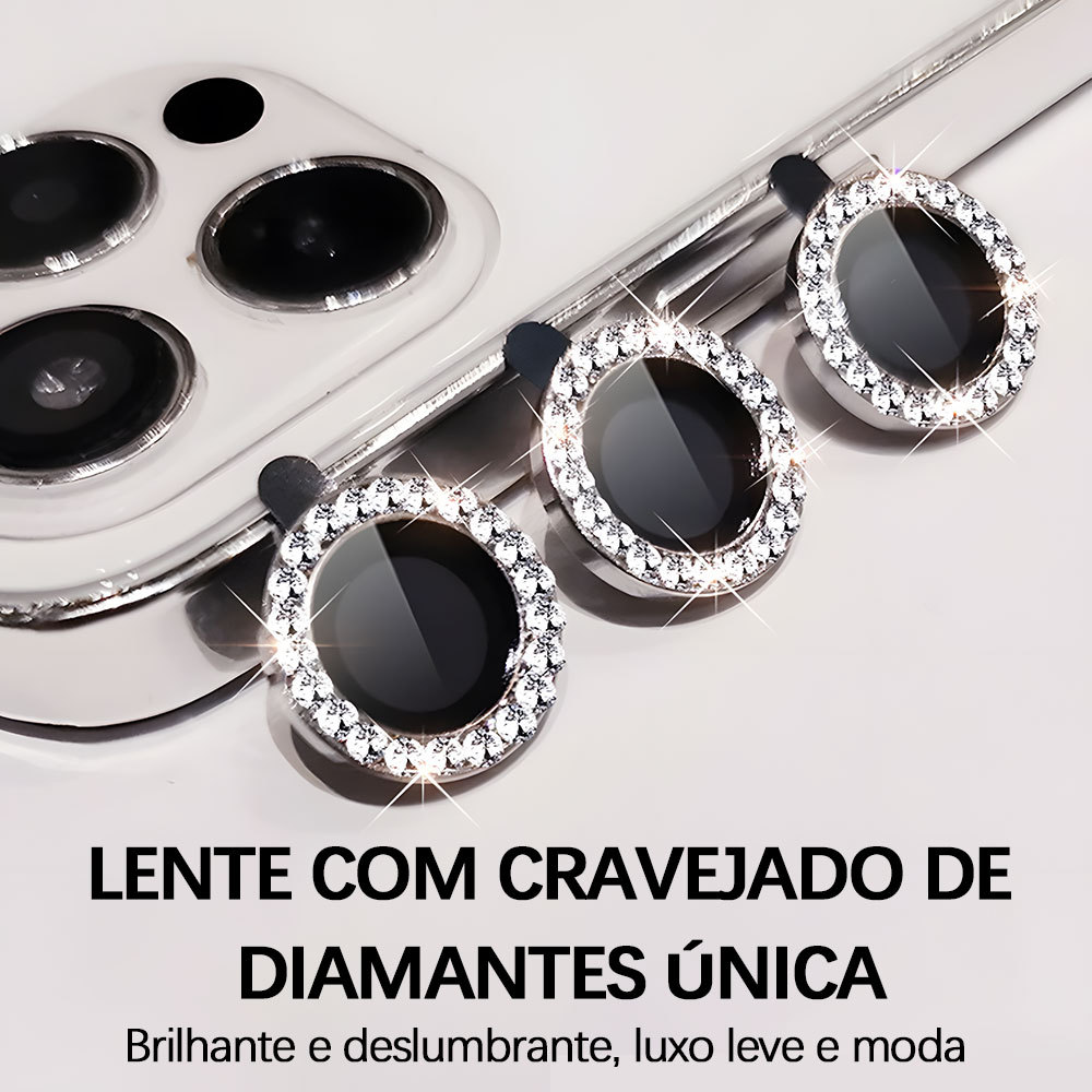 Kit Películas Lente Câmera Strass Brilho brilhante iPhone 17 16 15 14 13 12 11 16E 17E Pro Plus Max Mini M006