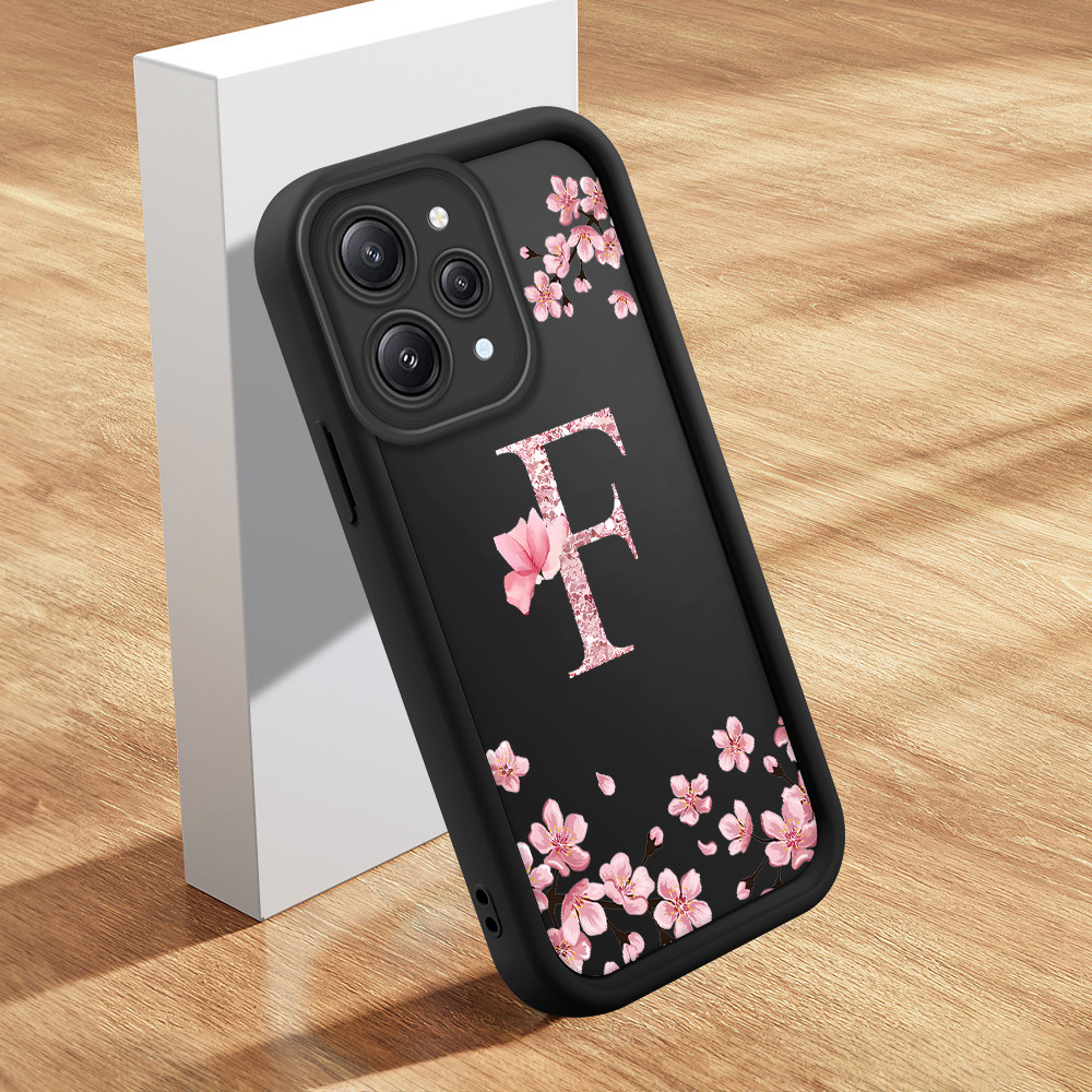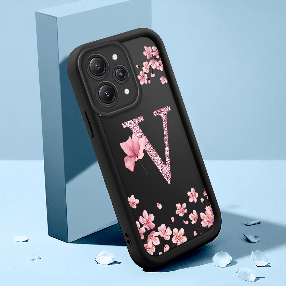 Capinha Flor Para Xiaomi Redmi 12 Capa Com Letra Personalizada Macia Silicone Proteção Case
