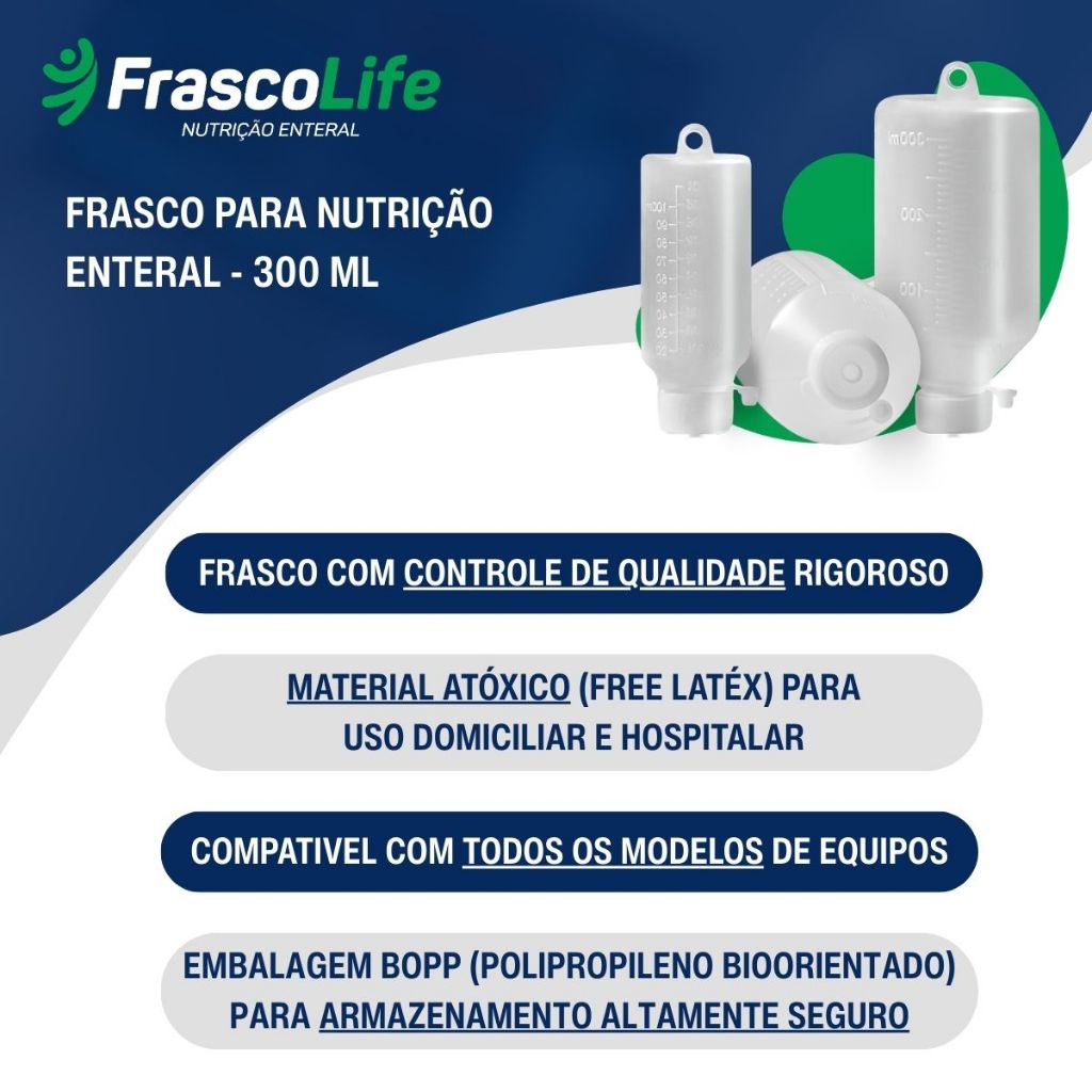 Kit 60 Frascos P/ Nutrição Enteral FrascoLife 300ml de Alimentação e Dieta Liquida