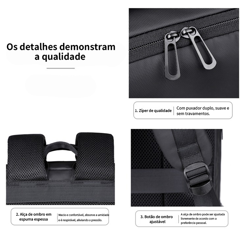 Mochila Expansível Impermeável Reforçada Unissex Viagem Negócios Trabalho Dia a Dia