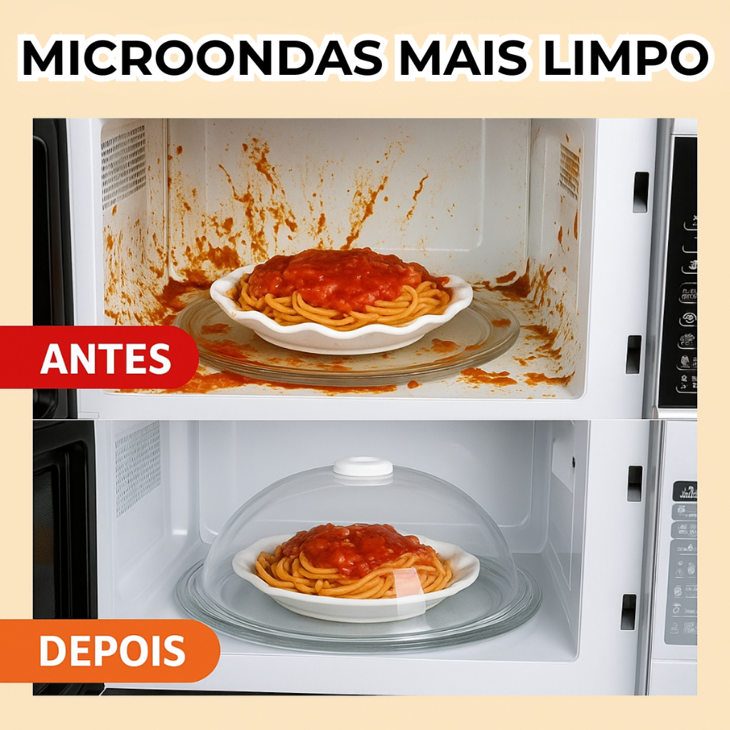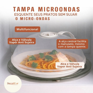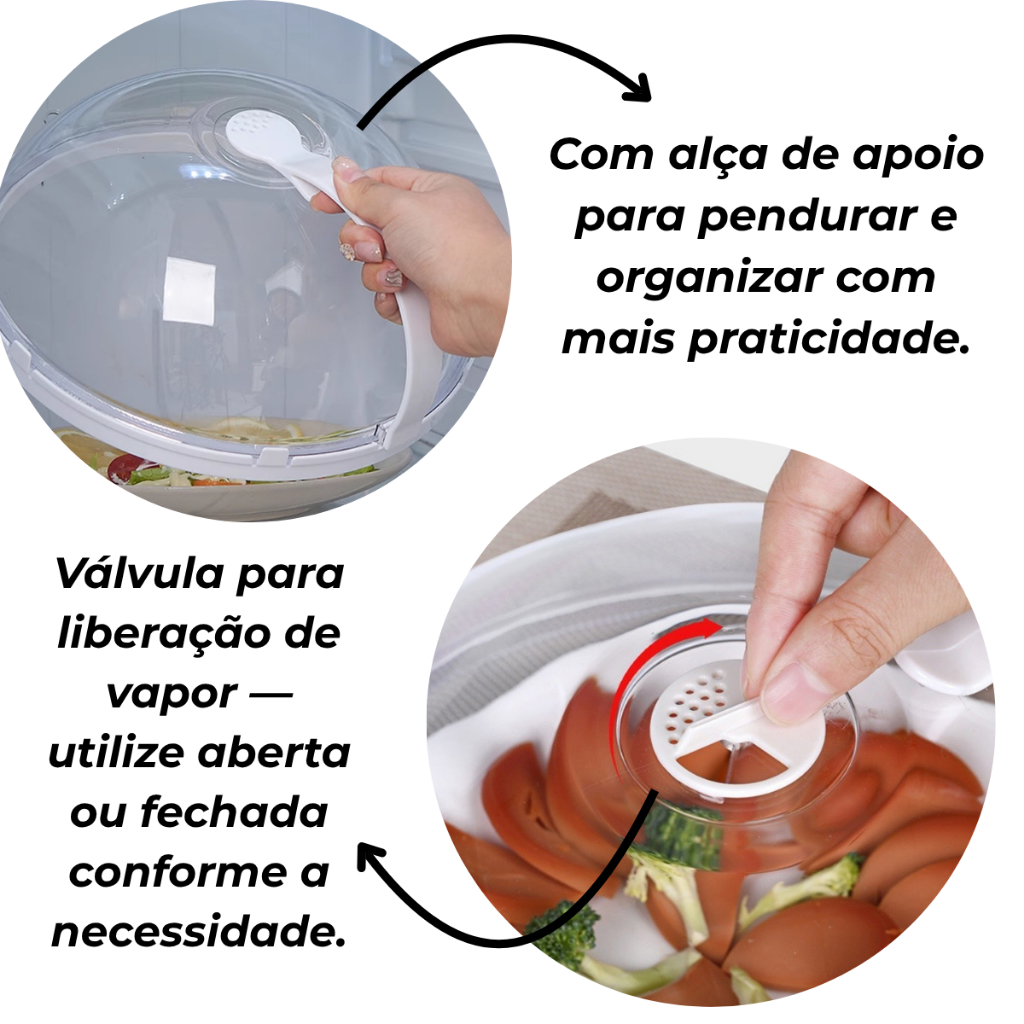 Tampa de Microondas Anti Sujeira Com Válvula e Alça Protetor de Alimentos Acrílico Transparente
