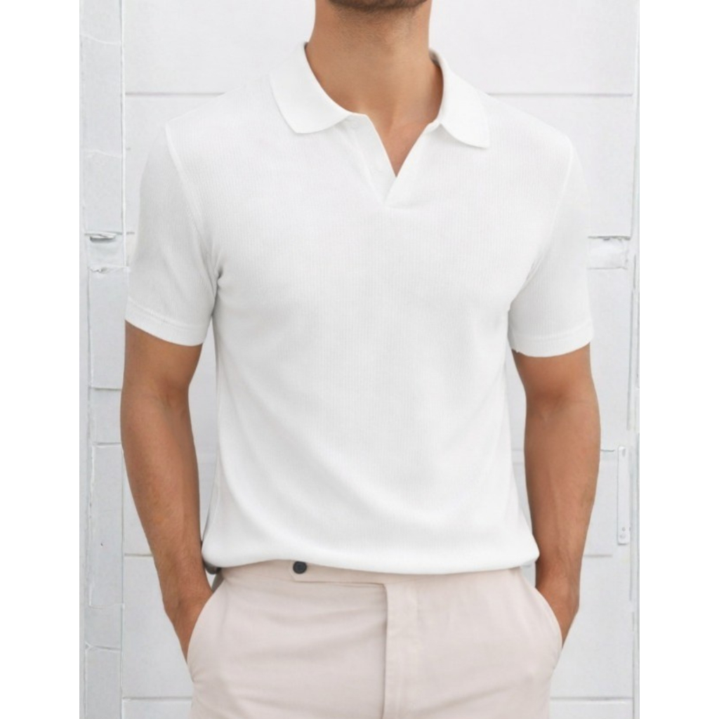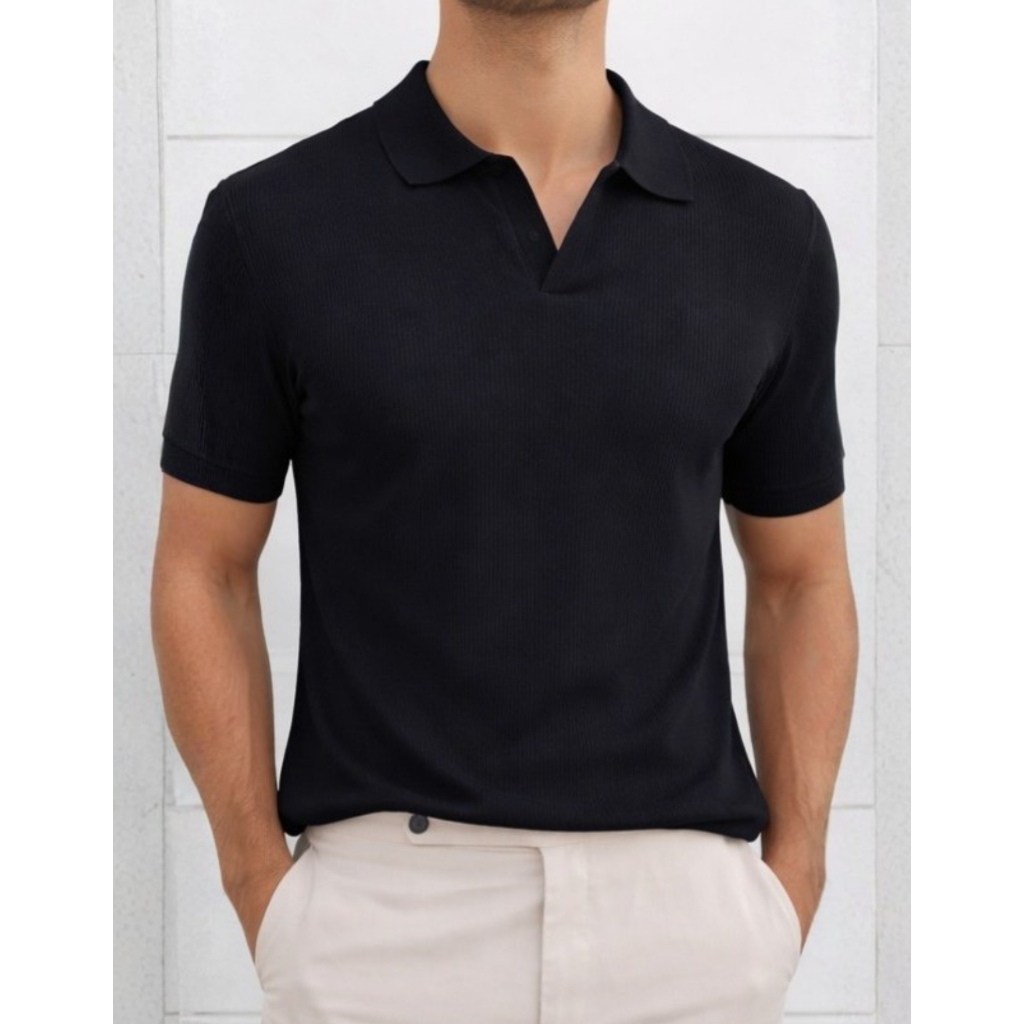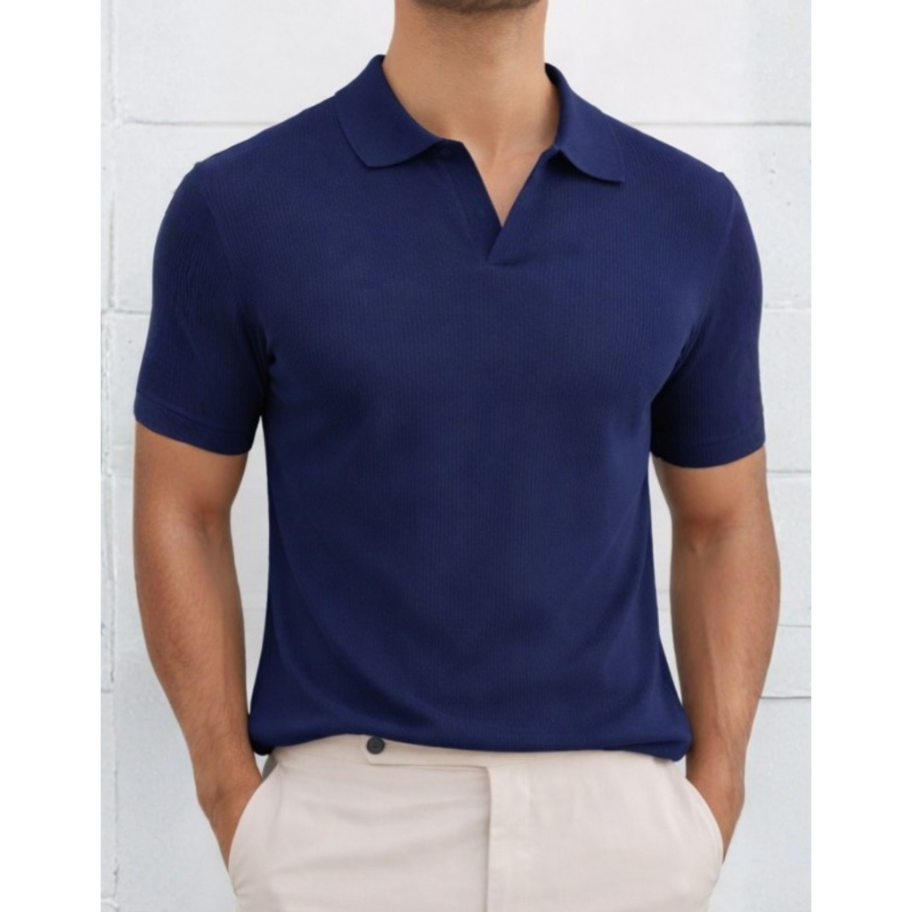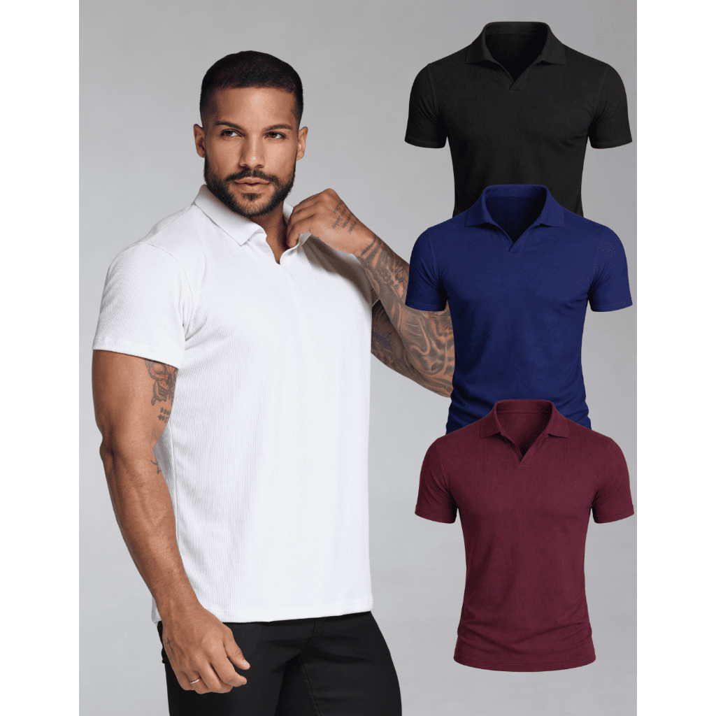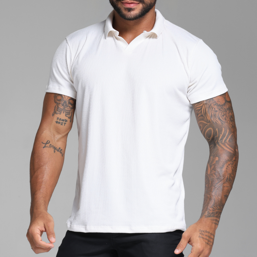 Camiseta Polo Italiana Texturizada Canelada Masculina Moda Casual Camisa Elegante