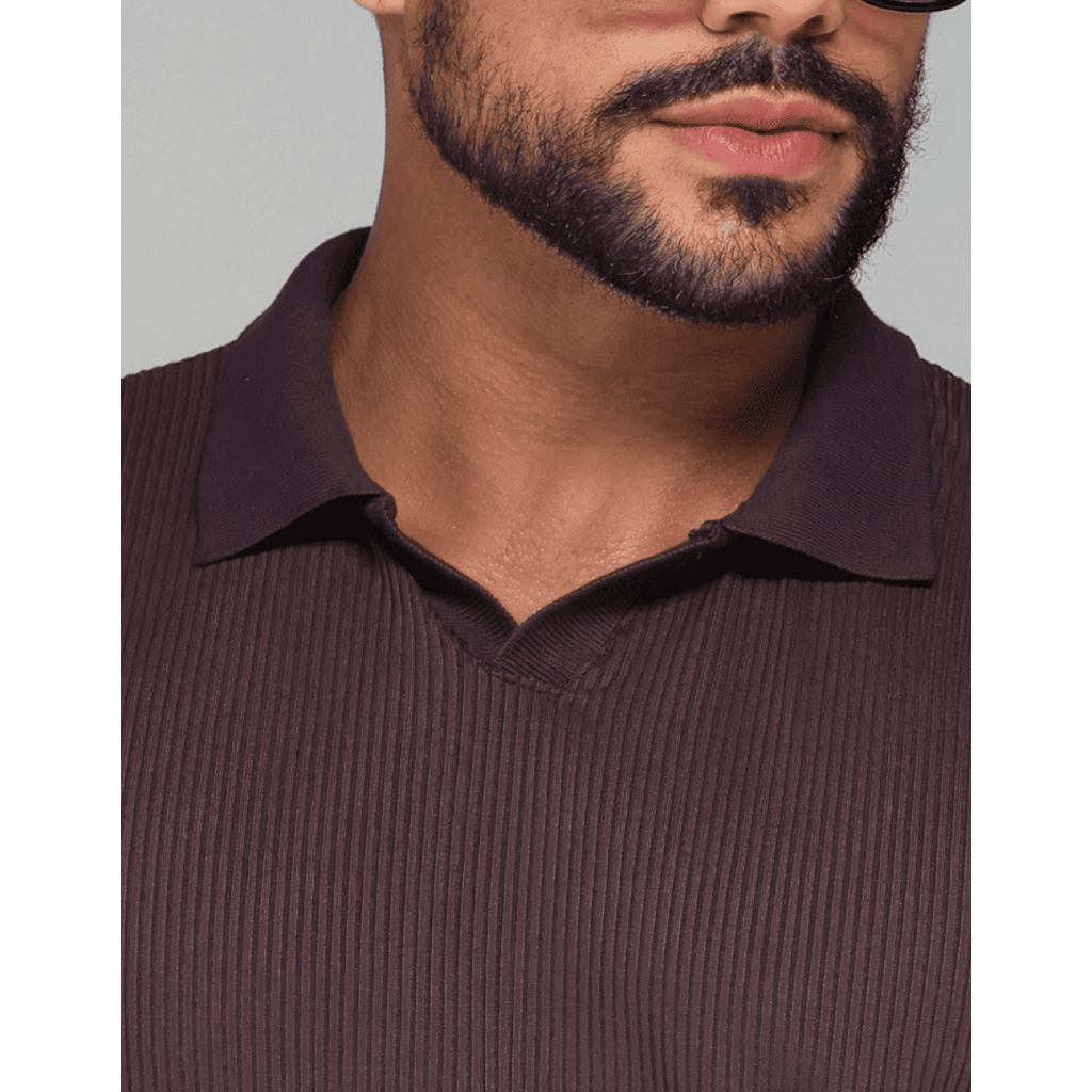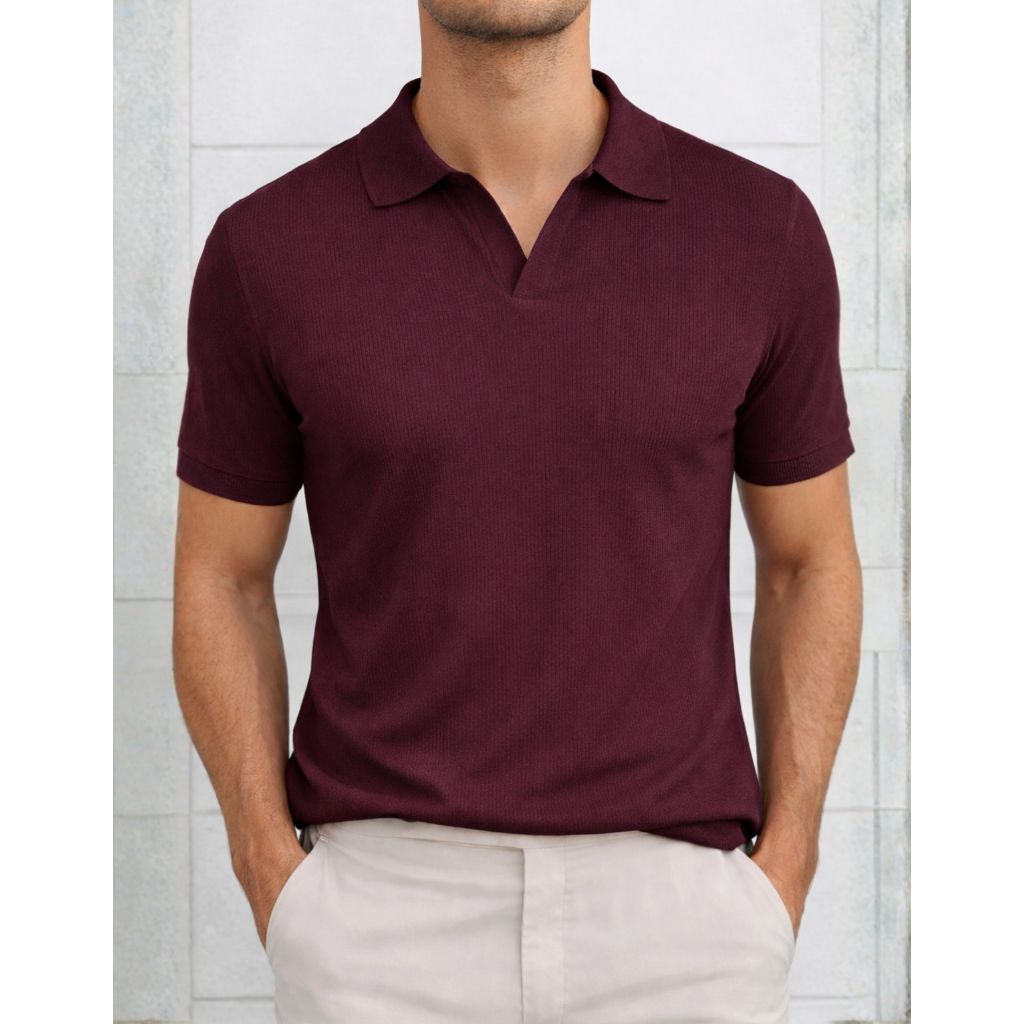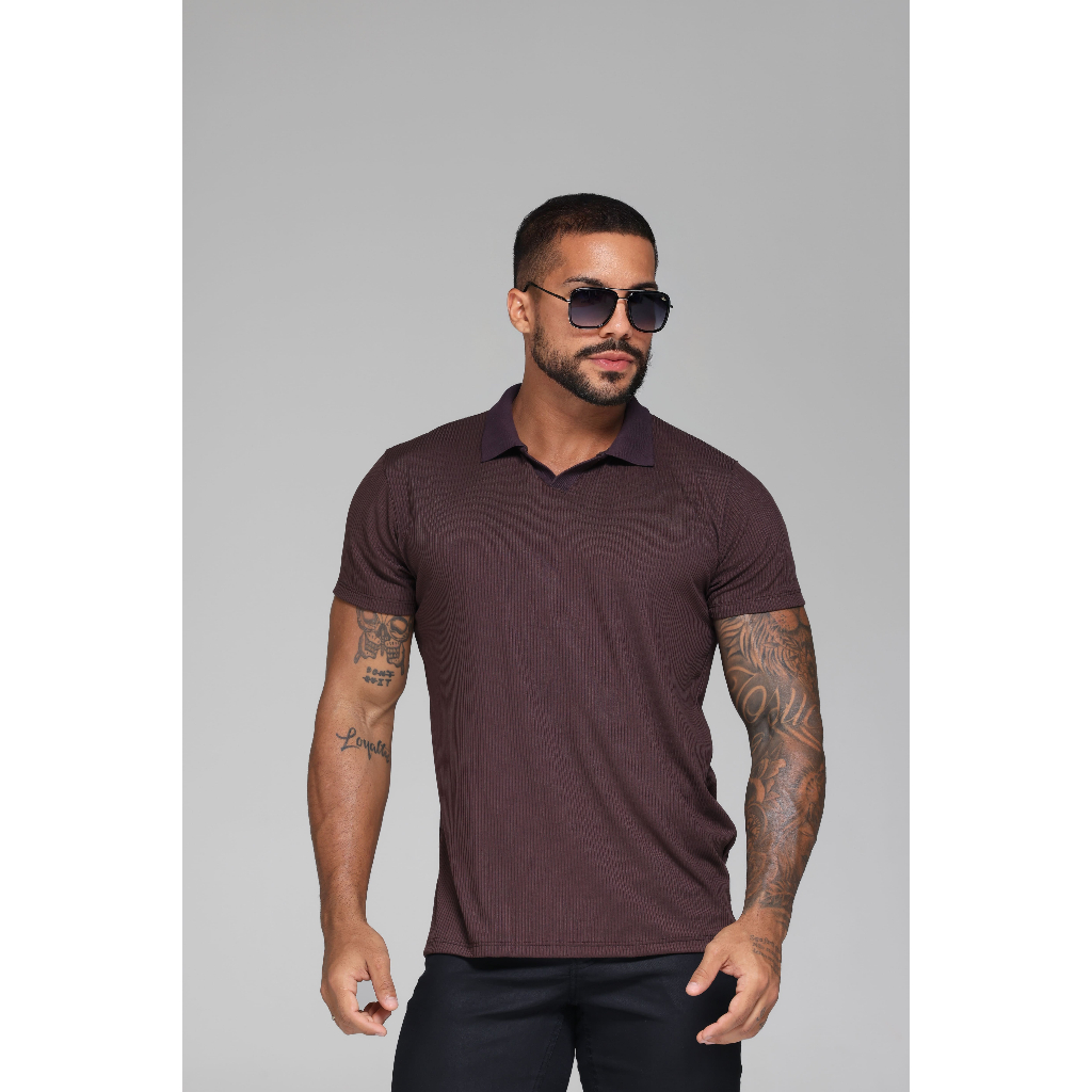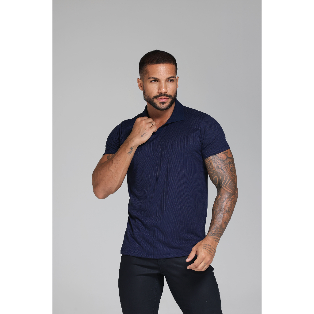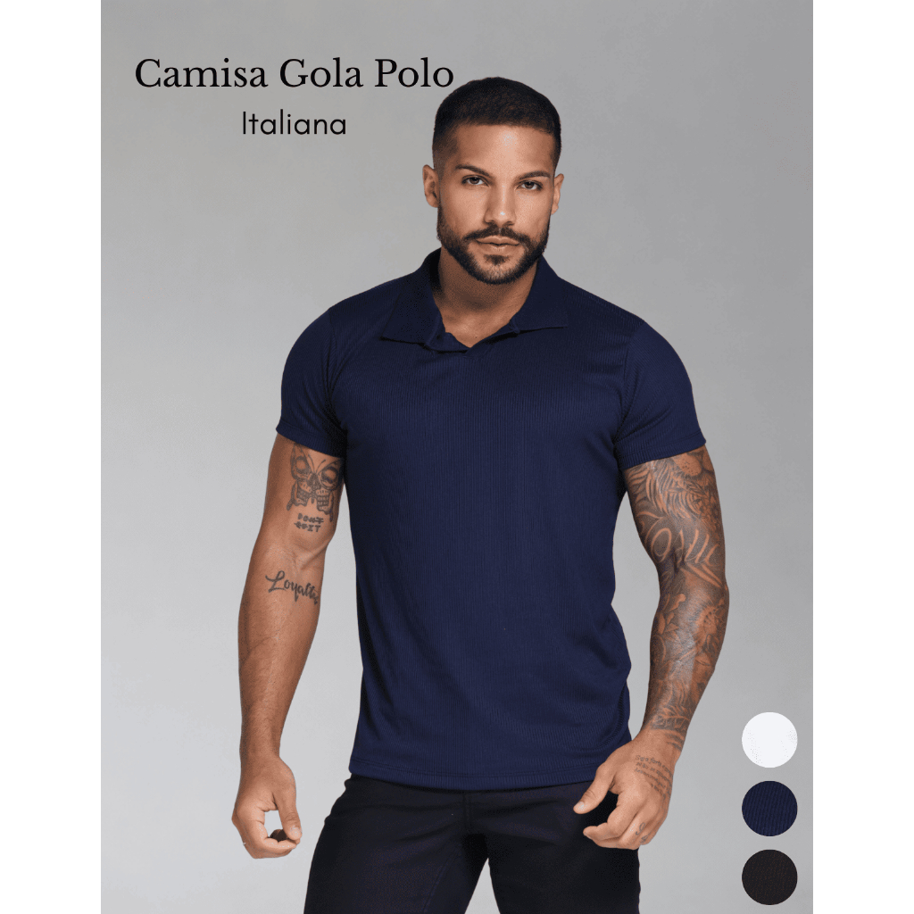 Camiseta Polo Italiana Texturizada Canelada Masculina Moda Casual Camisa Elegante
