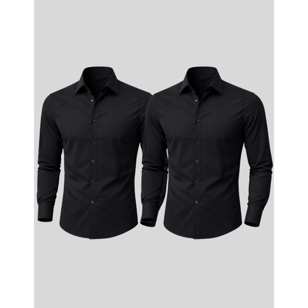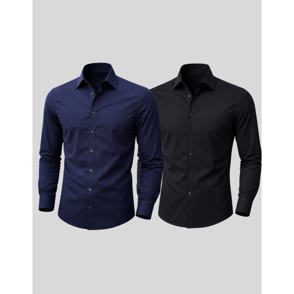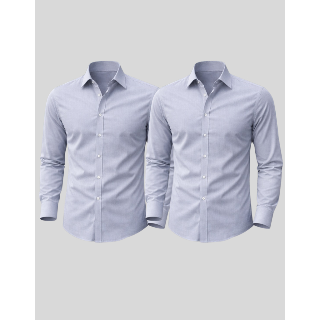Kit 2 Camisa Manga Longa Slim Fit Microfibra Não Amassa