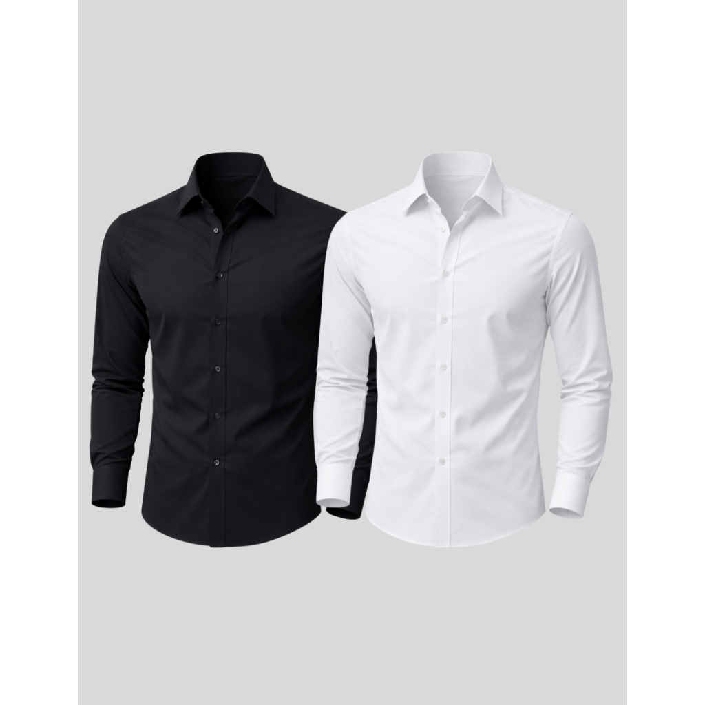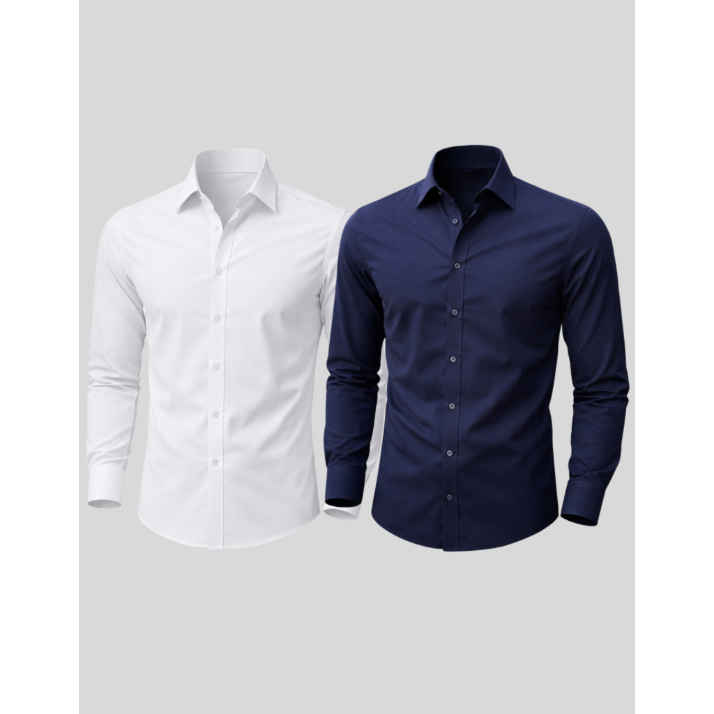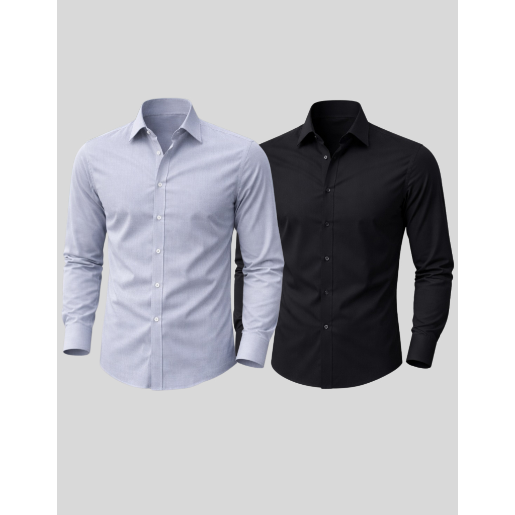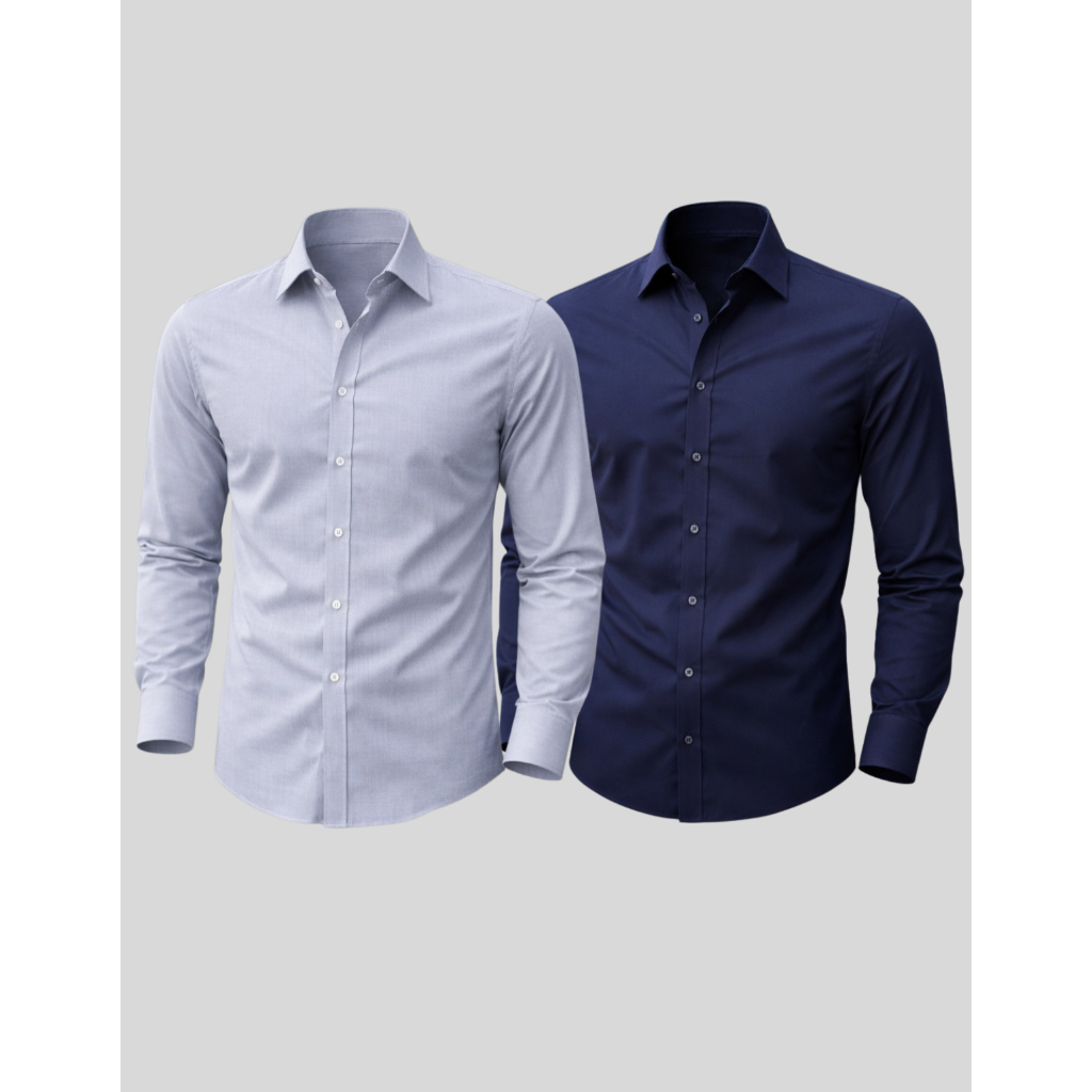 Kit 2 Camisa Manga Longa Slim Fit Microfibra Não Amassa