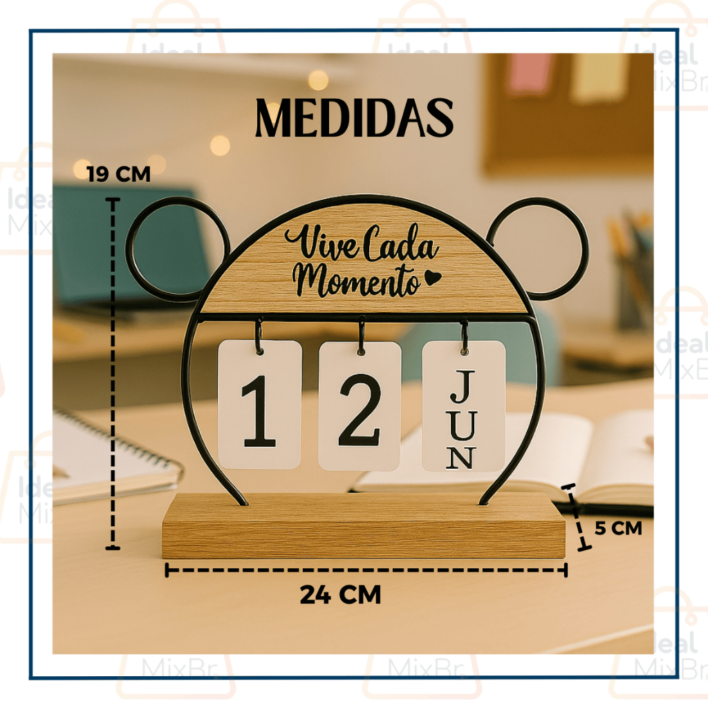 Calendário Permanente de Mesa com Frase Decoração Sala Escritório