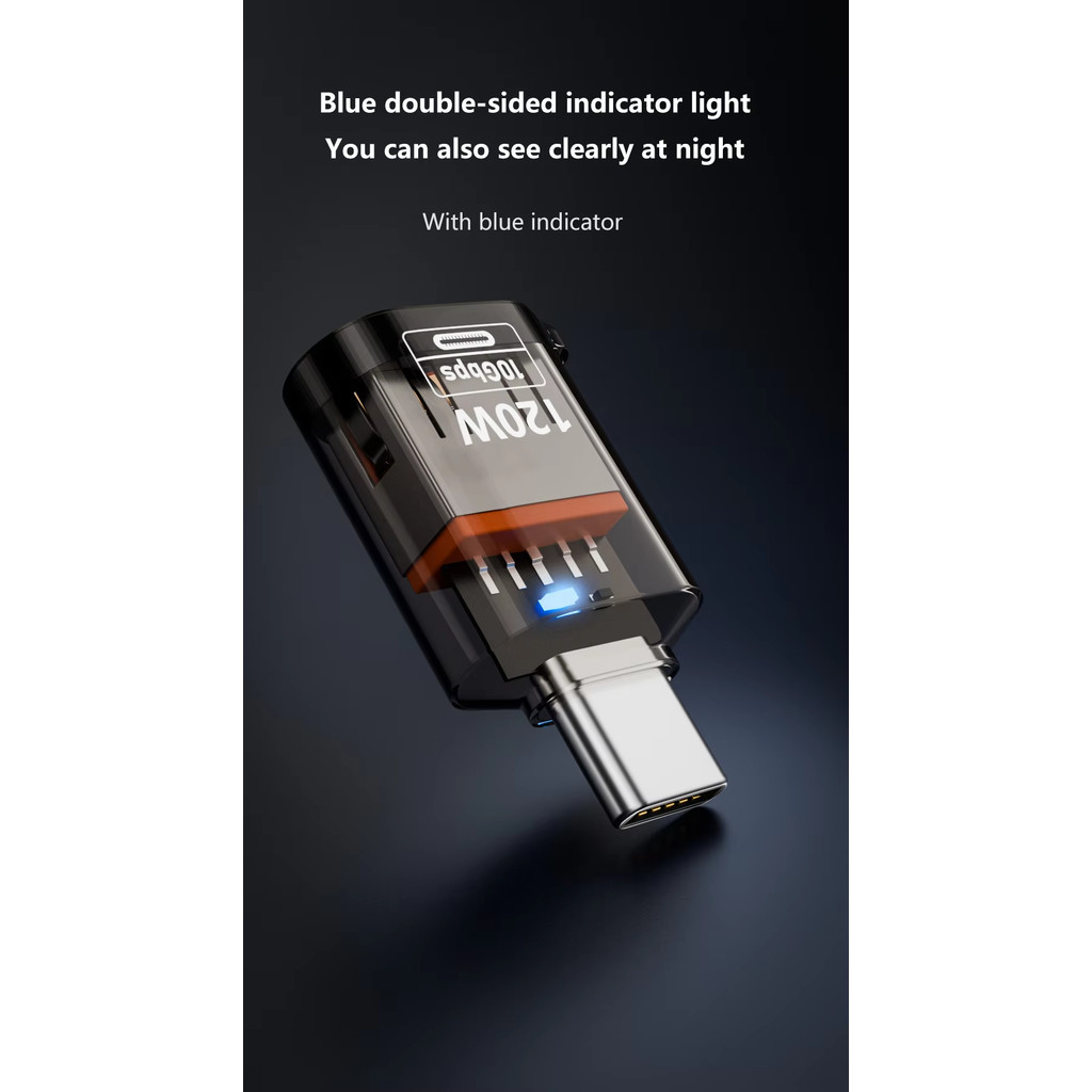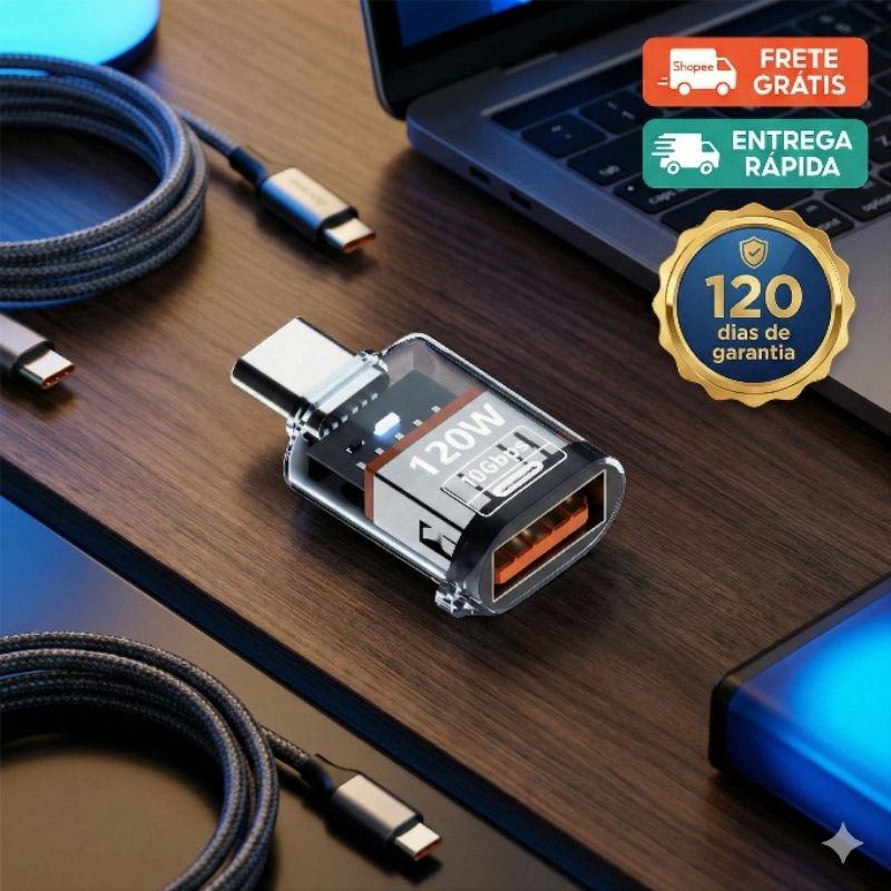 Adaptador USB A Fêmea USB C Macho 10Gbps PD 120W Transferência de Dados e Carregamento Potente