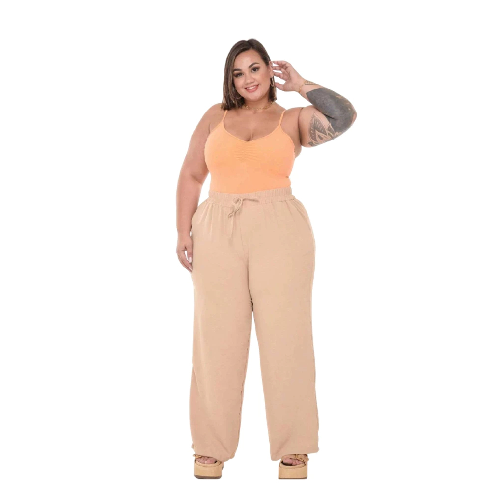 Calça Pantalona Feminina Plus Size Elegante Confortável Costura Reforçada