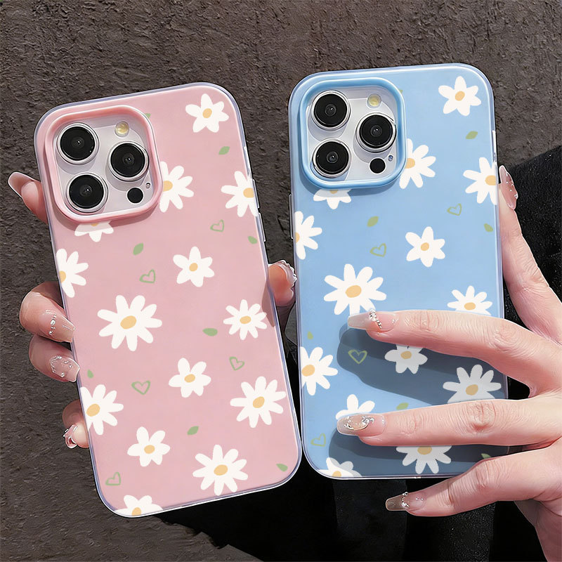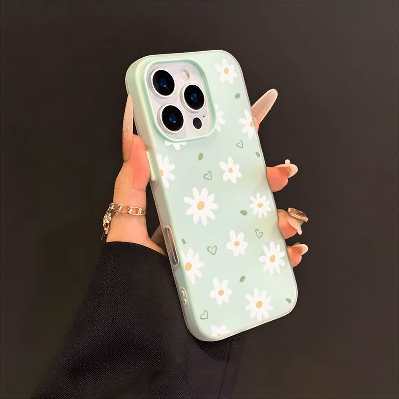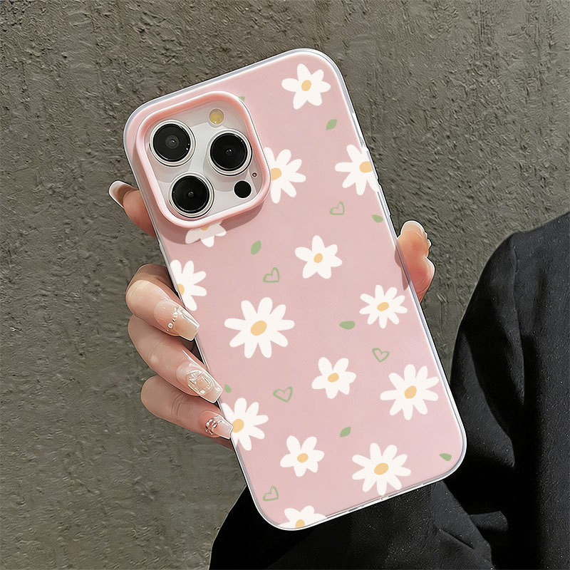 Flores Frescas 2 Em 1 Geléia Capa Capinha Silicone Para IPhone 13 11 12 14 15 16 17 16e Normal Pro Max Ar Macarons Caso