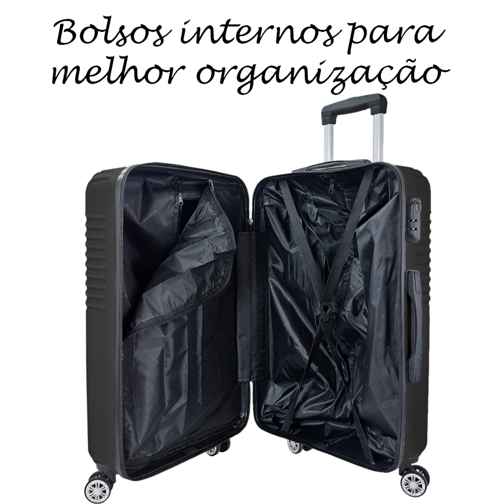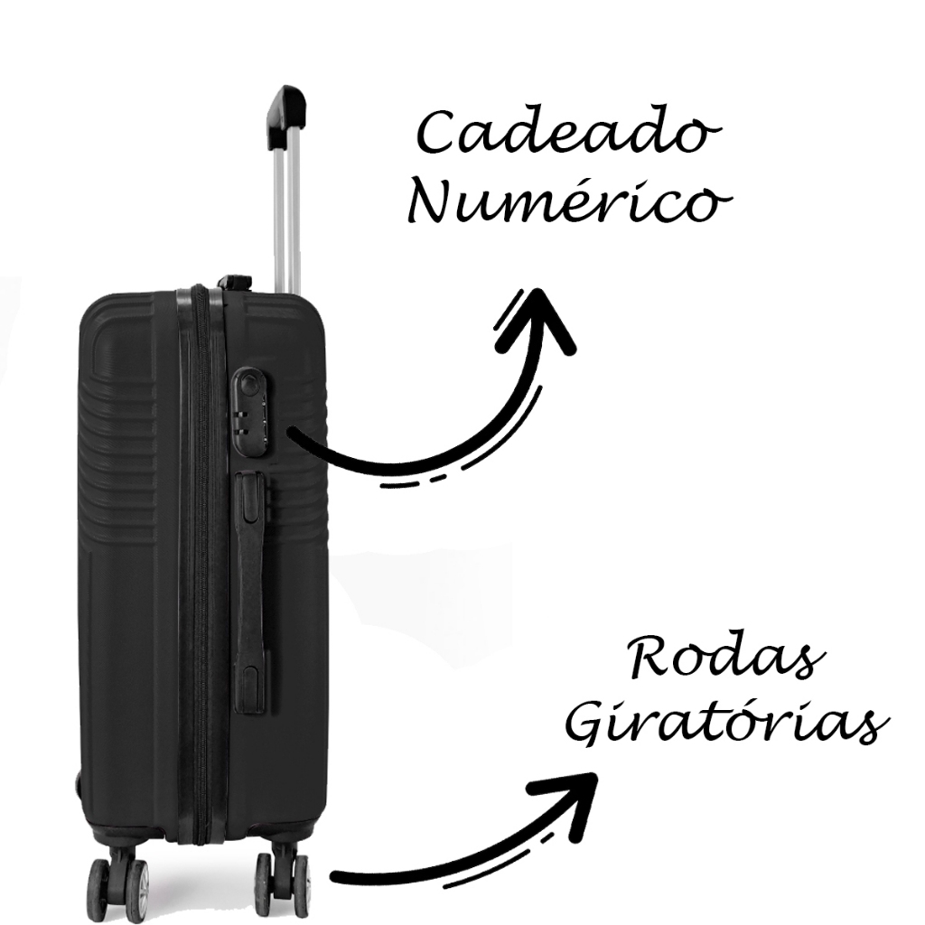 Kit 3 Malas de Viagem P/M/G Rígidas ABS com Cadeado Numérico e Rodas 360
