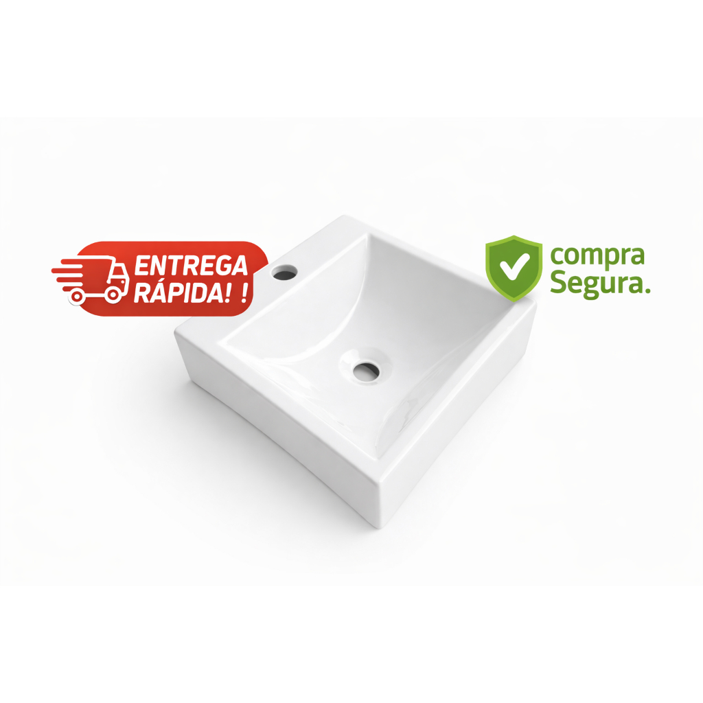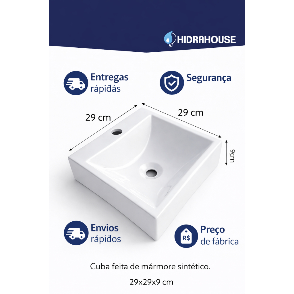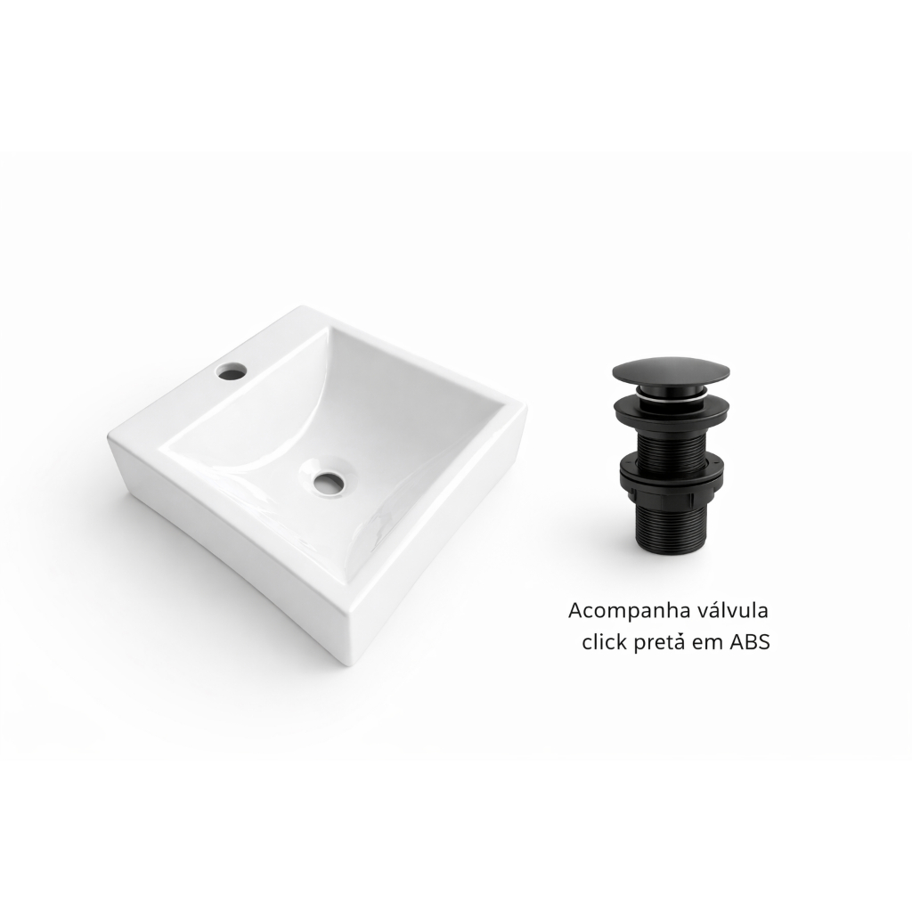 Cuba para Banheiro 29x29x9 Mármore Sintético com Válvula Click Preta Luck Compact