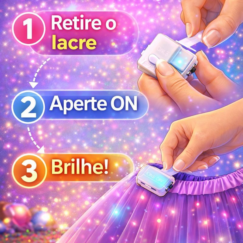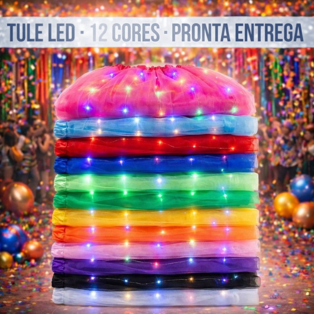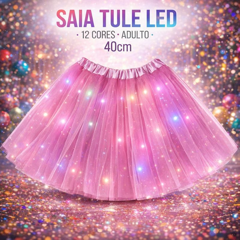 Saia Tule Tutu Brilho Colorida 40cm Carnaval com LED Ballet Dança Festa Fantasia Diversas Cores