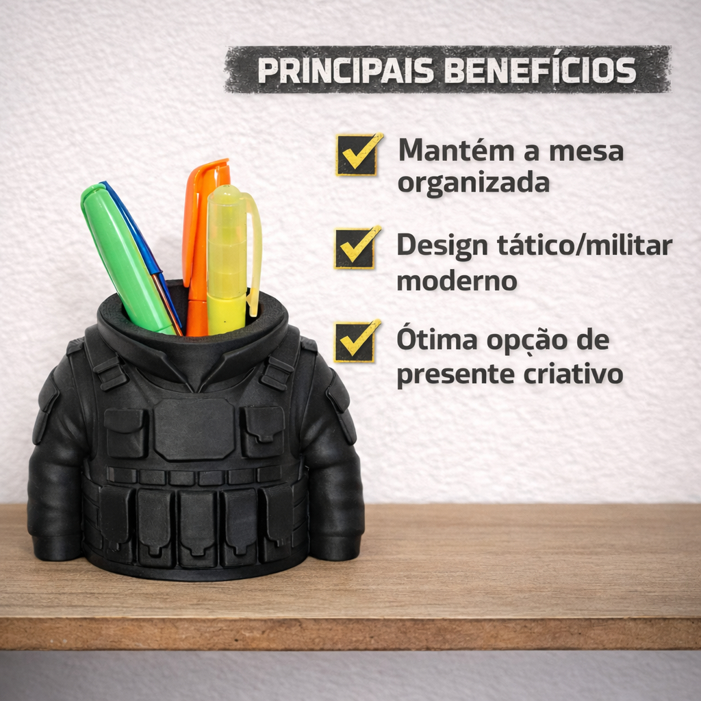 Porta Canetas Tático Militar Colete | Porta Lápis Organizador Mesa Escritório Home Office Gamer