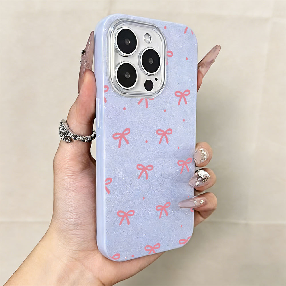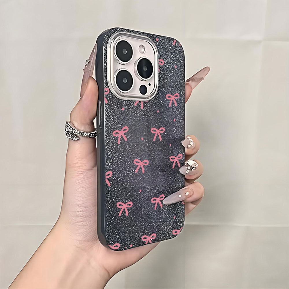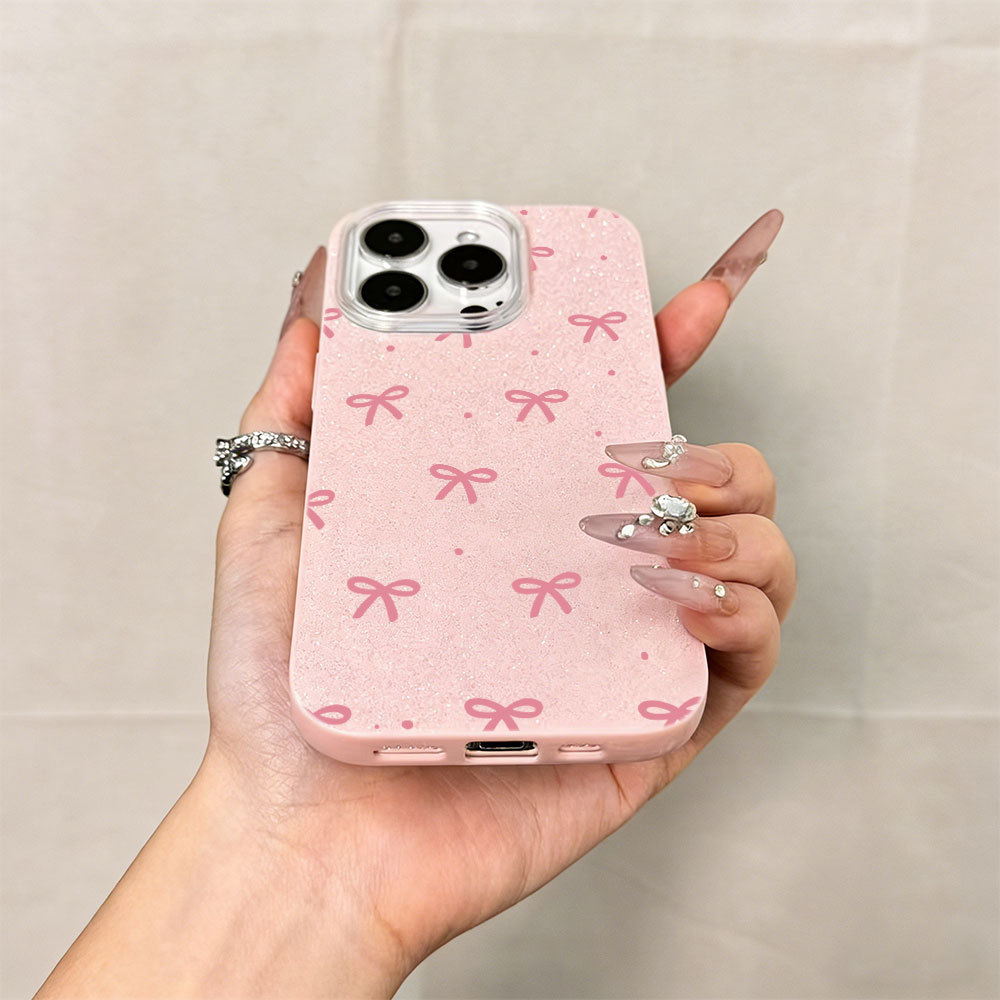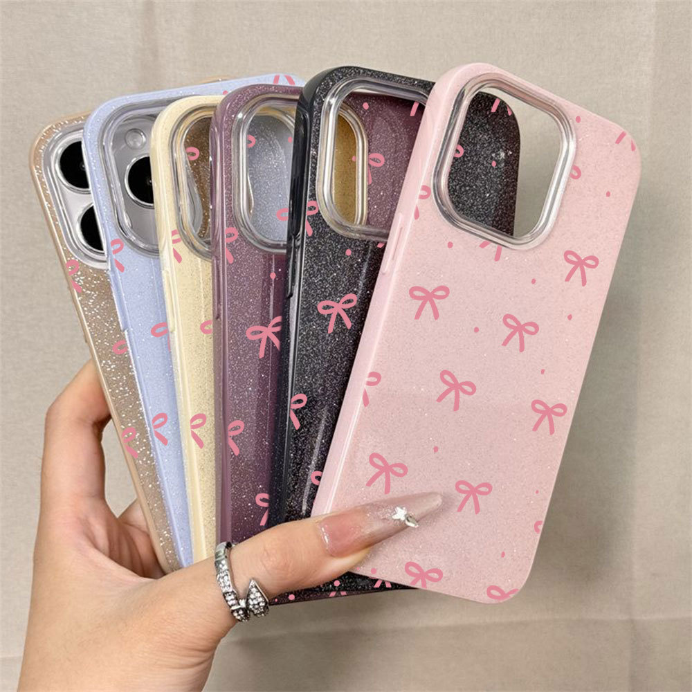 Rosa Glitter Laços Prova de Choque Capa Capinha Para iPhone 17 Ar 16 15 14 Plus 13 12 11 Pro Max XR Normal