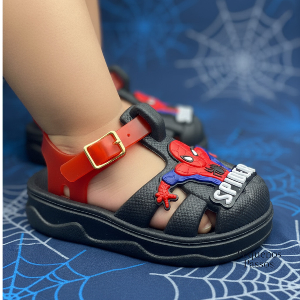 Sandália Babuche Infantil Homem Aranha Menino Bebe Confortável e Antiderrapante Pequenos Passos