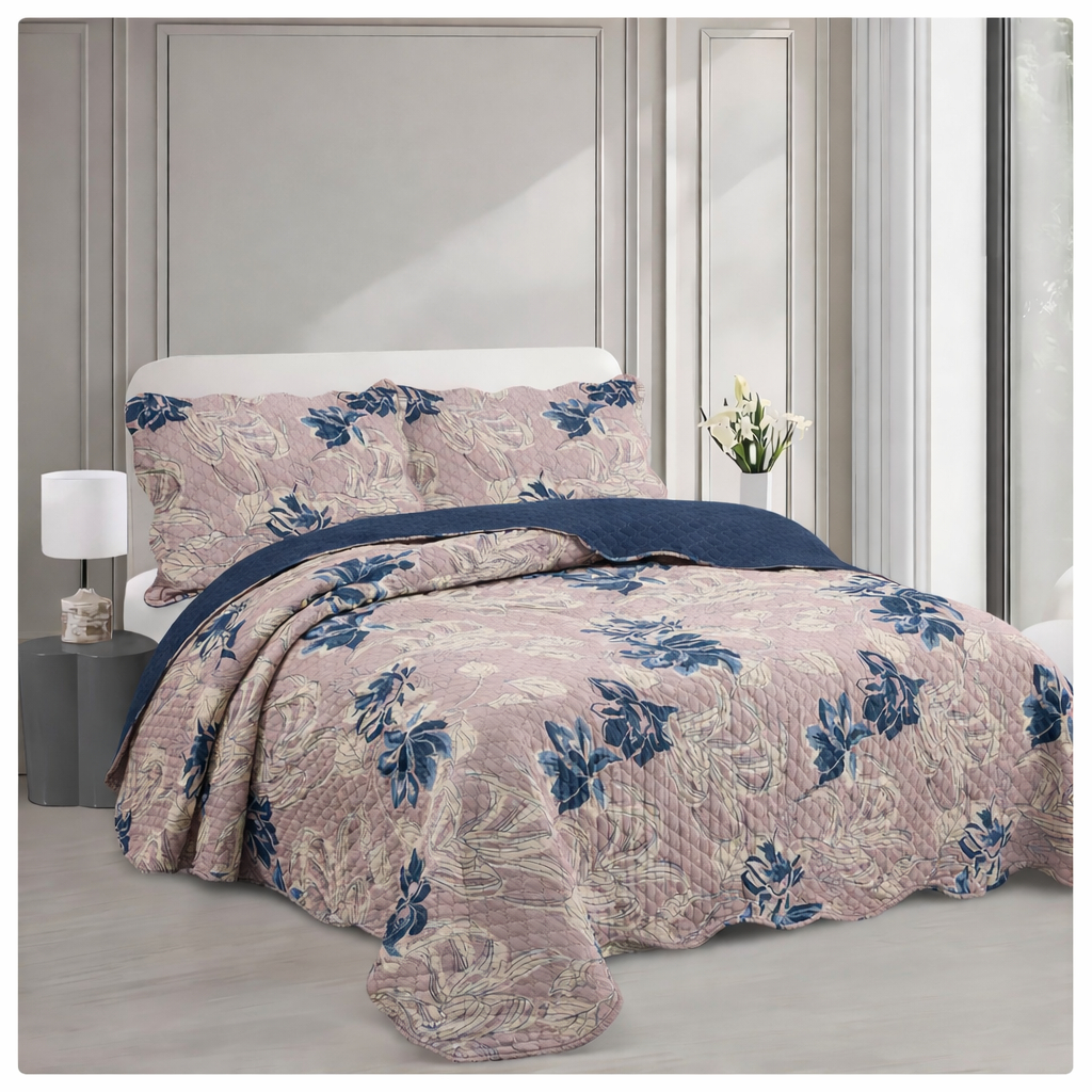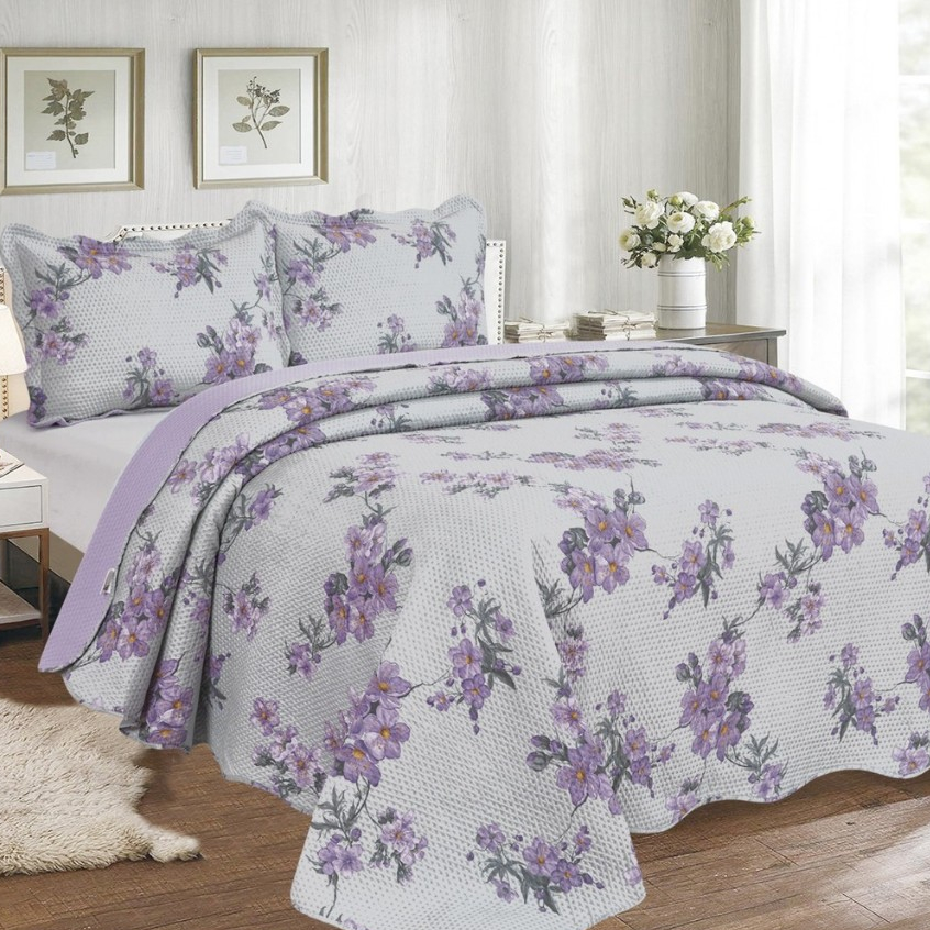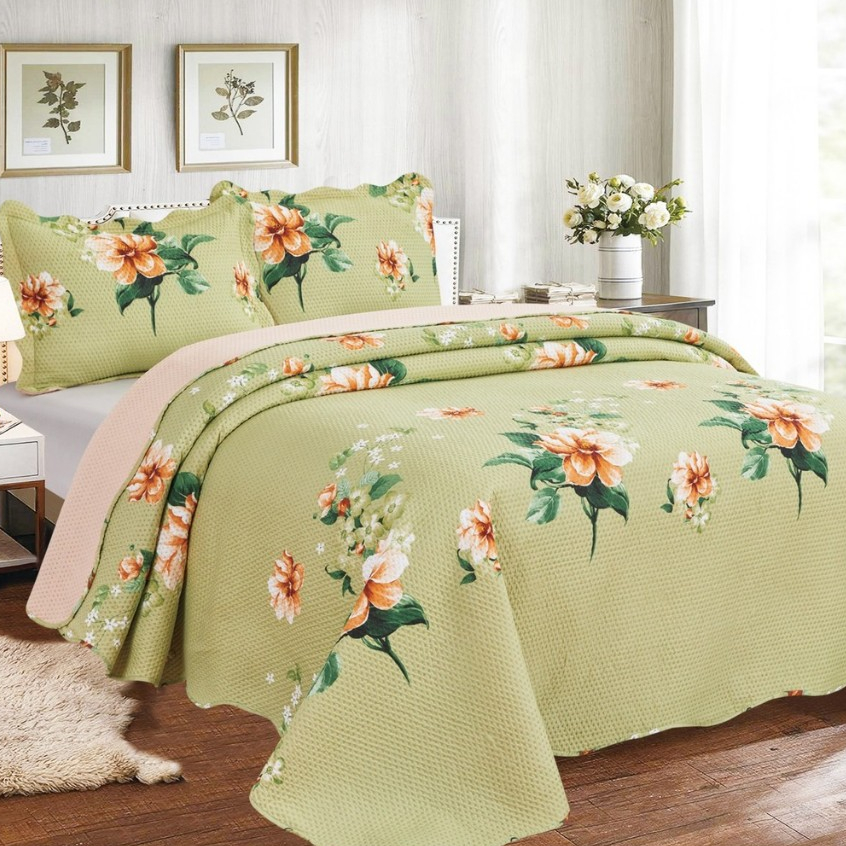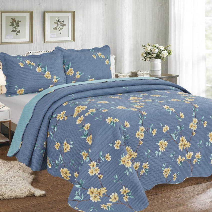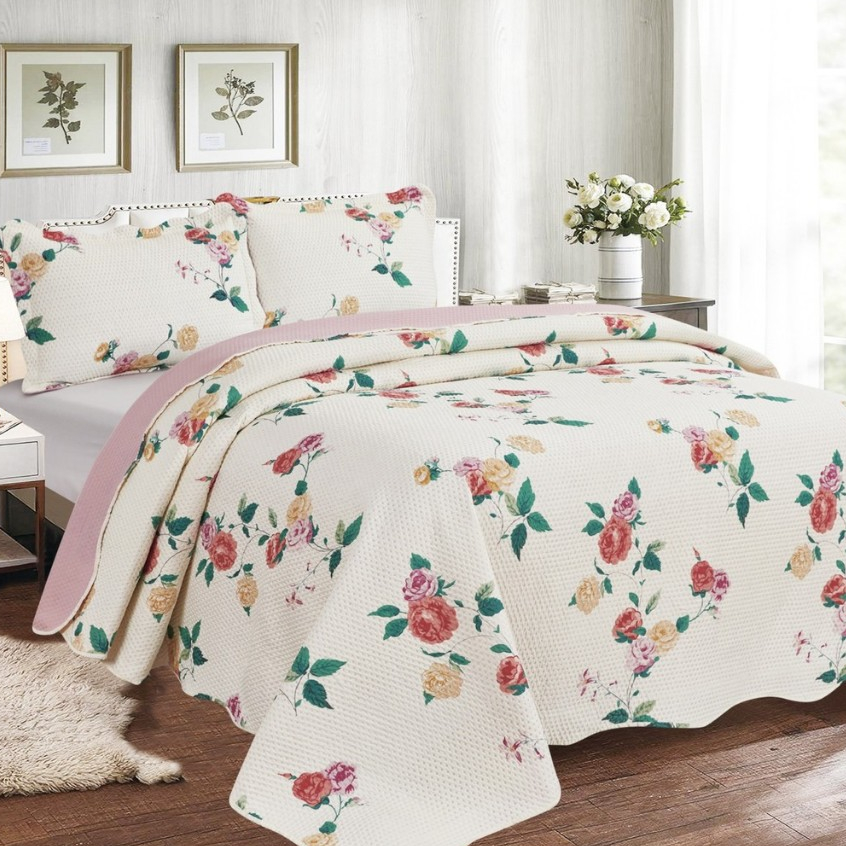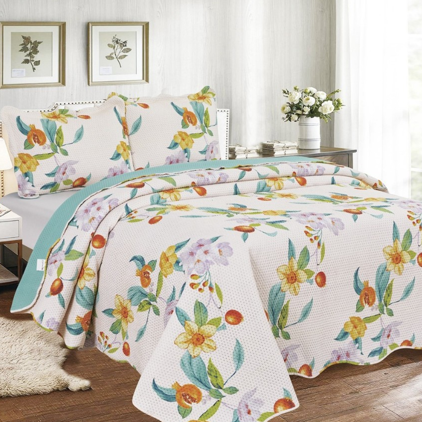 Cobre Leito Colcha Dupla Face 3 Peças Capri Estampada Floral Matelada Toque Macio