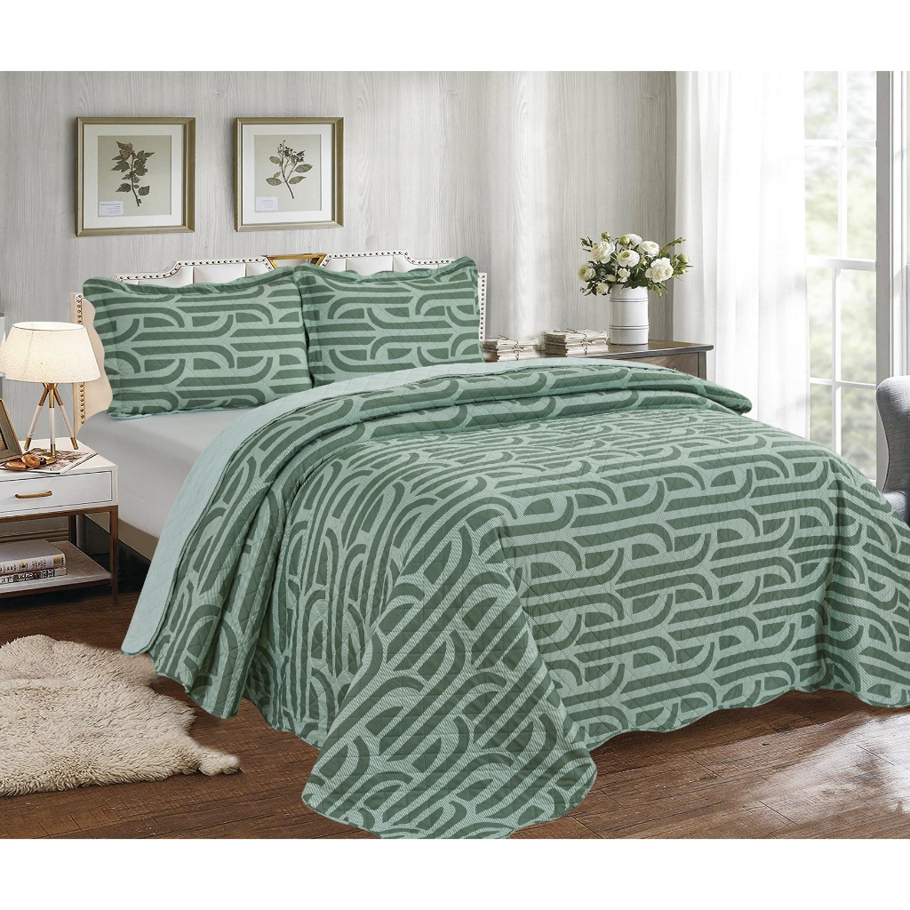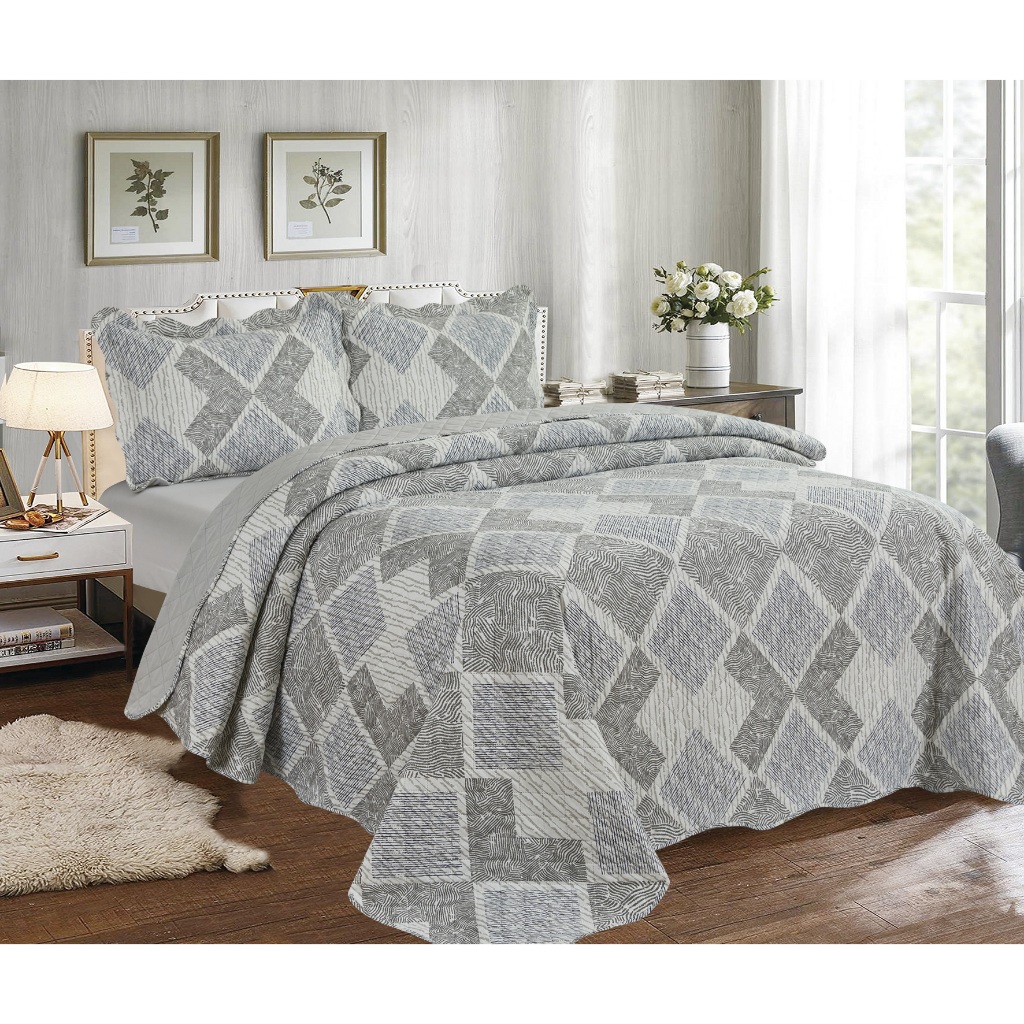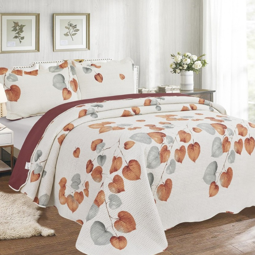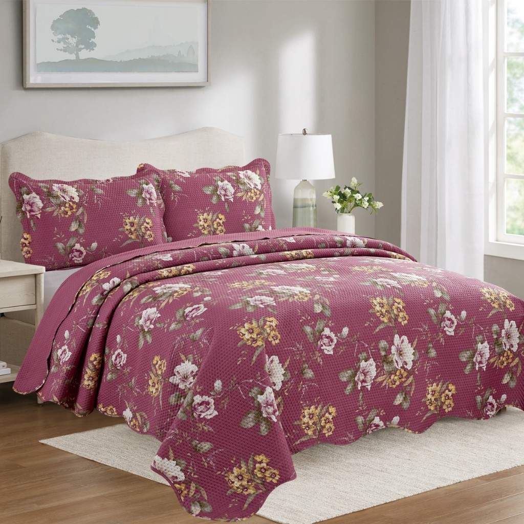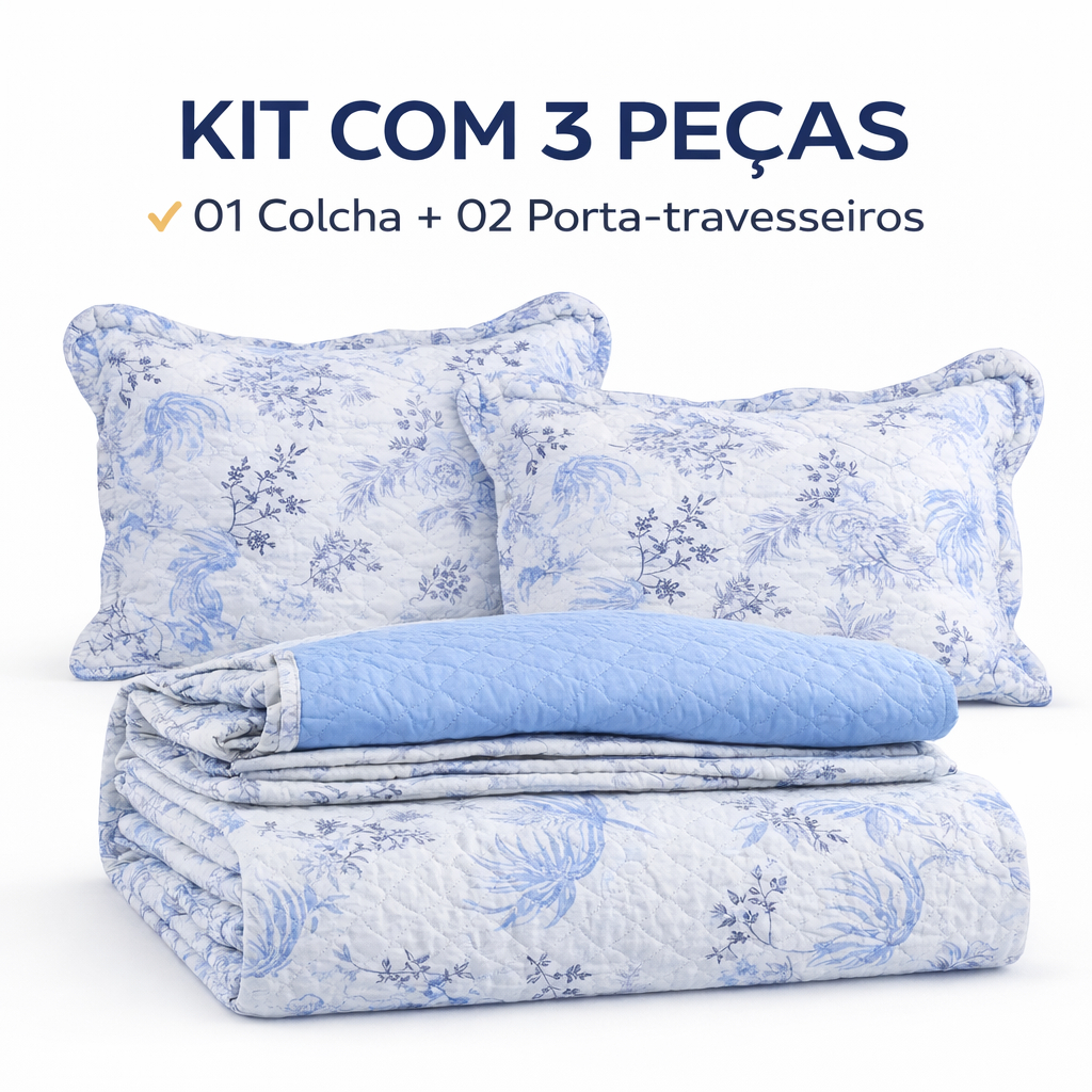 Cobre Leito Colcha Dupla Face 3 Peças Capri Estampada Floral Matelada Toque Macio