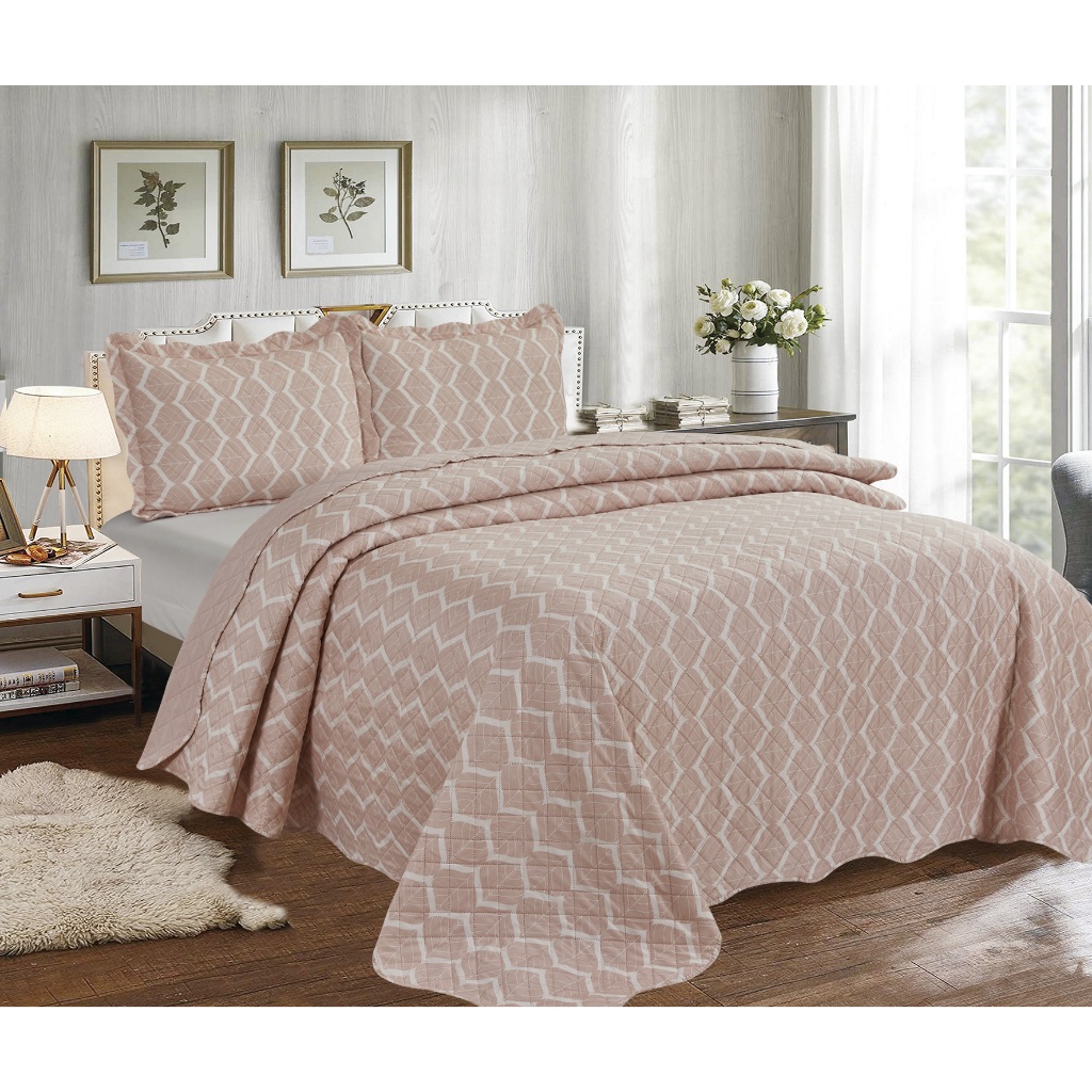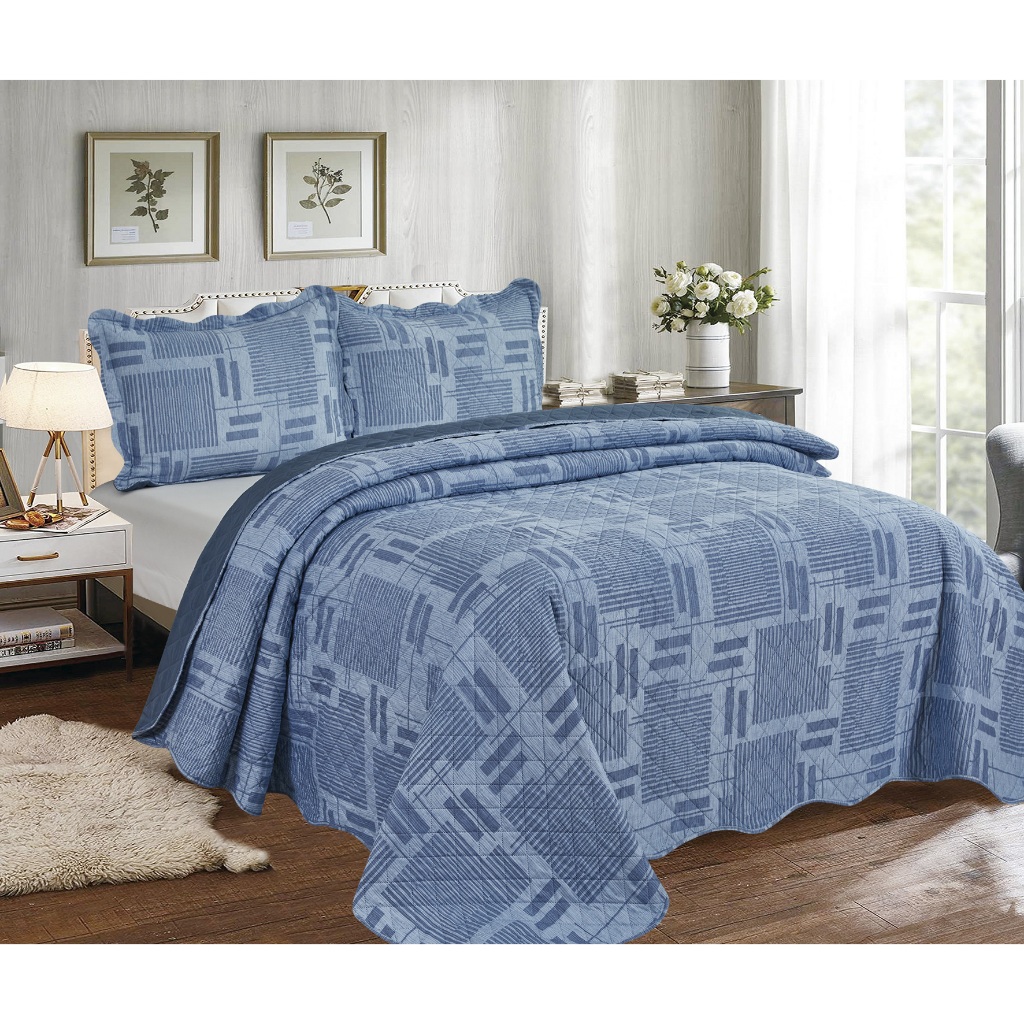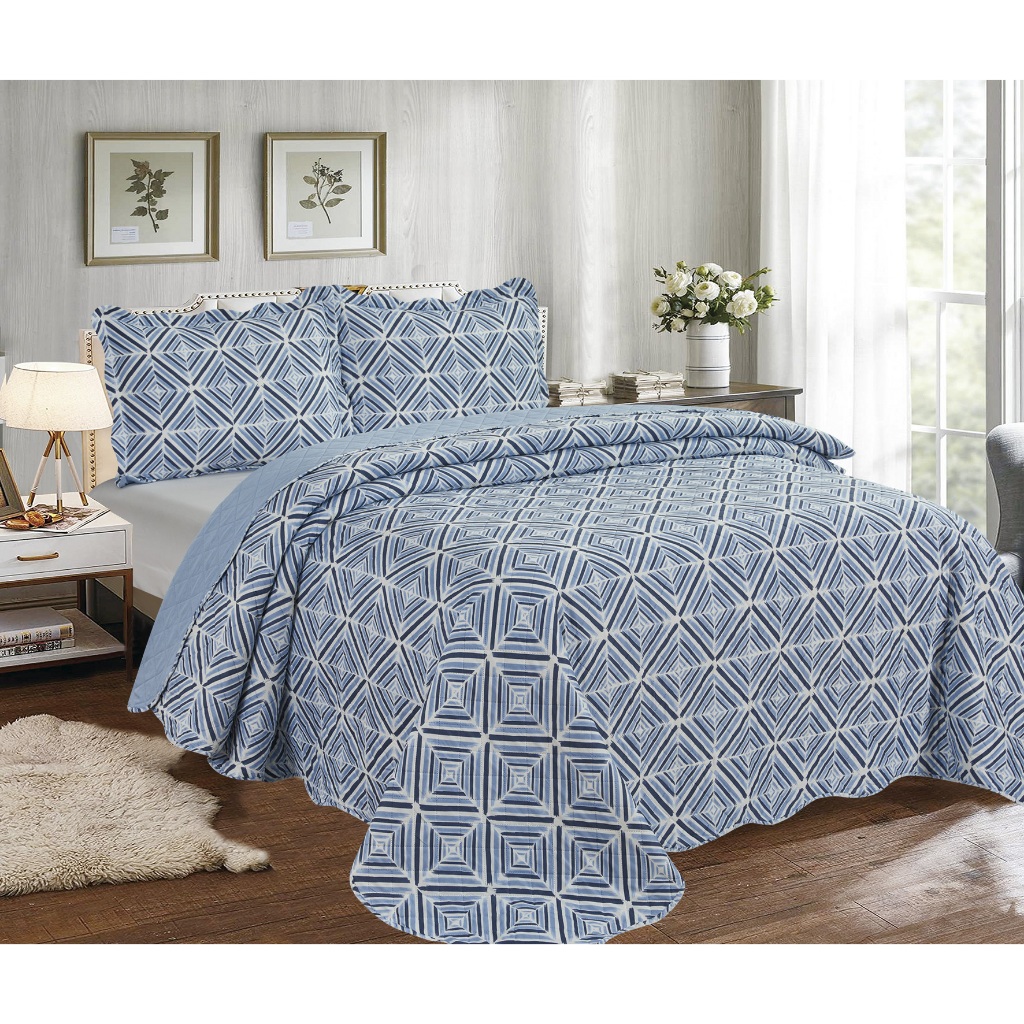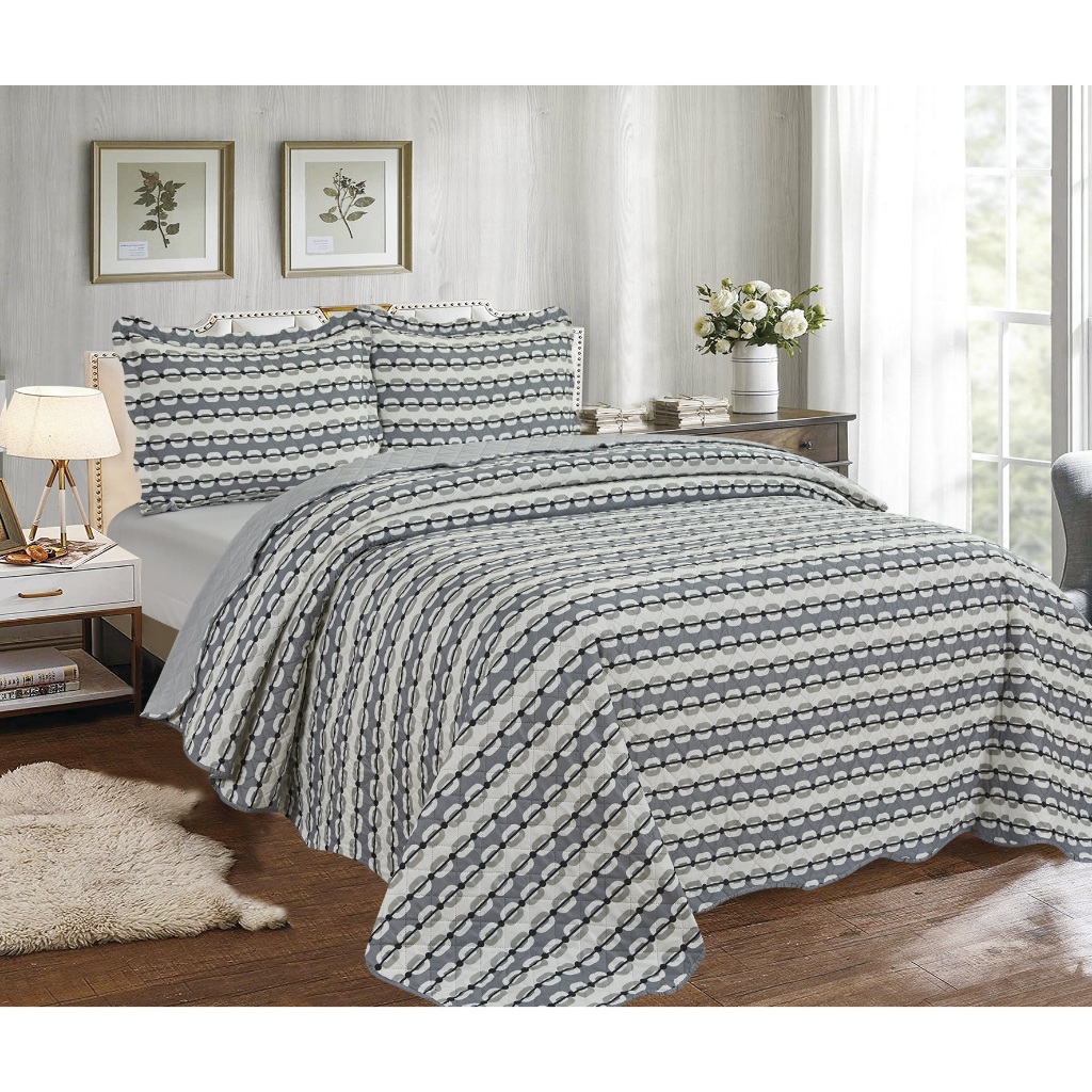 Cobre Leito Colcha Dupla Face 3 Peças Capri Estampada Floral Matelada Toque Macio