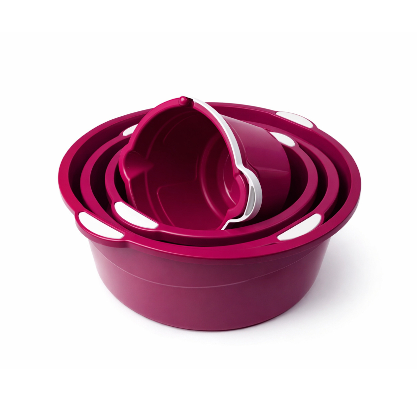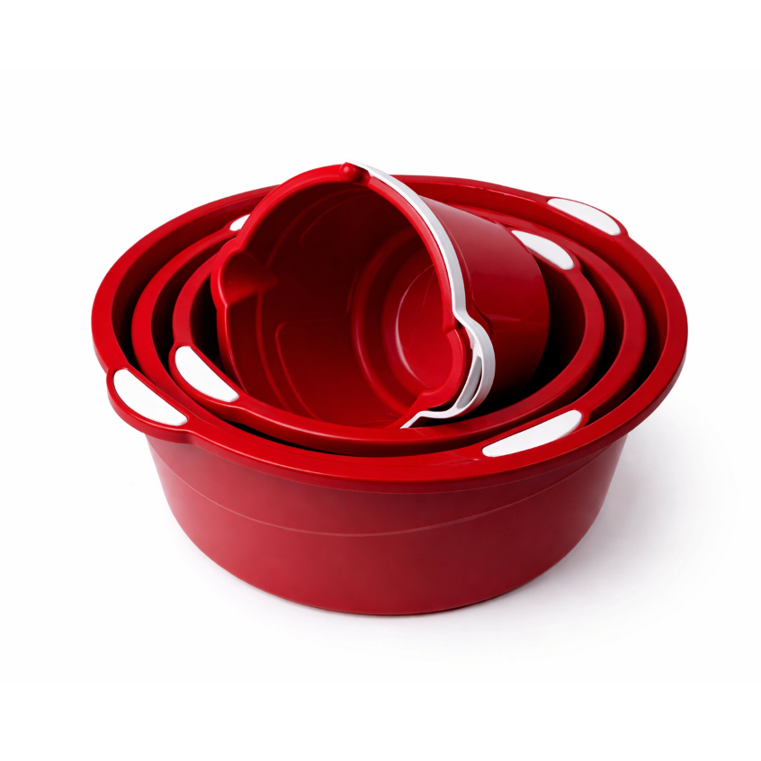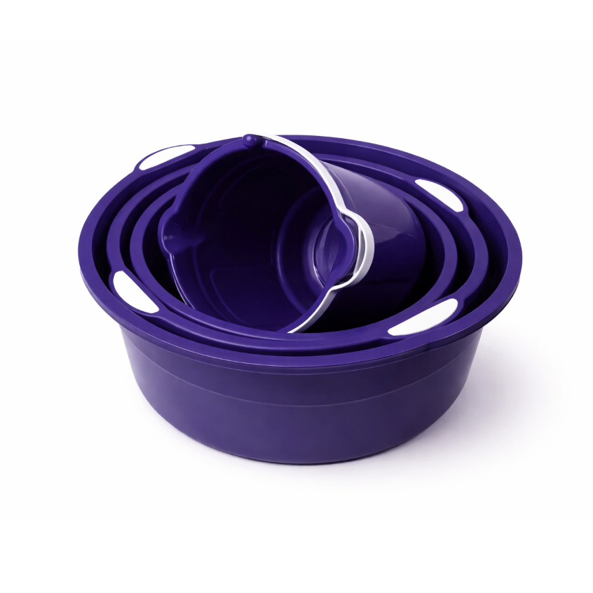 Kit 3 Bacias + 1 Balde Plástico Reforçado Empilhável Multiuso Alta Resistência