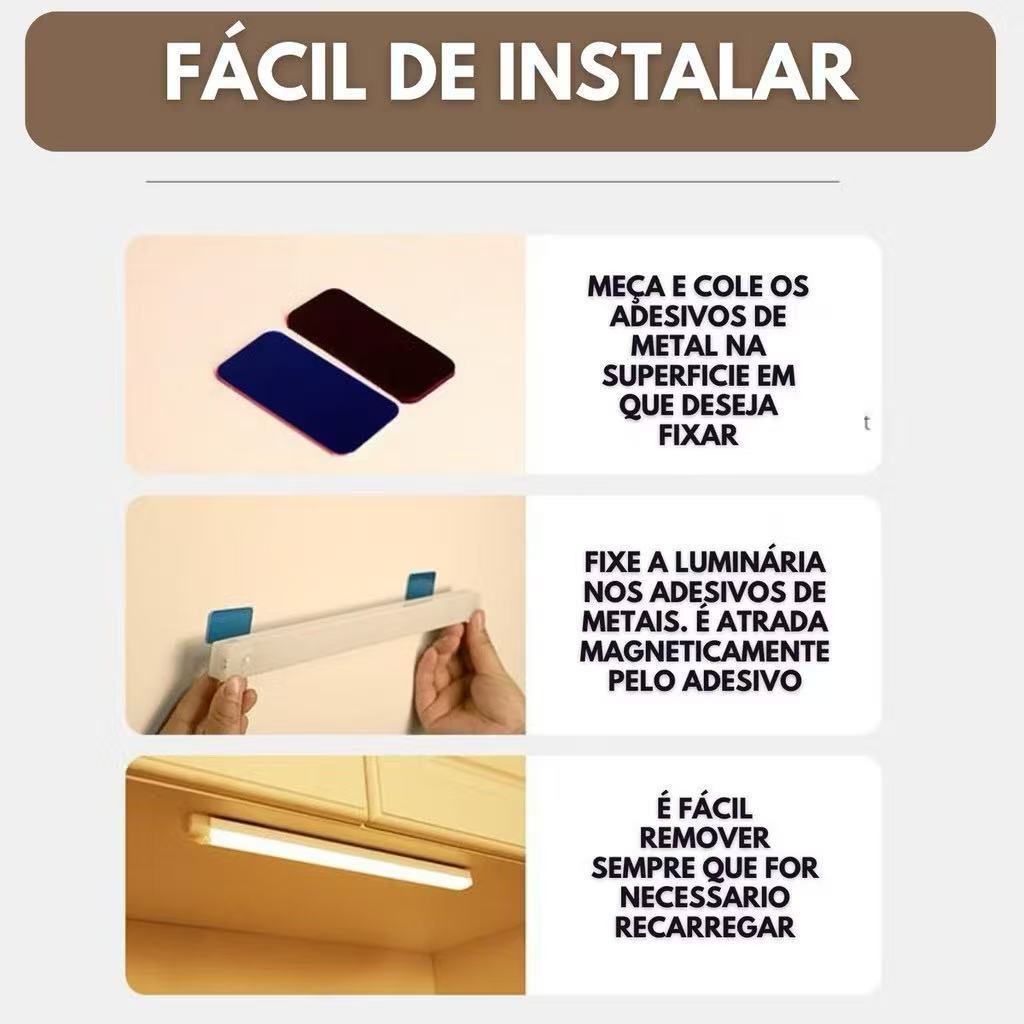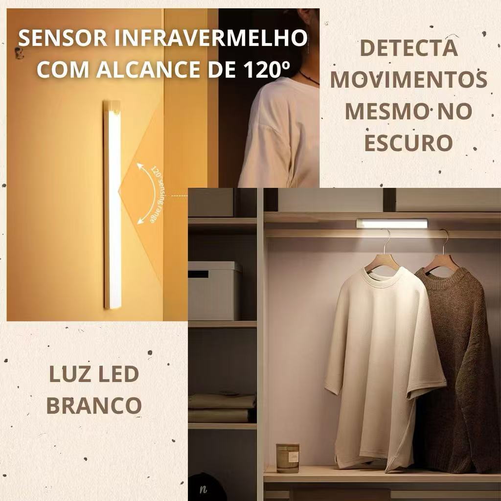 Smart Luminária Inteligente Ultra LED com sensor de movimento sem fio e Recarregável USB fino barra 20/50cm