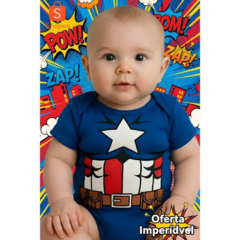 Body Bory Infantil Capitão América Com Máscara Envio Imediato !