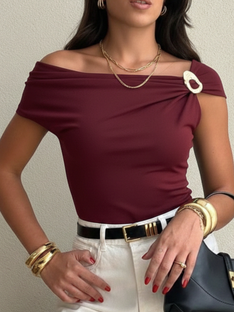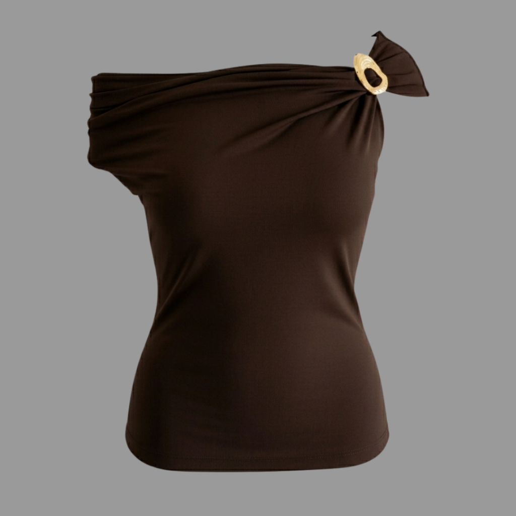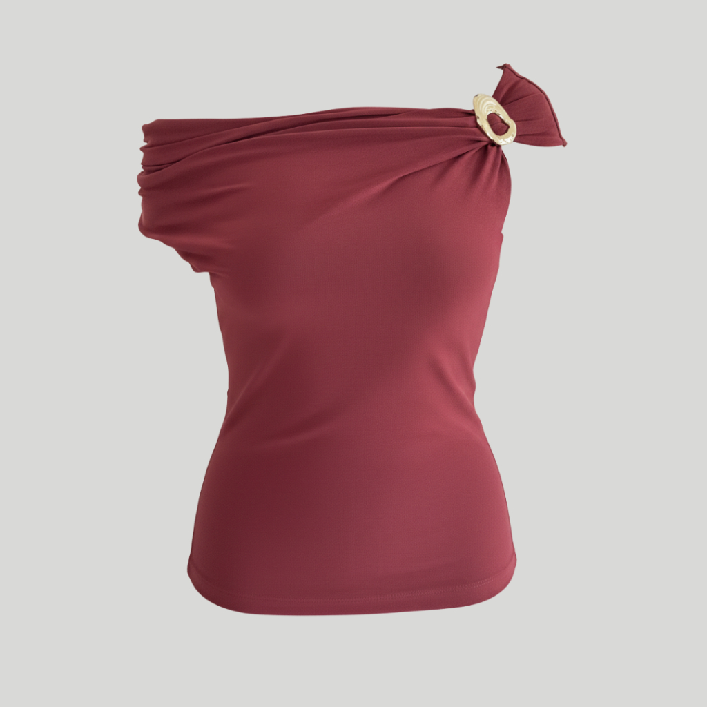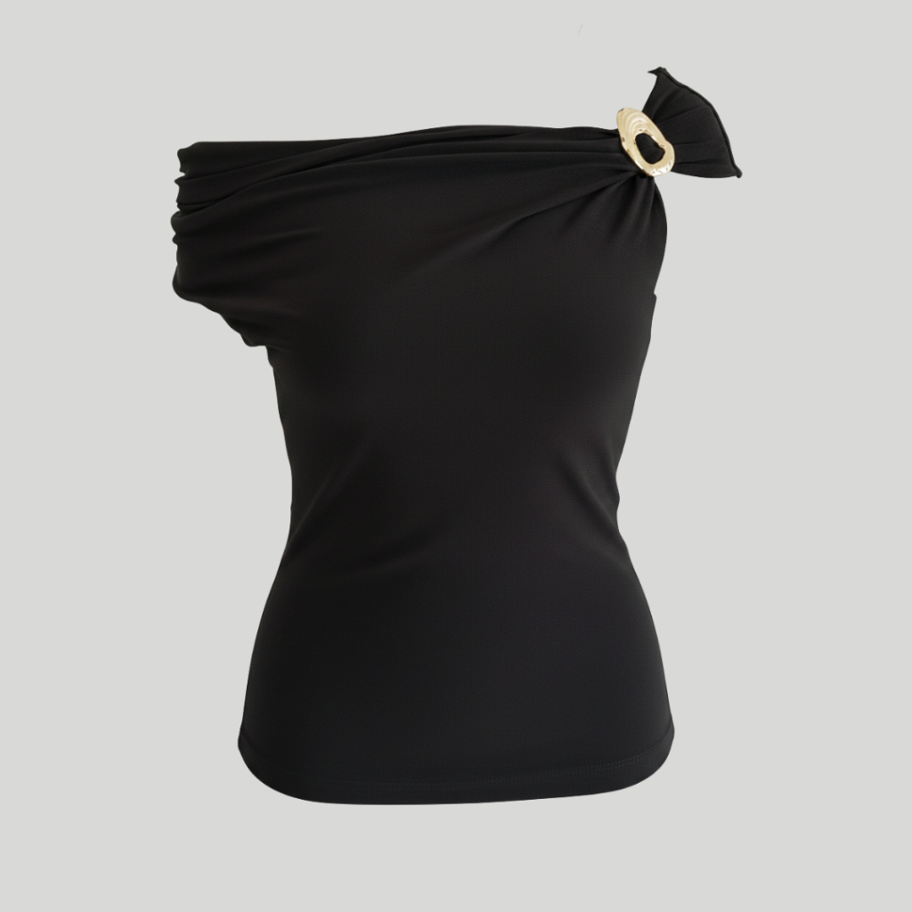 Blusa Feminina Assimétrica Ombro a Ombro Único Suplex Premium Com Argola Dourada Elegante Social Regata