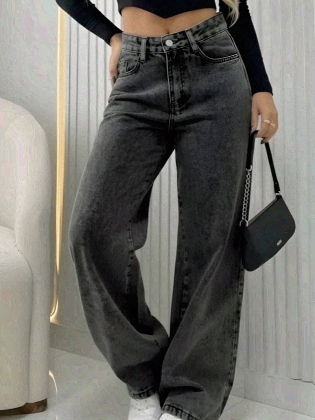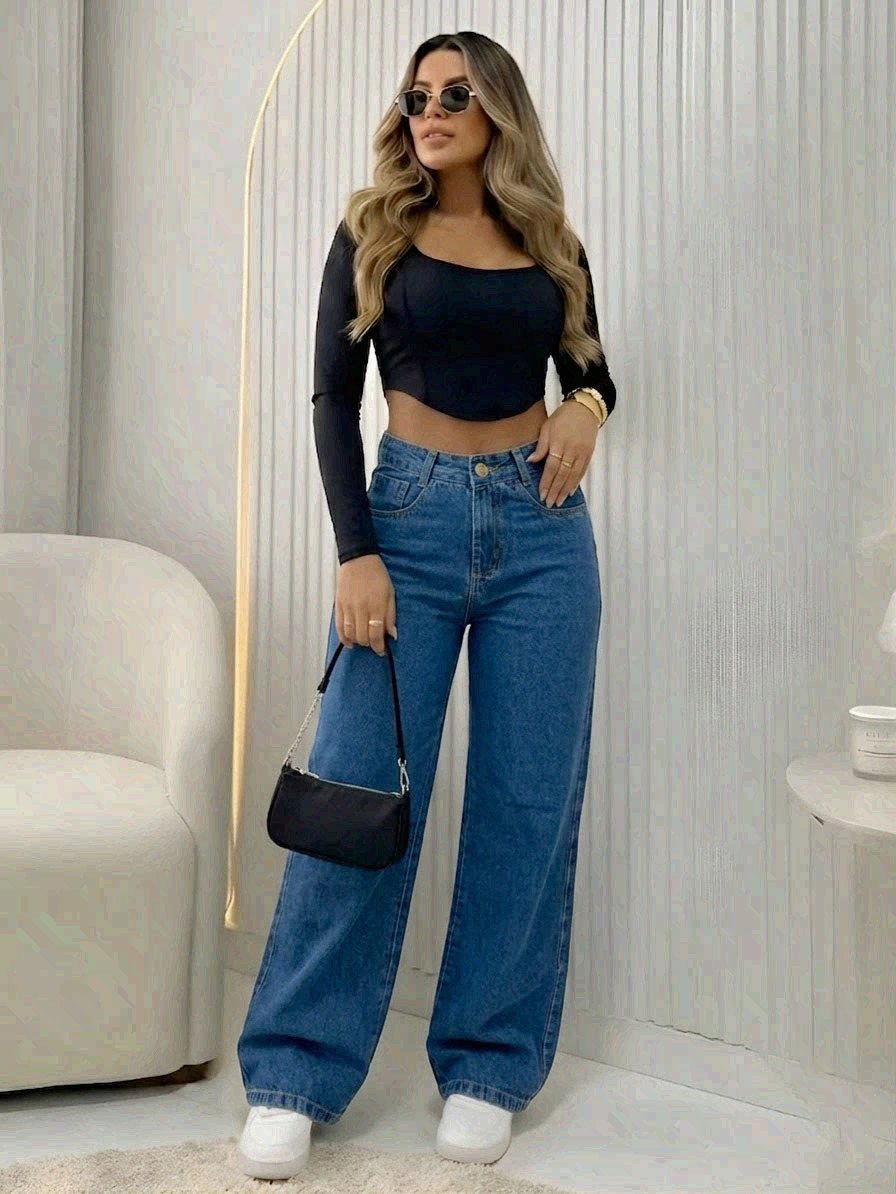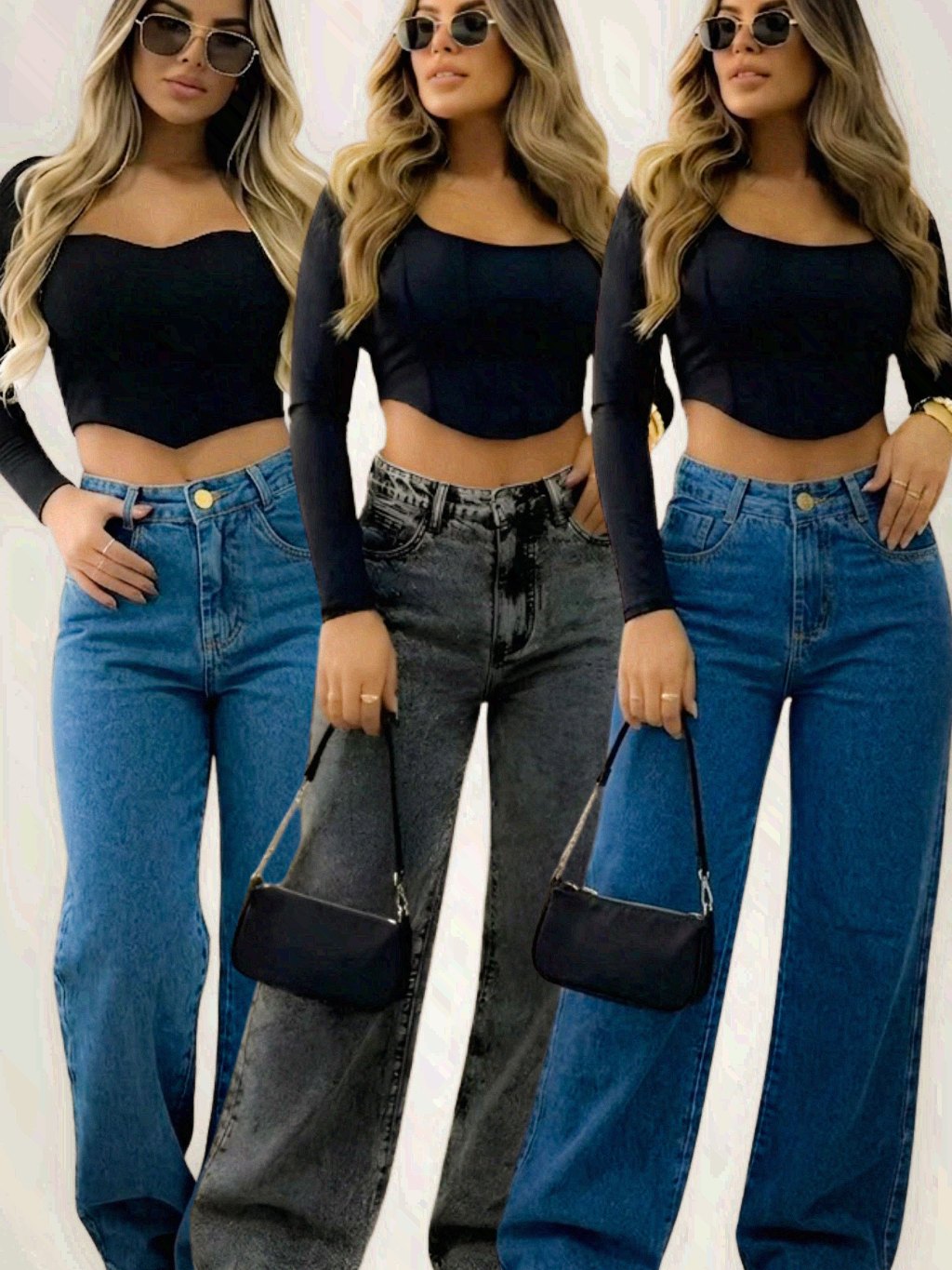CALÇA WIDE LEG FEMININA JEANS PANTALONA 100% ALGODÃO CALÇA BOCA LARGA BOCA DE SINO RETA