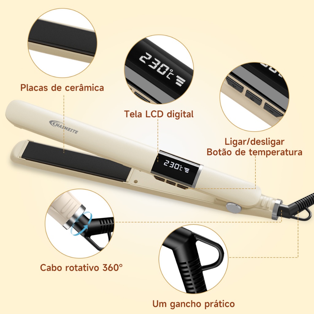 MAIMEITE Prancha alisadora de cabelo 2 em 1 com função de modelador de cachos S638