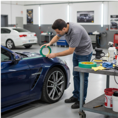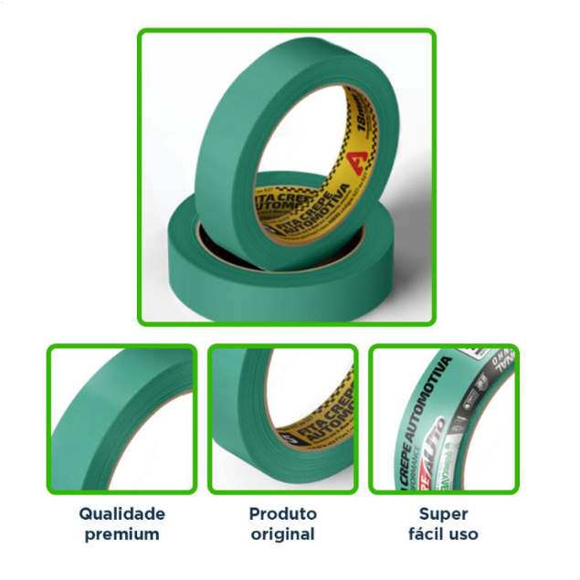 Fita Crepe Automotiva Verde Adere Kit 4 Und 24mm x 50m Alta Aderencia Acabamento Polimento