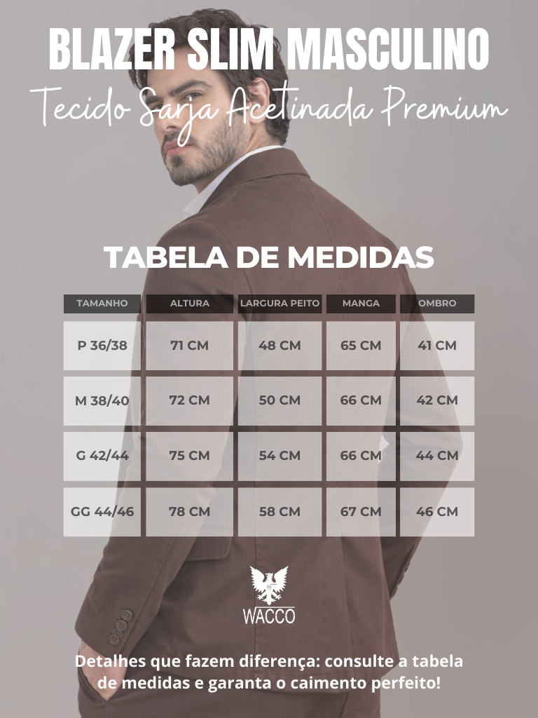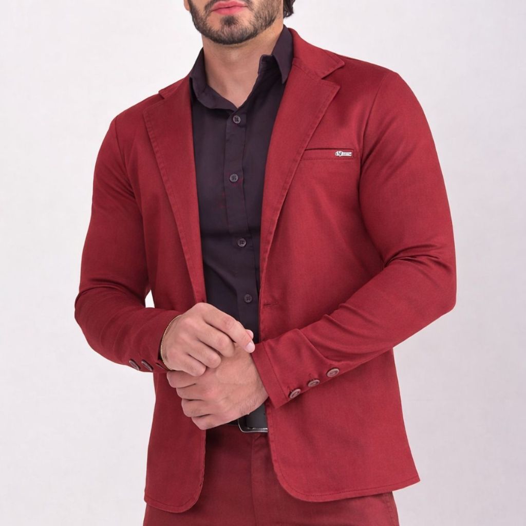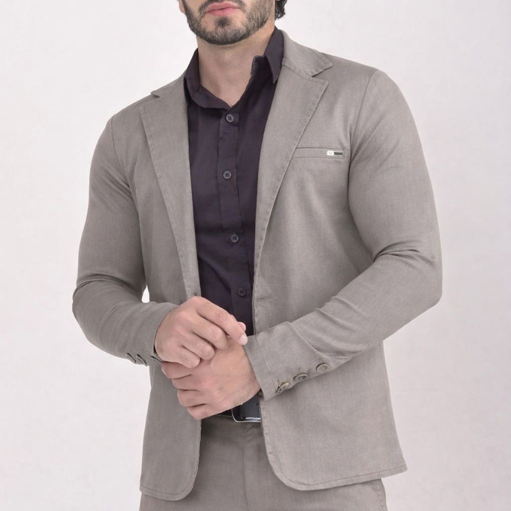 Blazer Paletó Slim Alfaiataria Sarja Premium com Elastano Masculino 2 Botões Corte Italiano Esporte Fino Elegante Terno