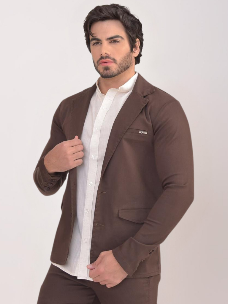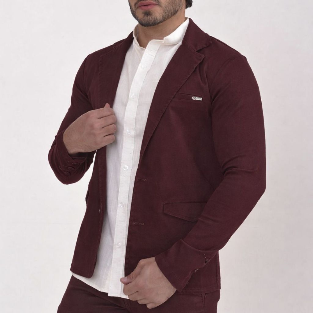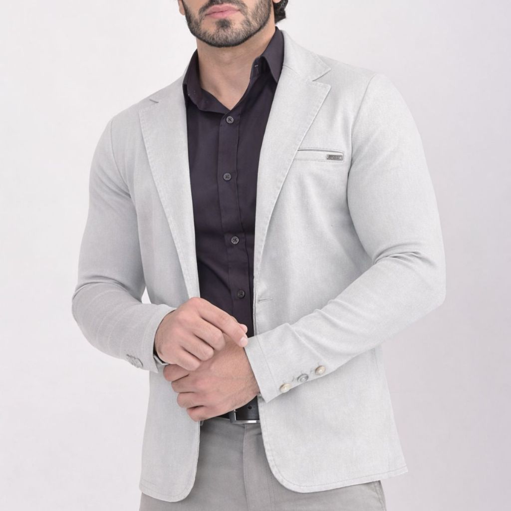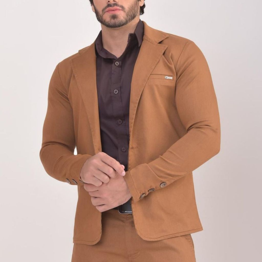 Blazer Paletó Slim Alfaiataria Sarja Premium com Elastano Masculino 2 Botões Corte Italiano Esporte Fino Elegante Terno