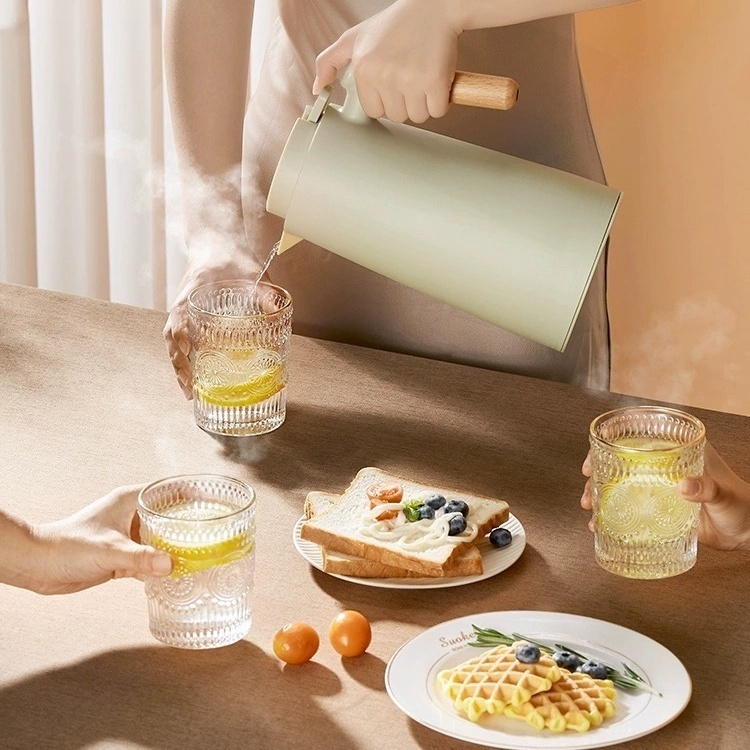 Garrafa Térmica 1L com Termômetro Digital - Cabo de Madeira e Design Nórdico-O14