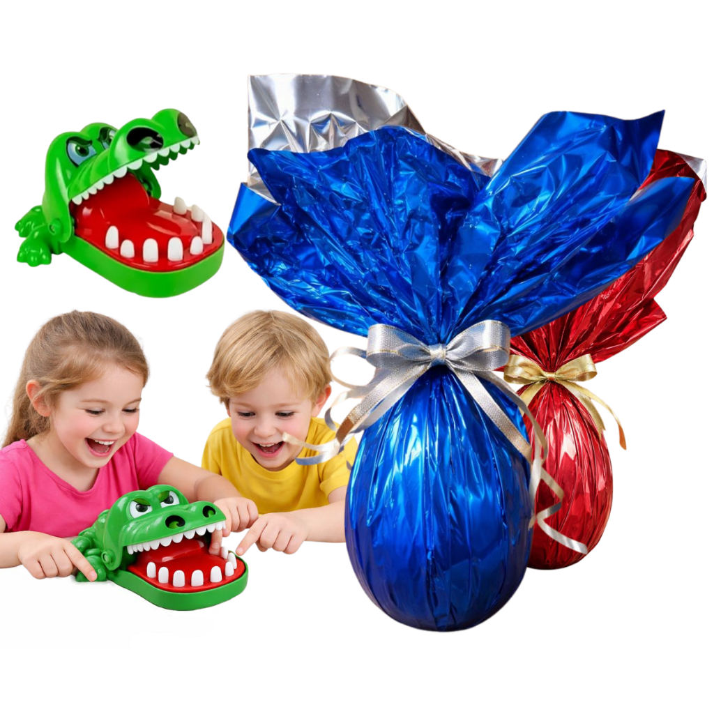 Kit Ovo De Pascoa 250g Brinquedo Jacaré Dentista Morde Dedo