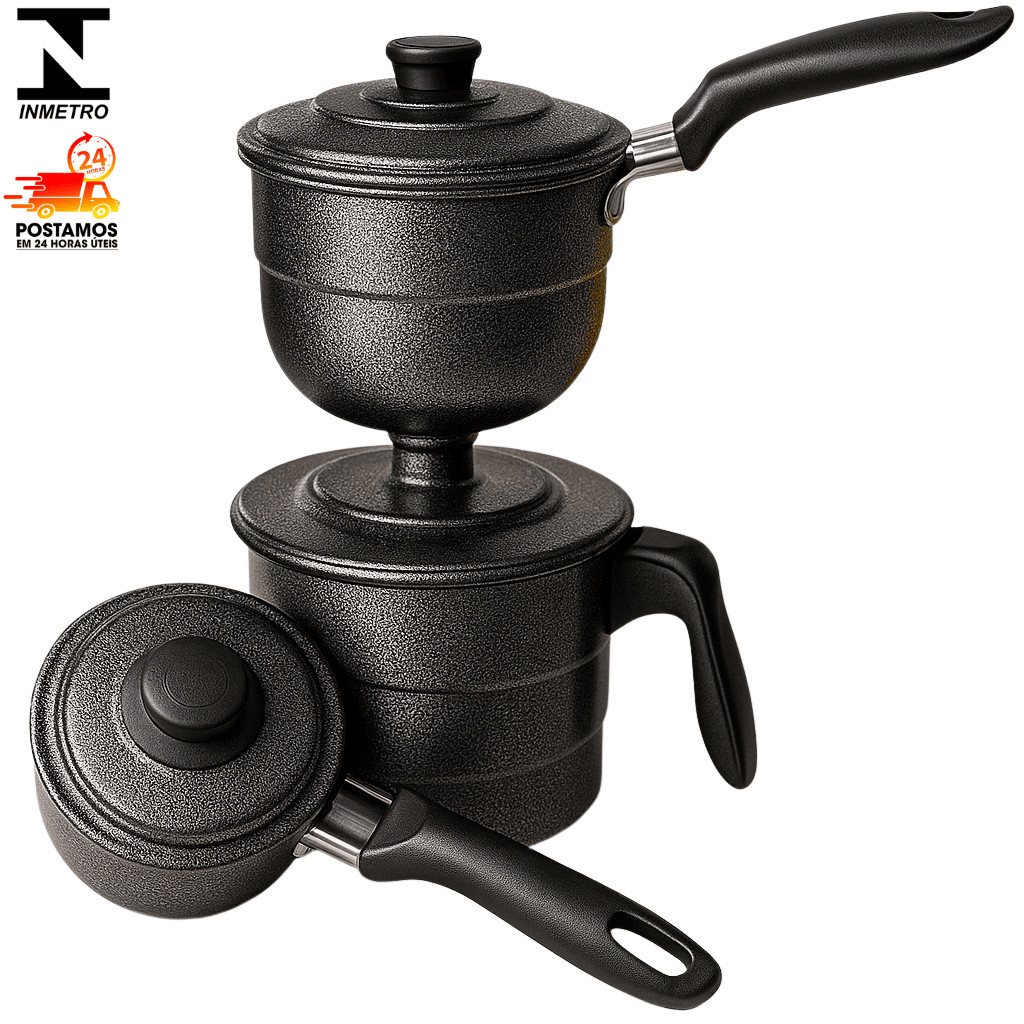 Cuscuzeiro a Vapor de Alumínio Craqueado / Polido com 2 Cumbucas