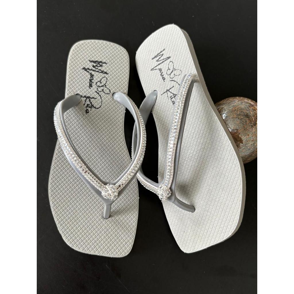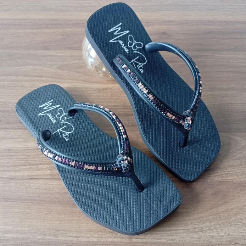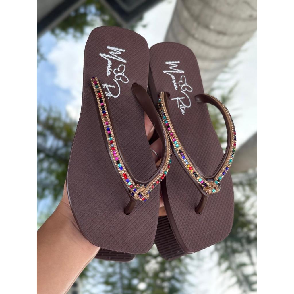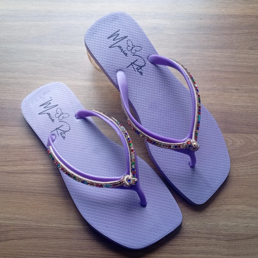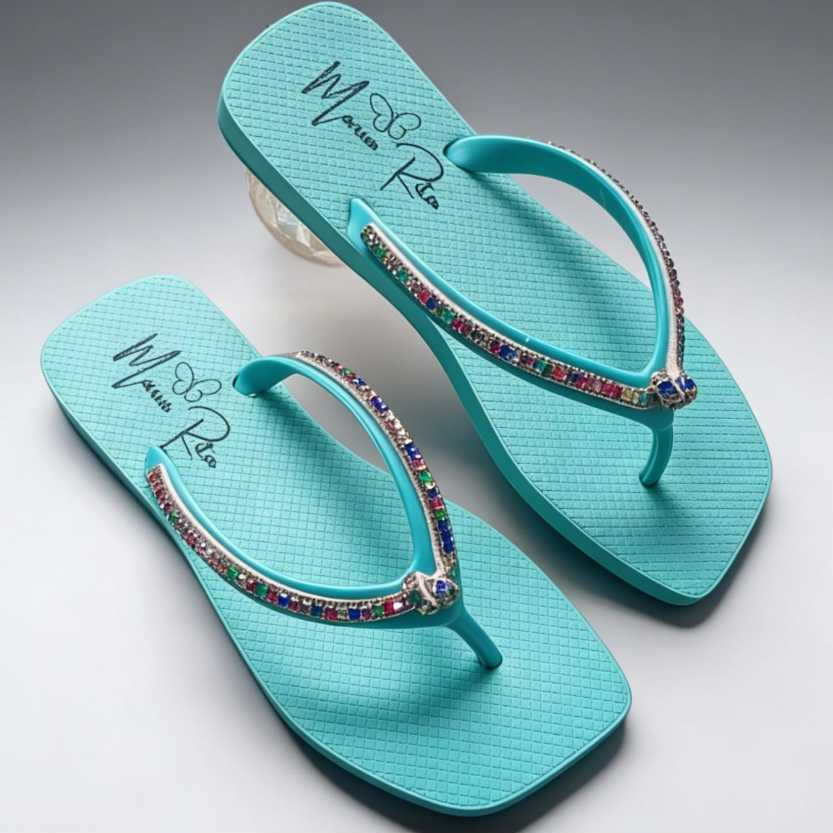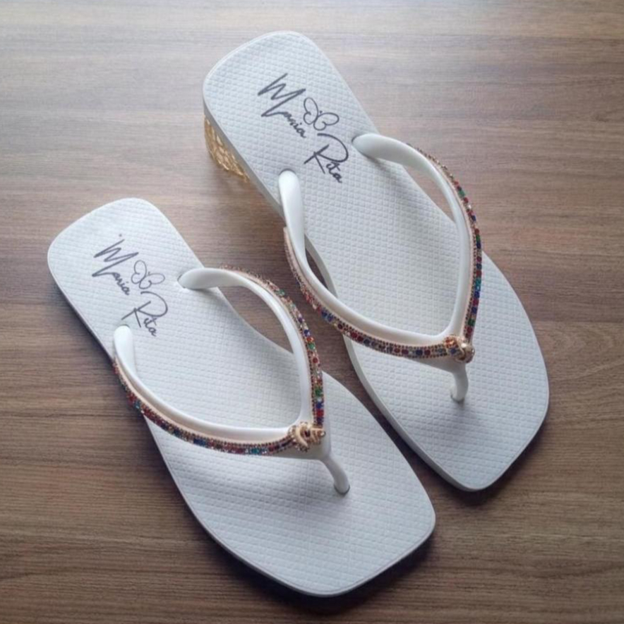 Chinelo De Dedo Básico Com Strass Bico Quadrado Colorido F MR